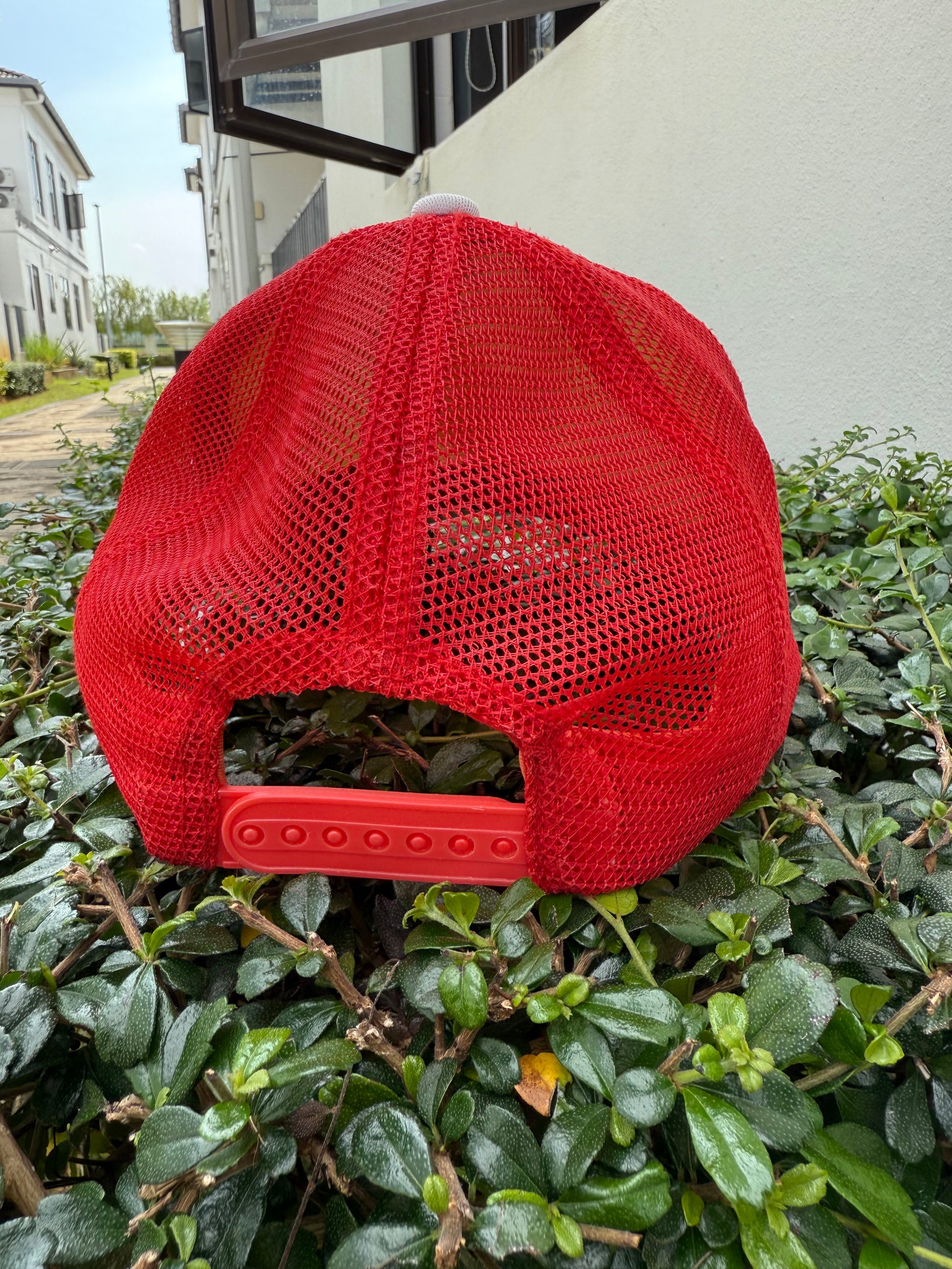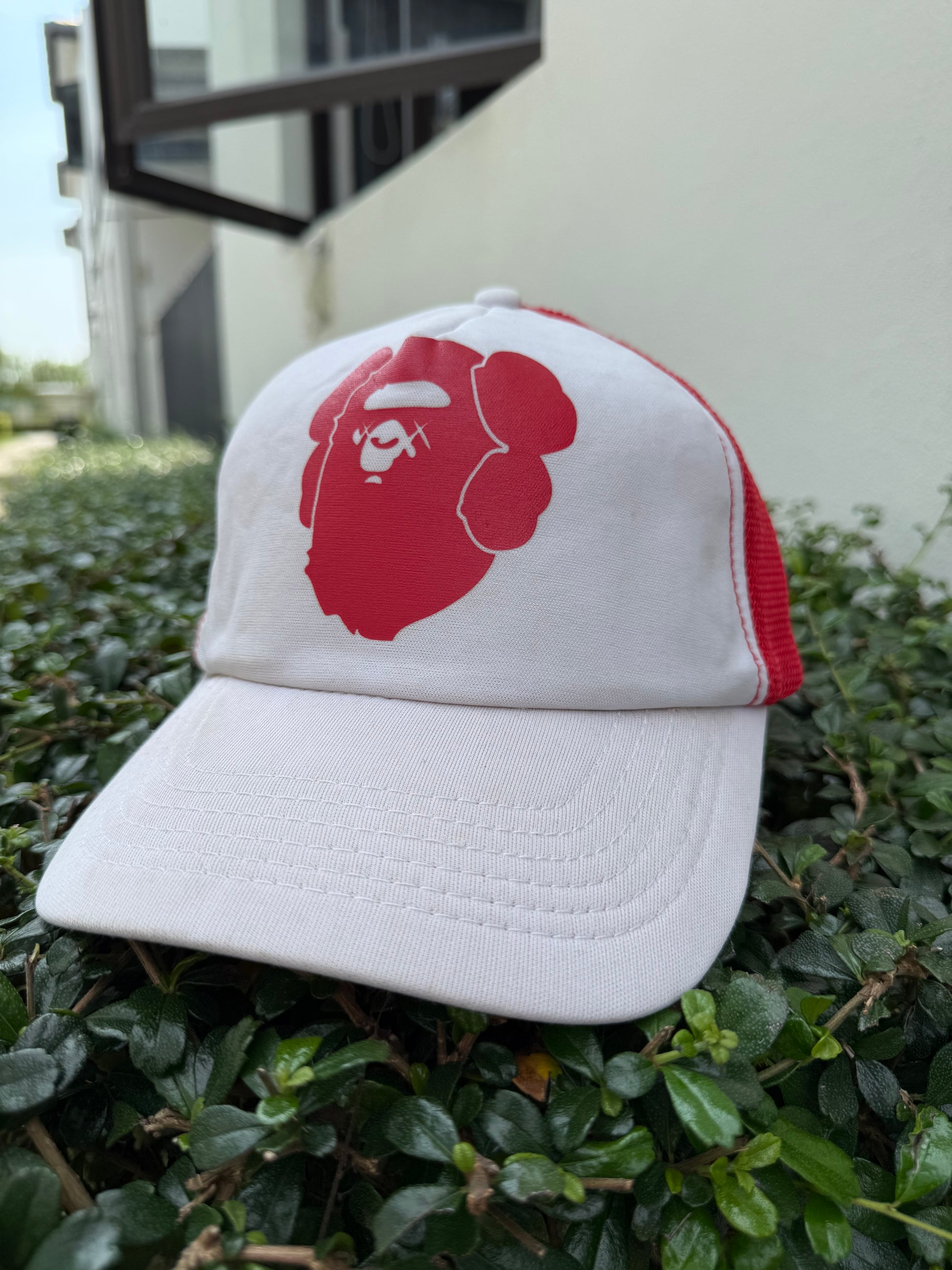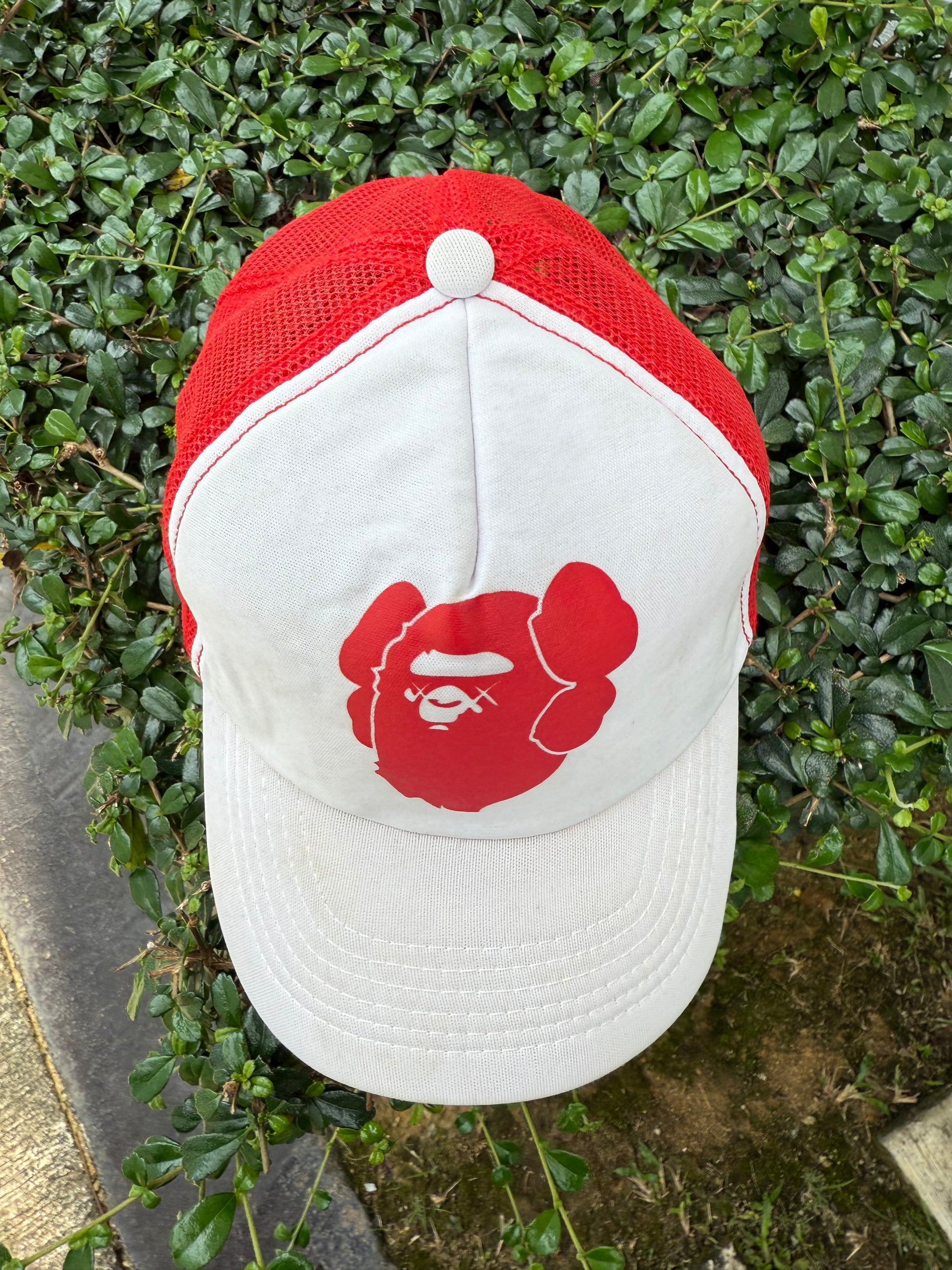 BAPE x KAWS Trucker Cap – Red/White Mesh Snapback Hat Early 2000s