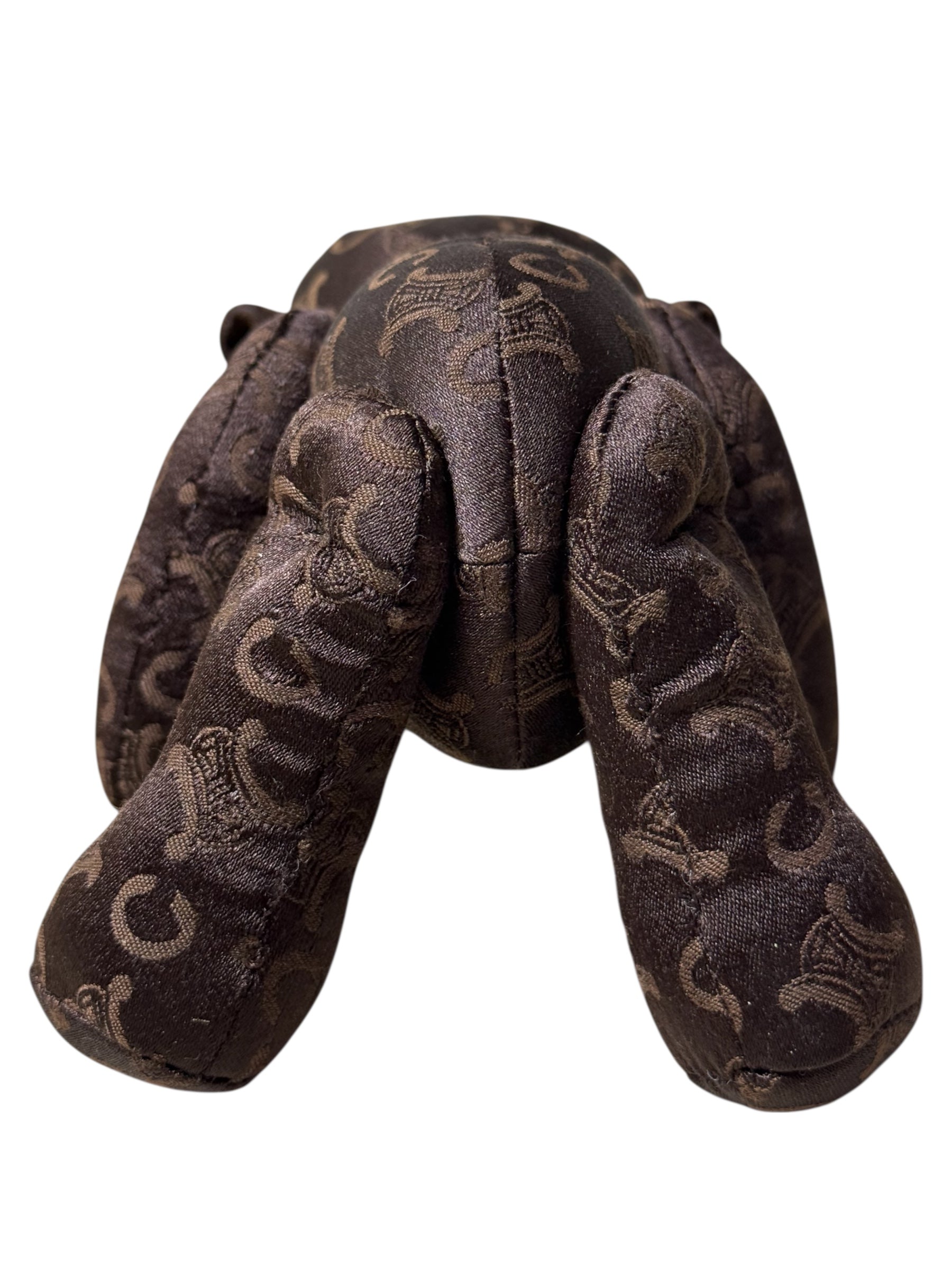 Celine Triomphe monogram teddy bear in brown jacquard fabric.