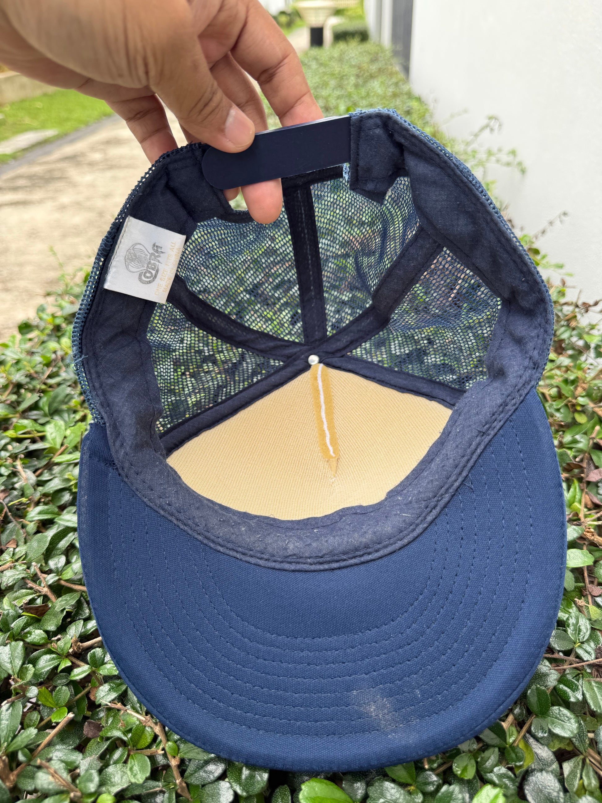 - Features: Bold black text + mugshot print, foam front, mesh back, snapback adjustable