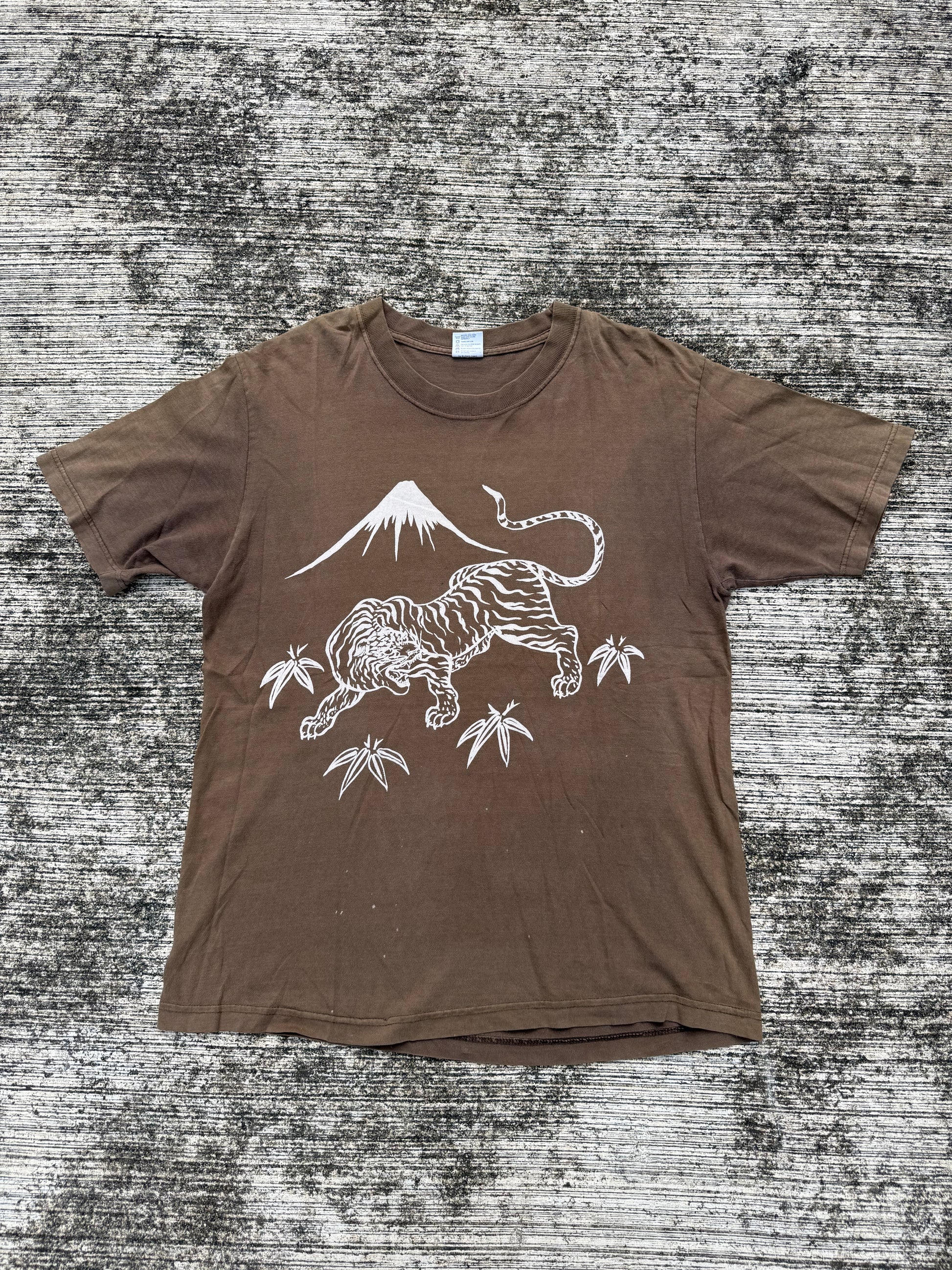 Authentic Cheswick by Sugar Cane tee featuring a bold Japanese-inspired graphic — roaring tiger with Mt. Fuji backdrop and bamboo details. A standout piece from Toyo Enterprise’s Cheswick line, known for high-quality reproduction and Americana/Japanese heritage style. Made in USA cotton body with crisp white print on brown base.