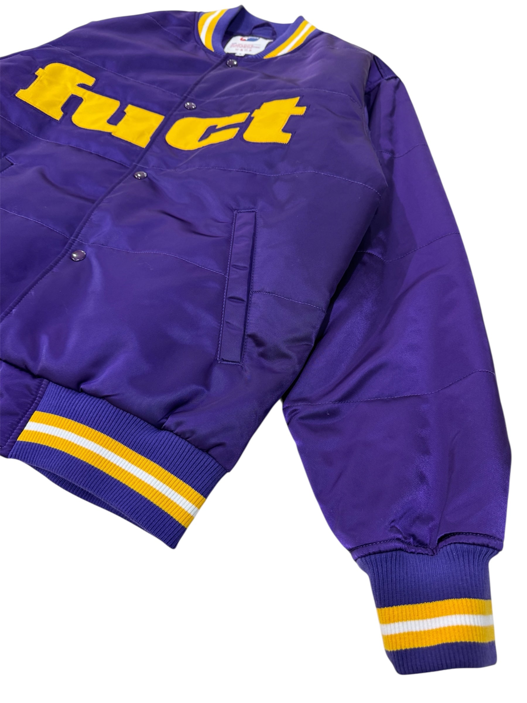 Original FUCT varsity jacket in purple and yellow colorway.