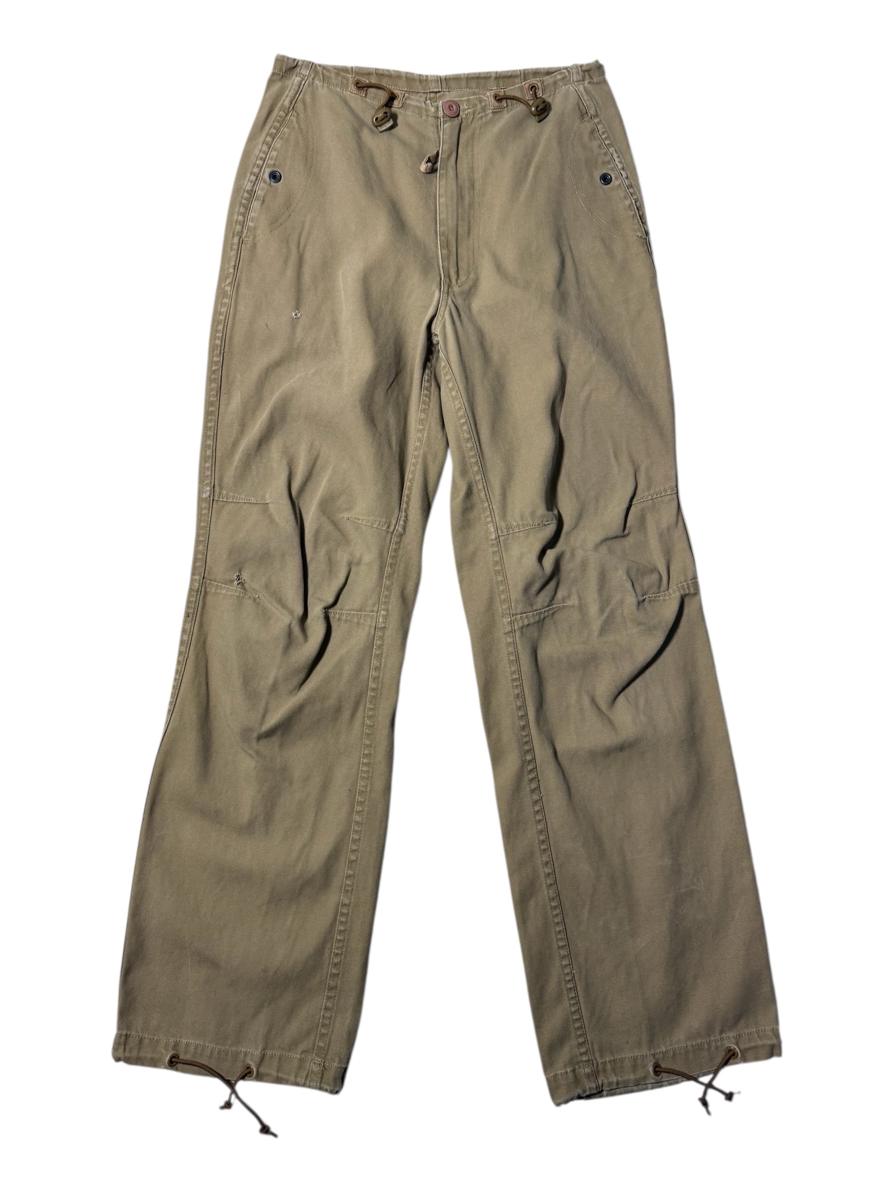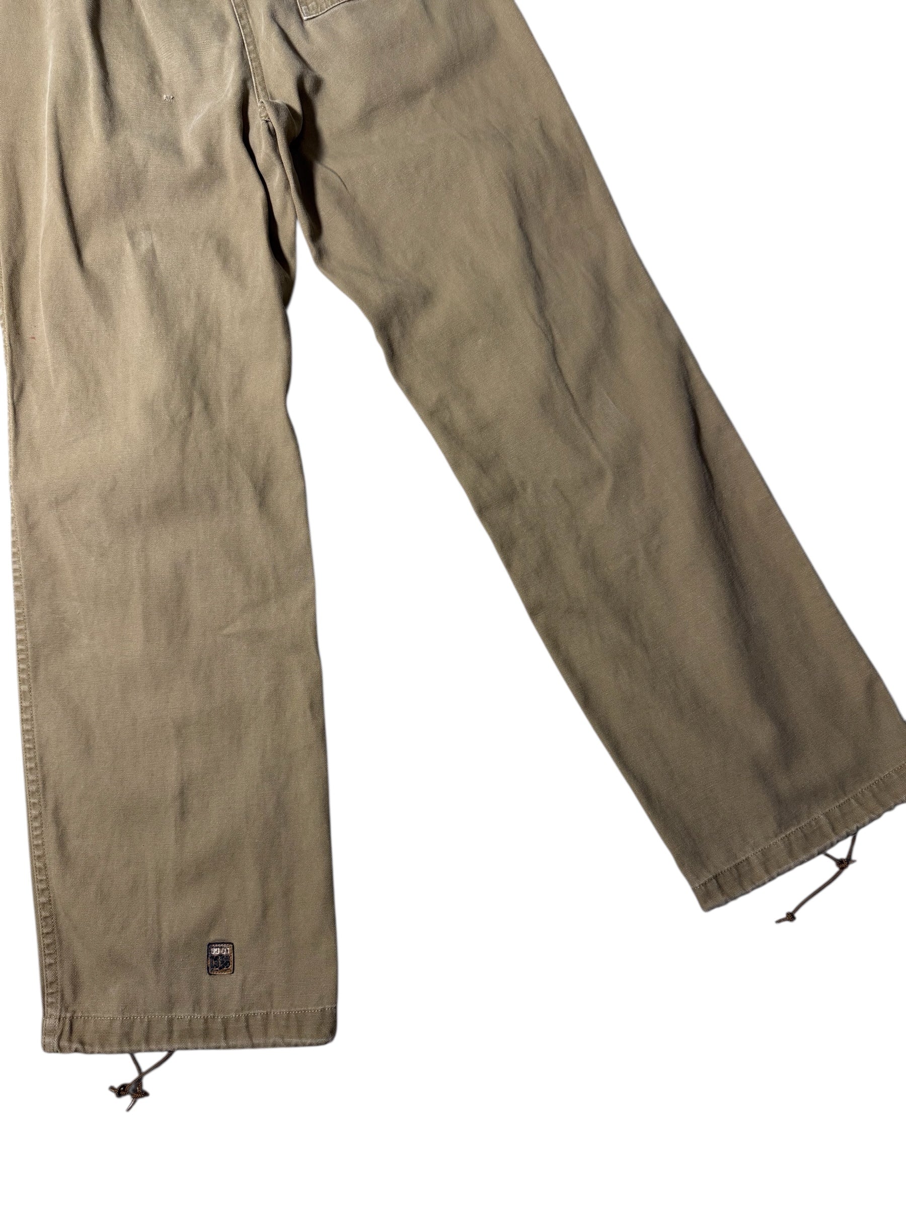 G-Star Raw “Desert Pant” military-inspired utility trousers with adjustable drawcord waist and hem. Wide straight silhouette with articulated knee panels for better movement. Made from durable cotton canvas in a desert-khaki tone.