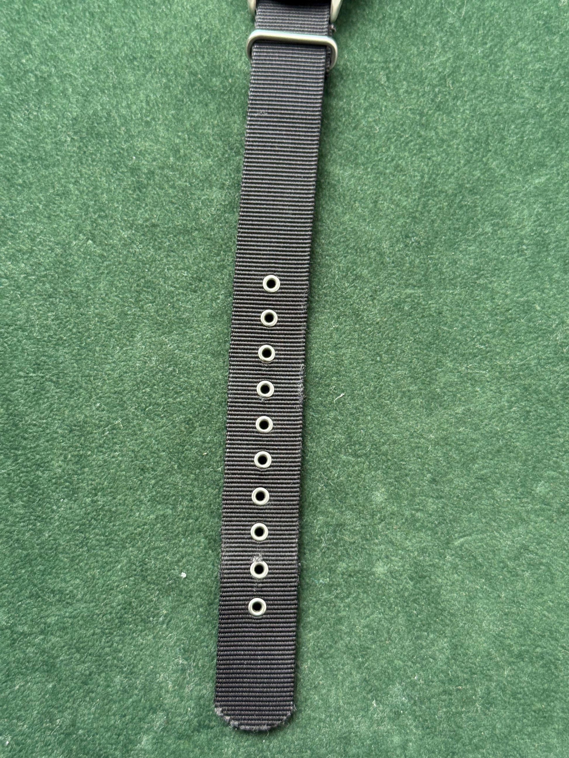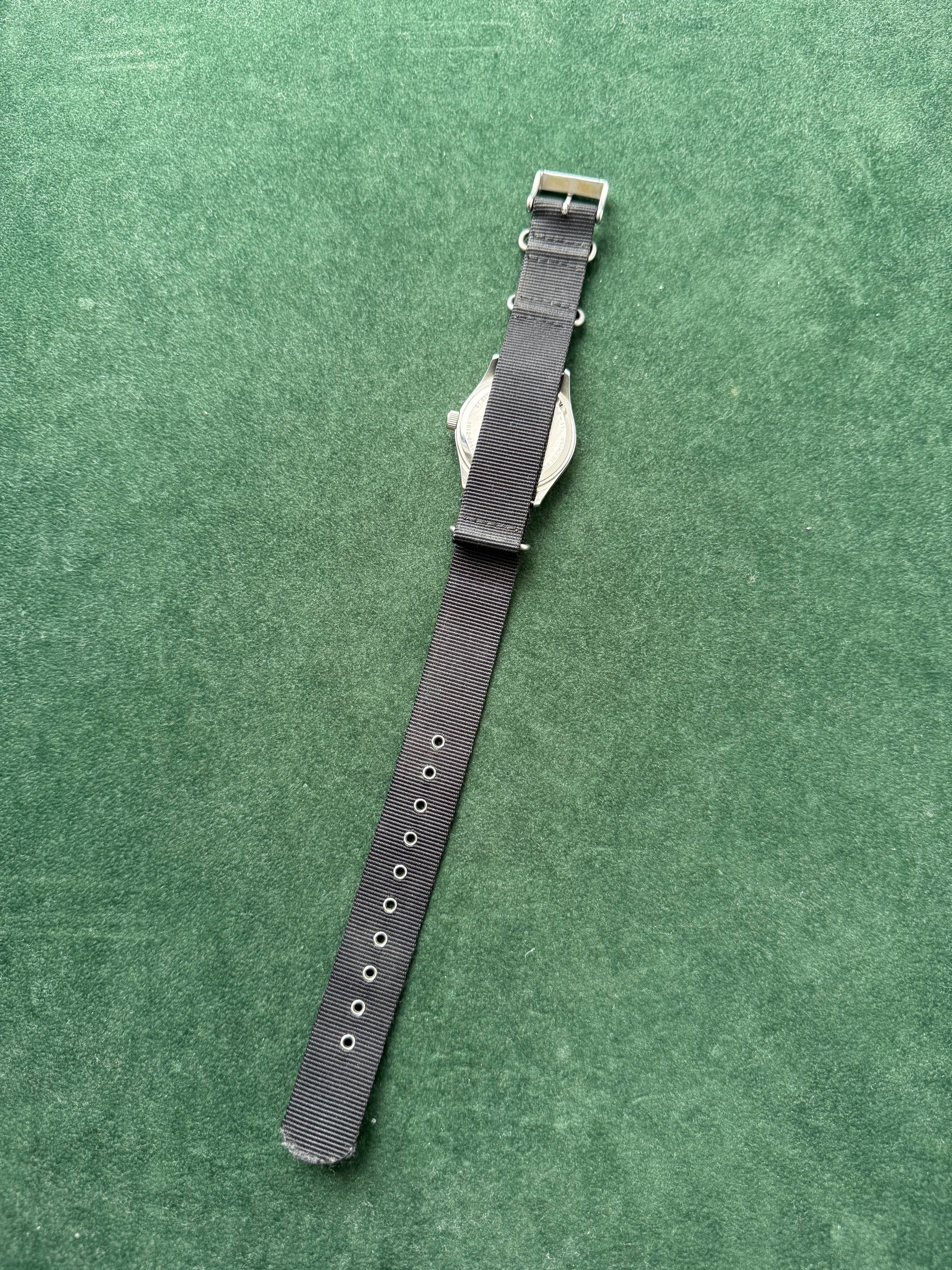 - Material: Stainless steel case, black nylon NATO strap