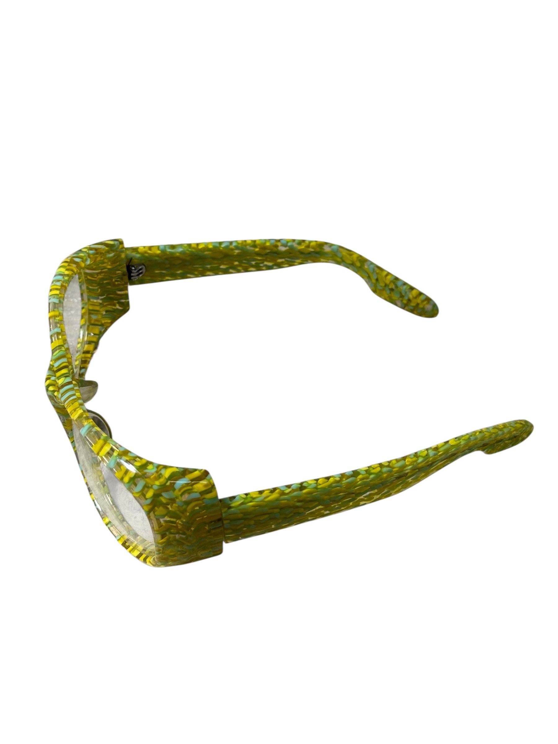 QBRICK Japanese Designer Sunglasses Yellow Green Confetti Frame