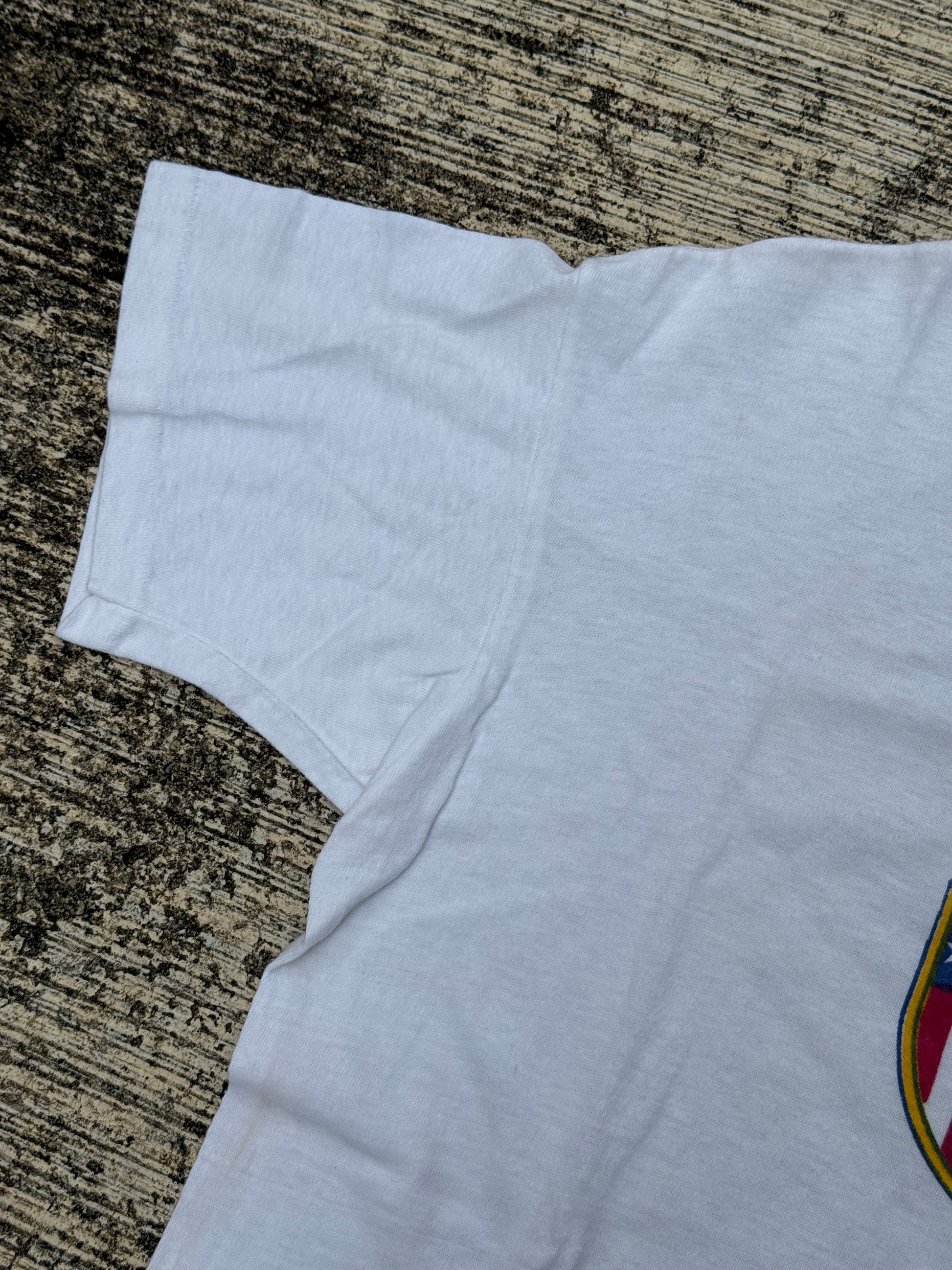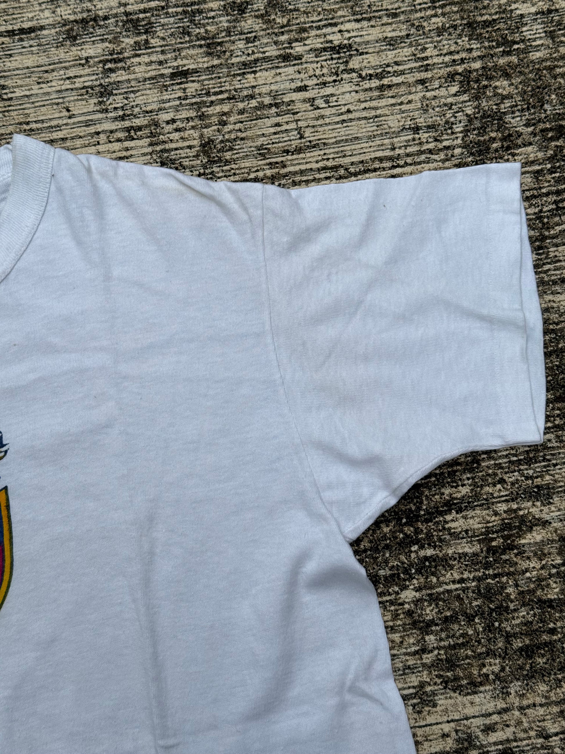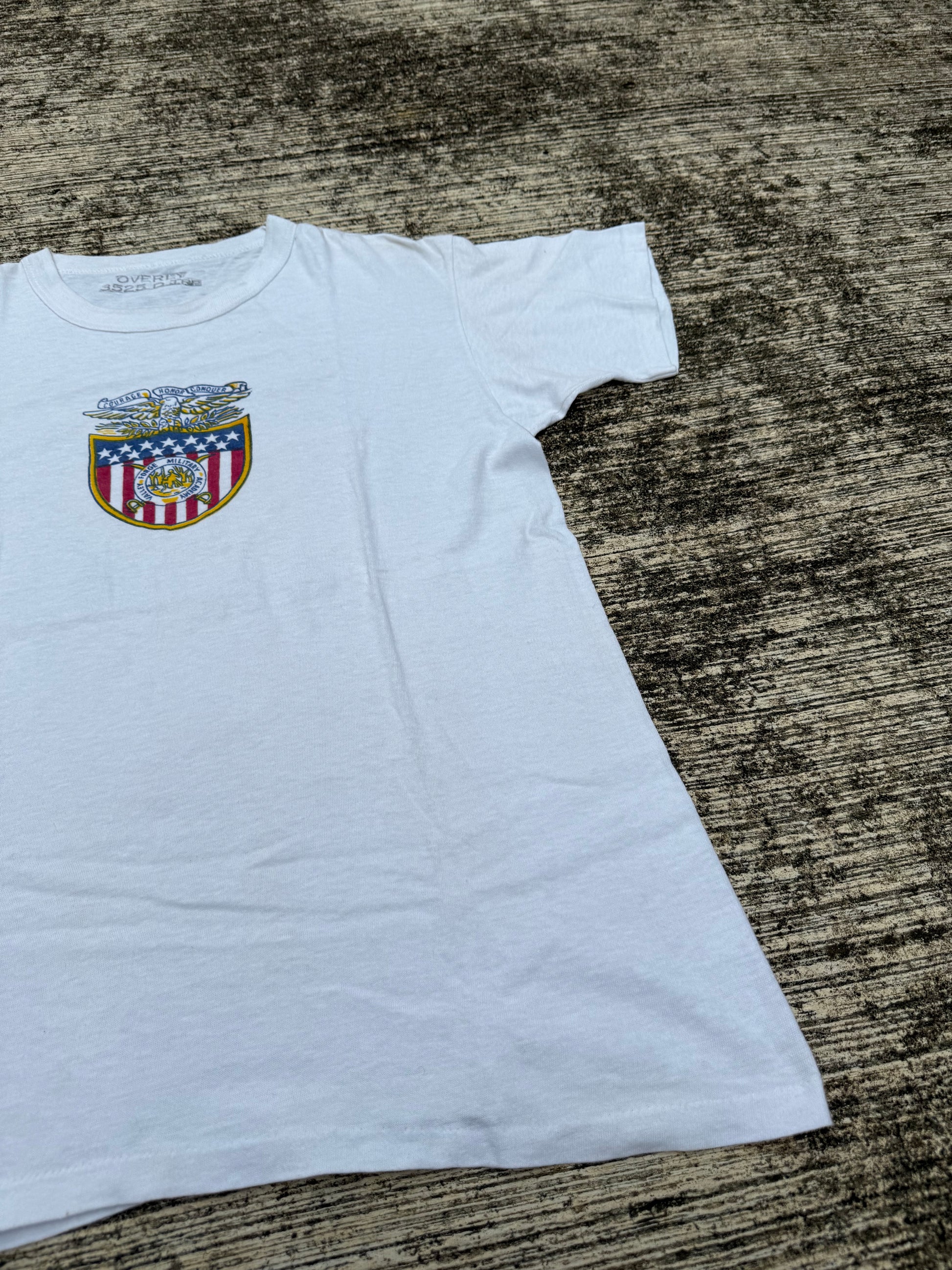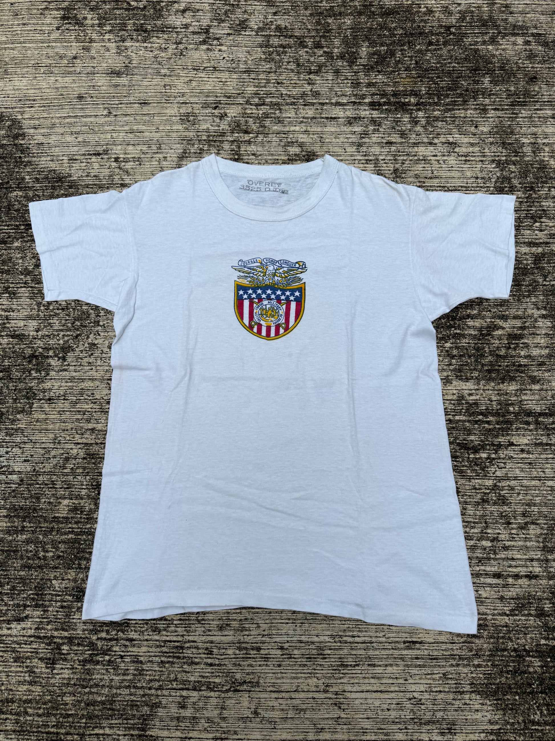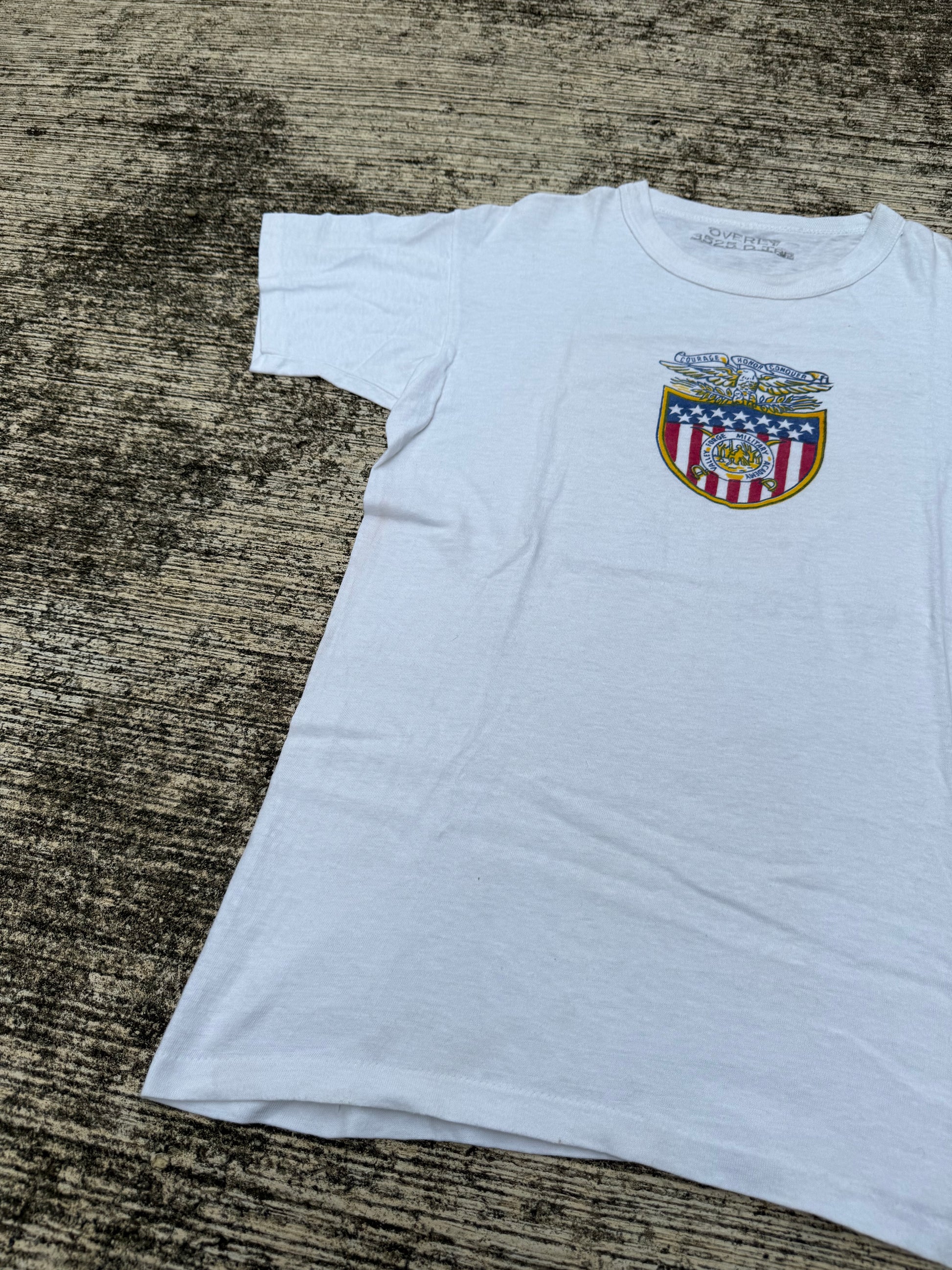 Rare 1940s Valley Forge Military Academy T-Shirt Vintage Single Stitch White Tee USA Eagle Crest Graphic