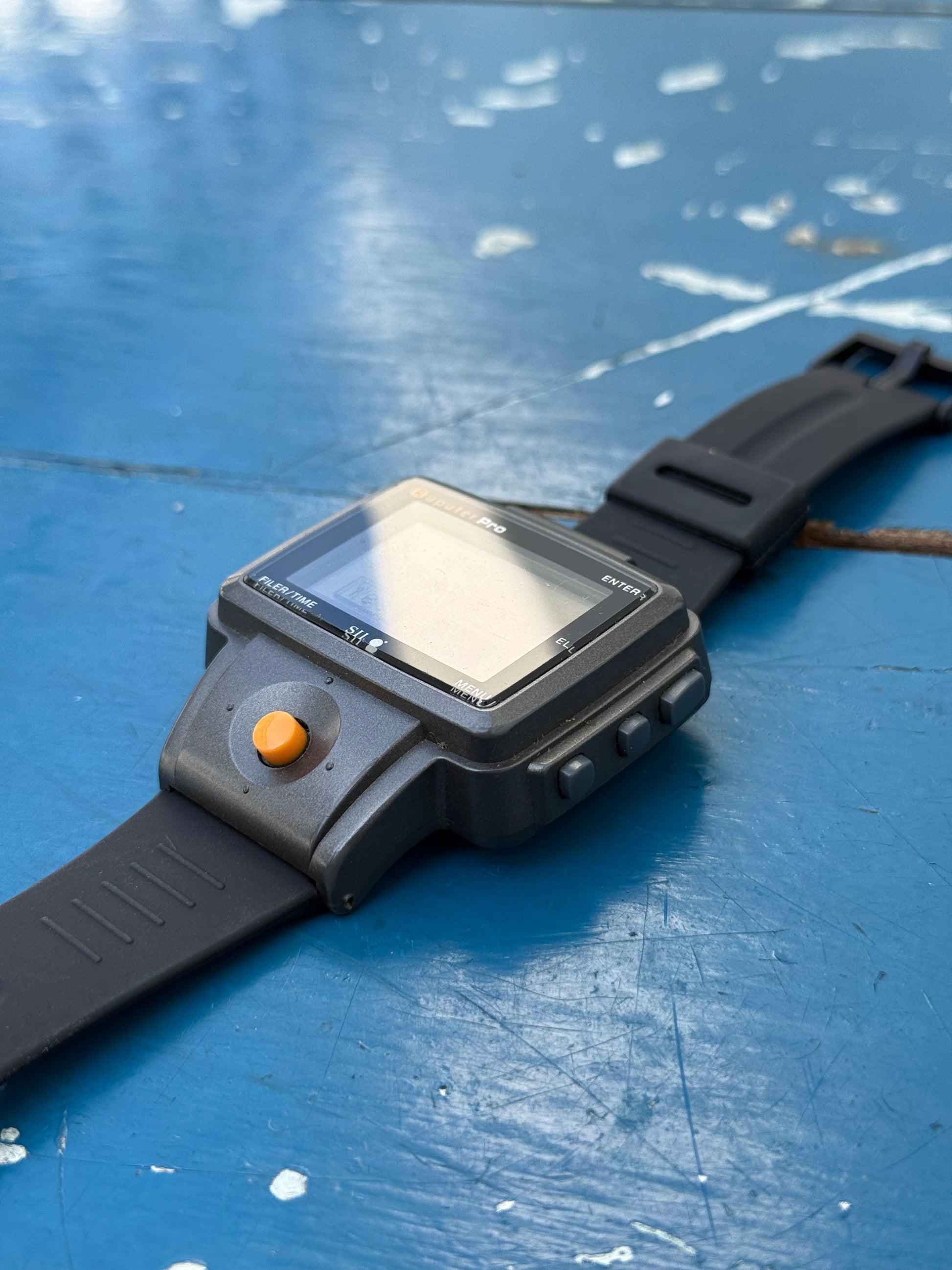 This model represents an early era of wearable computing, making it highly collectible among watch enthusiasts, retro tech fans, and vintage gadget collectors.