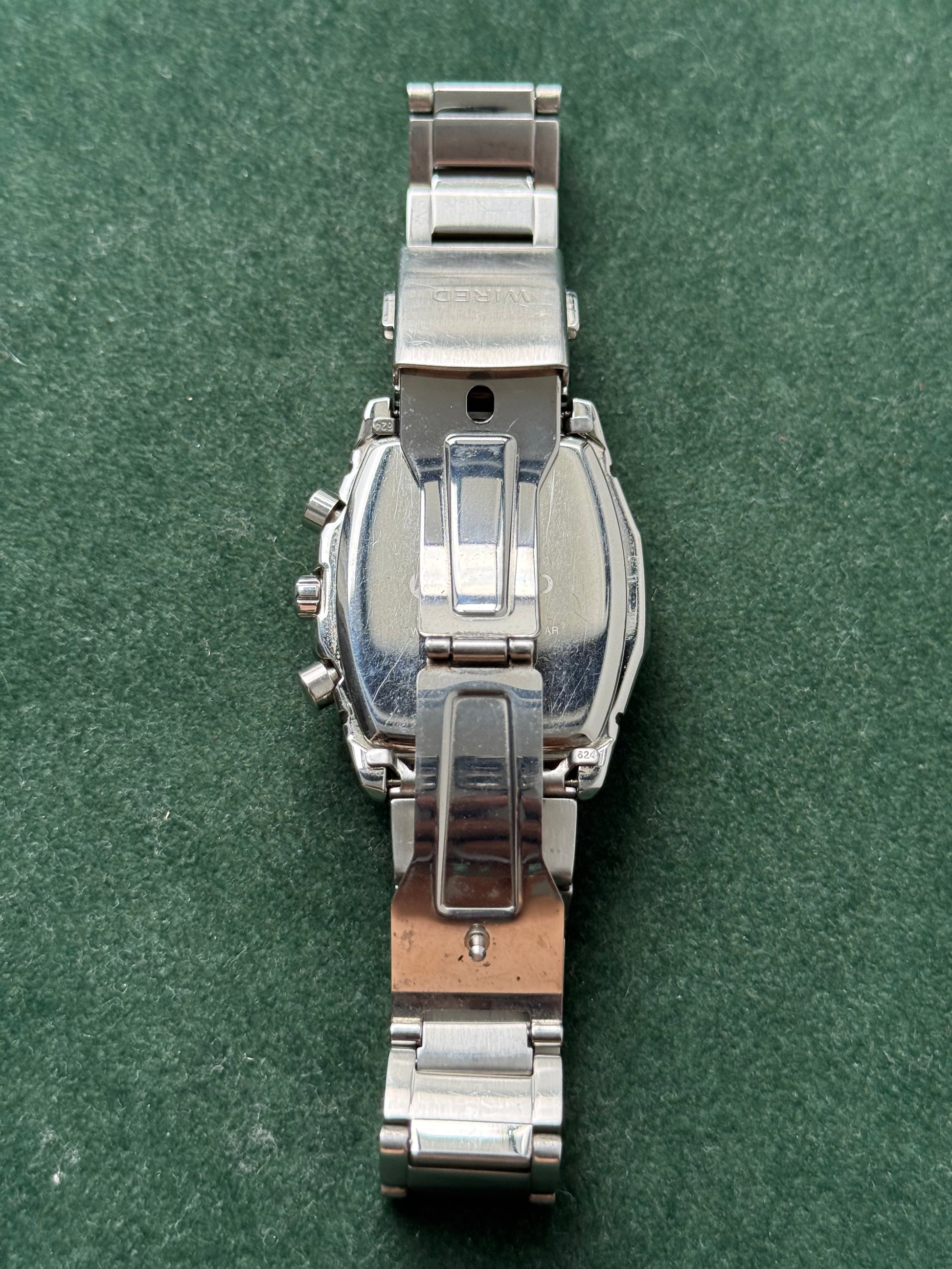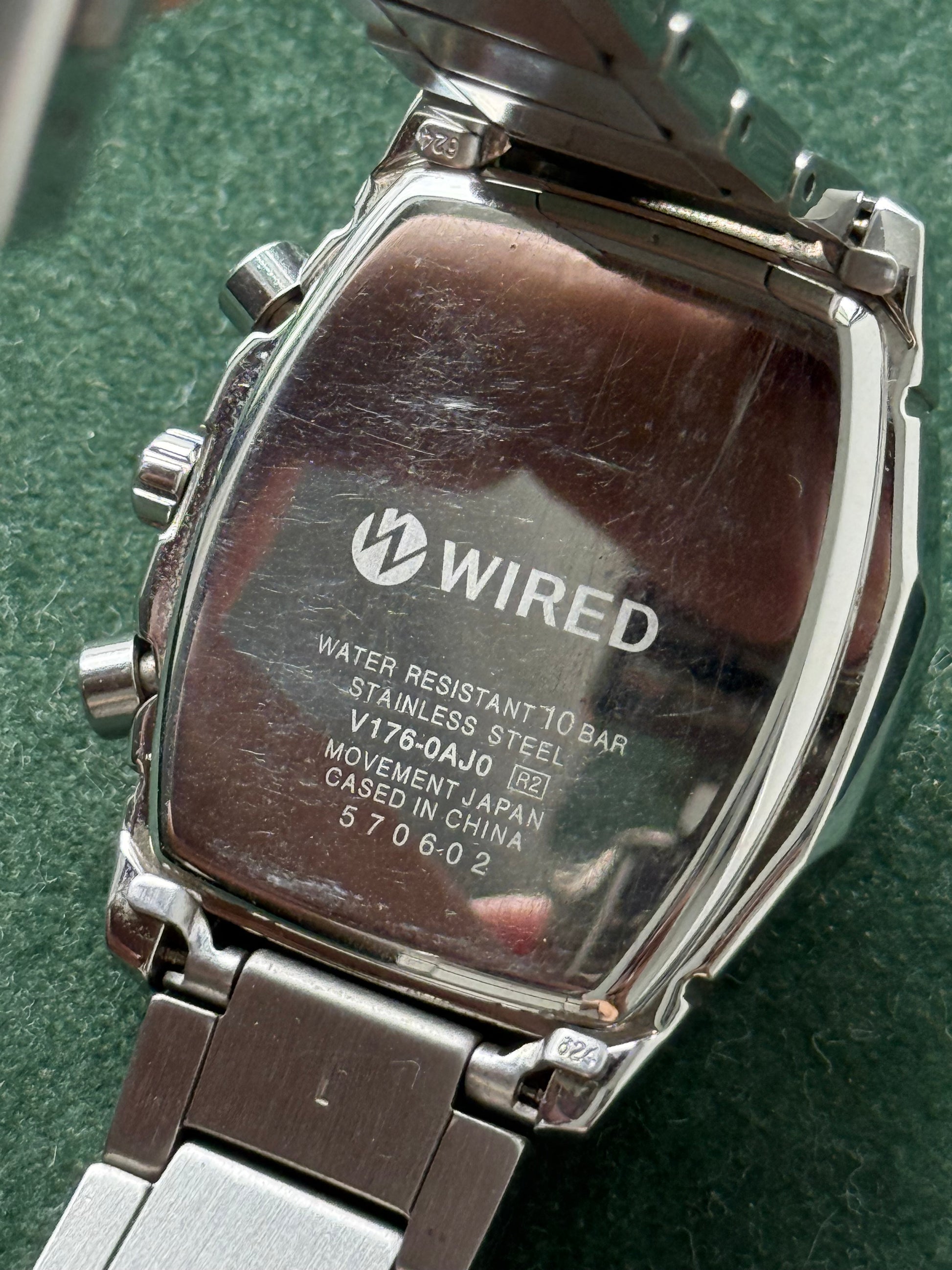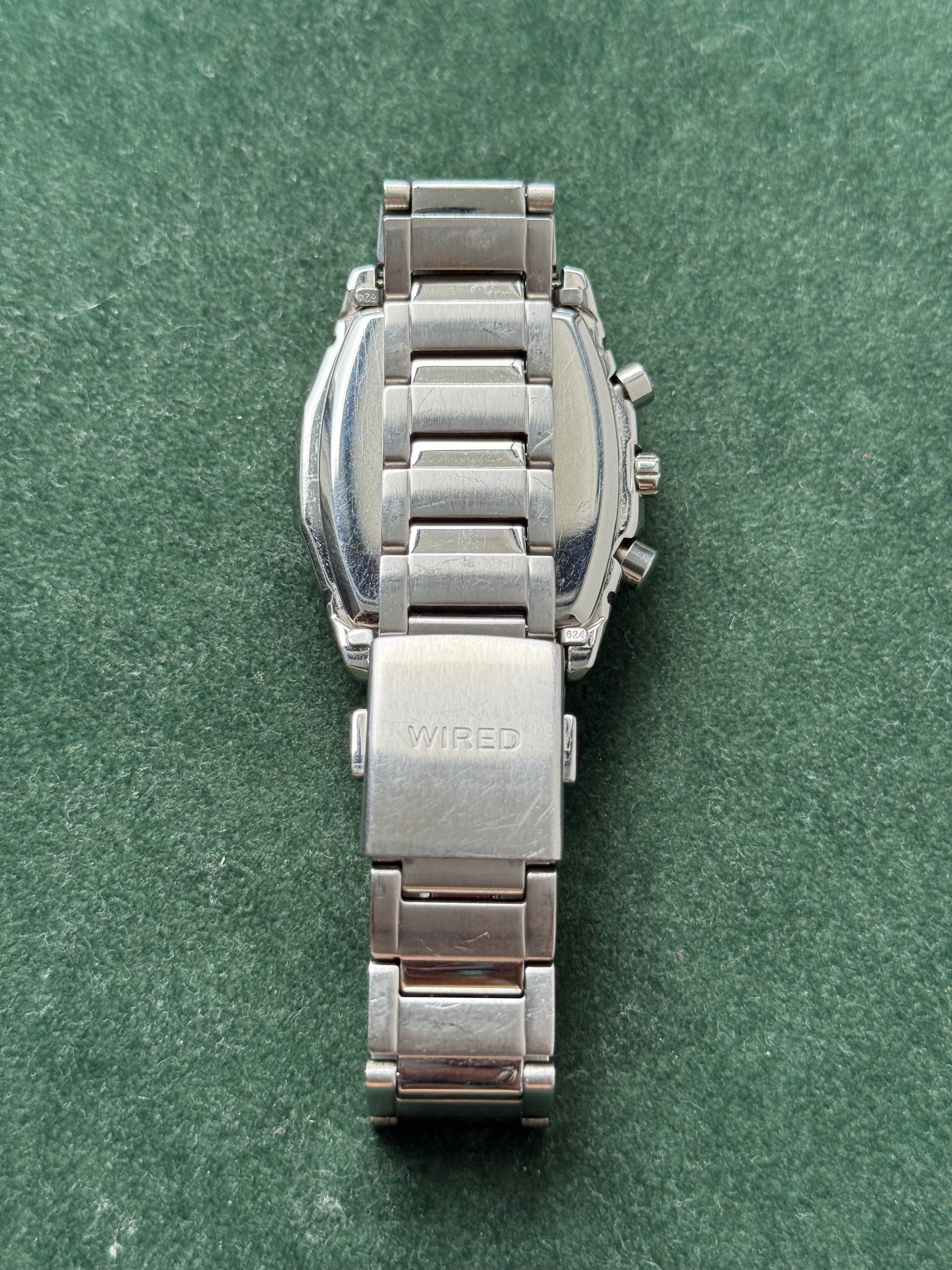 Features stainless steel case and bracelet, push-button clasp with Wired logo, and water resistance up to 10 BAR.