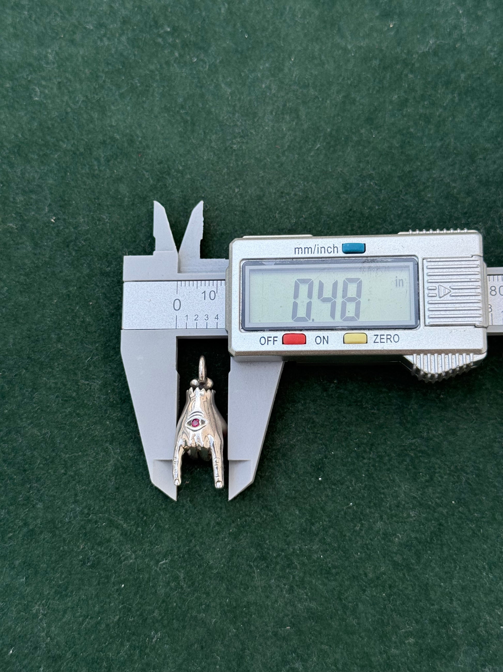 Sterling Silver “Devil Horns” Hand Pendant with Ruby Stone Eye