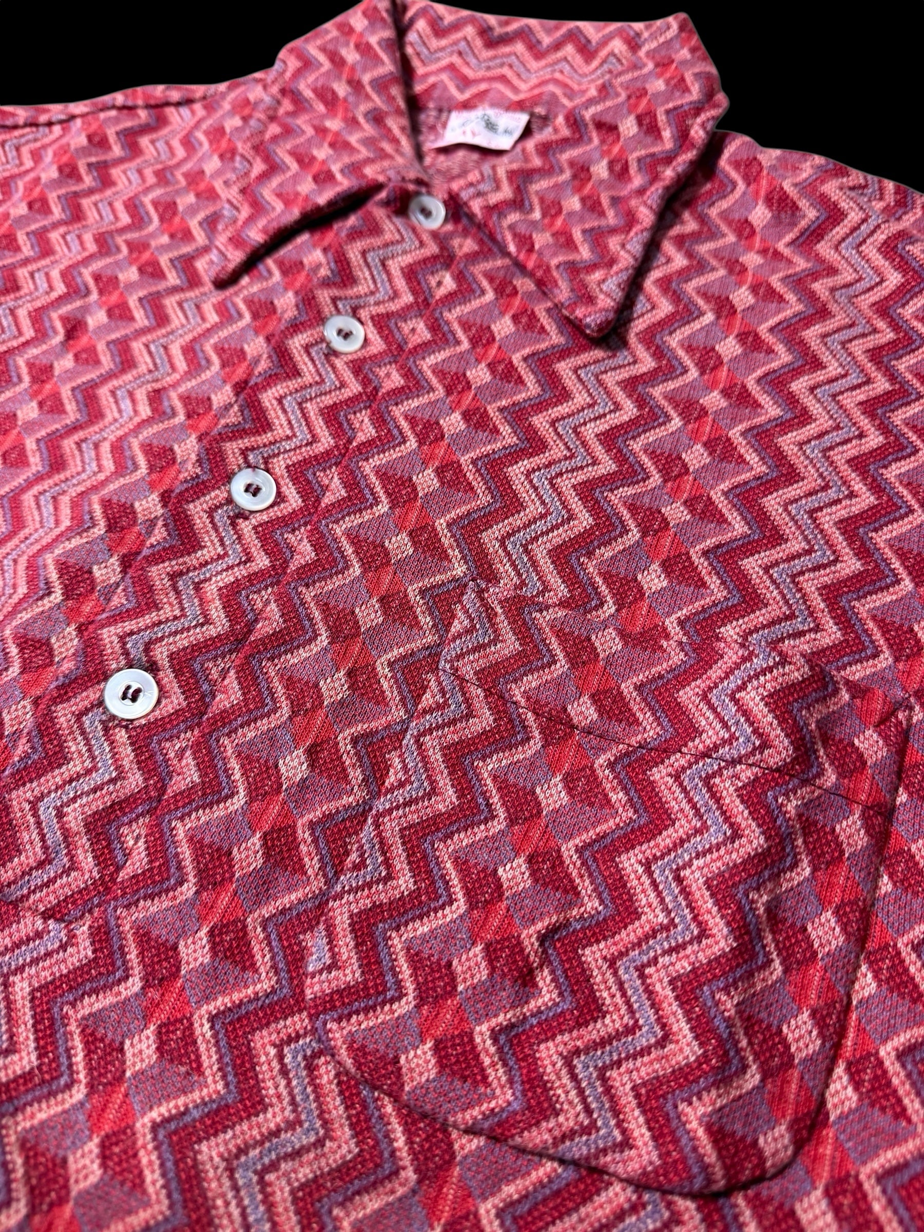 True Vintage 1950s–60s Hartog for May Co Woven Jacquard Shirt Zigzag Pattern