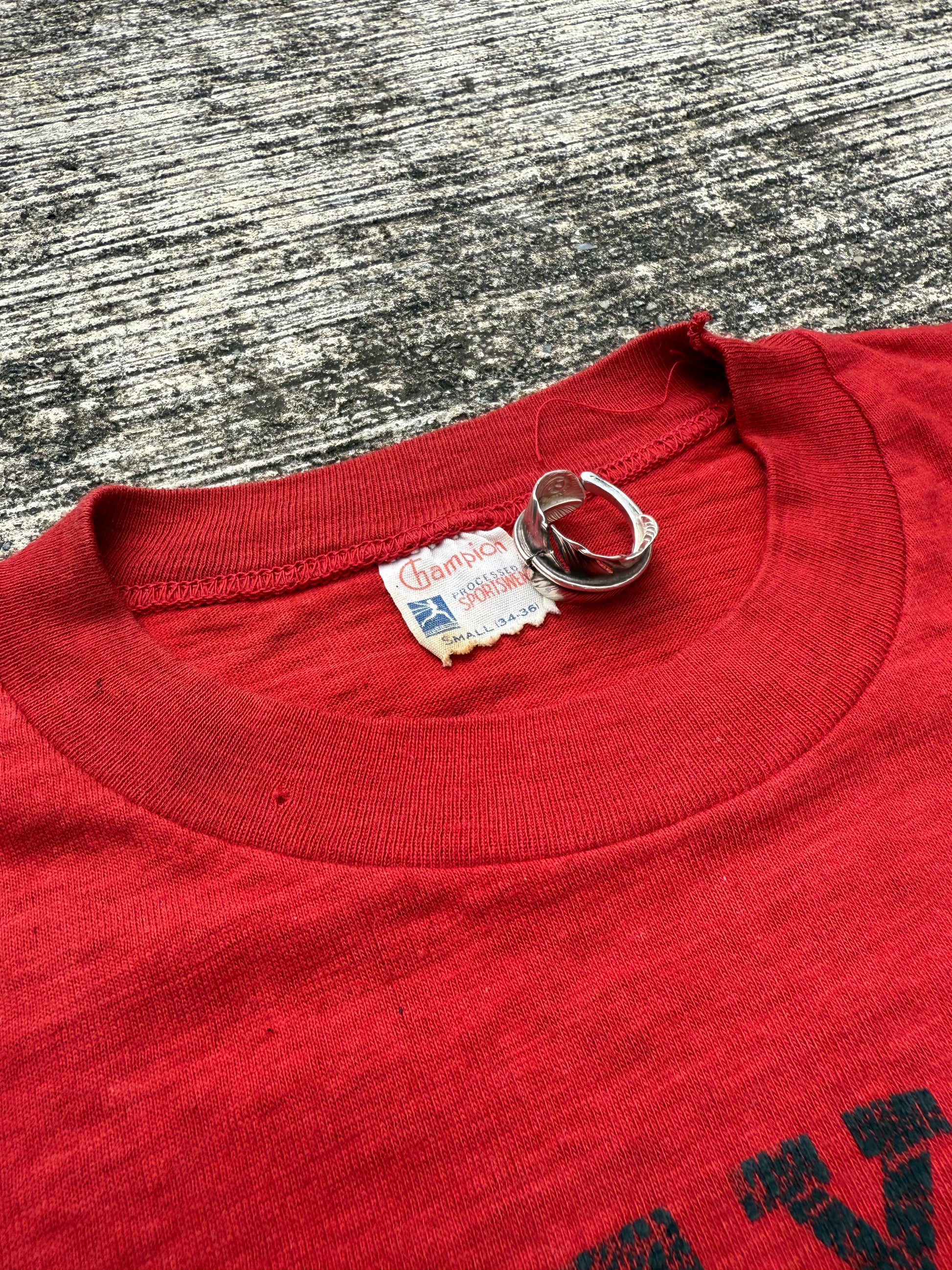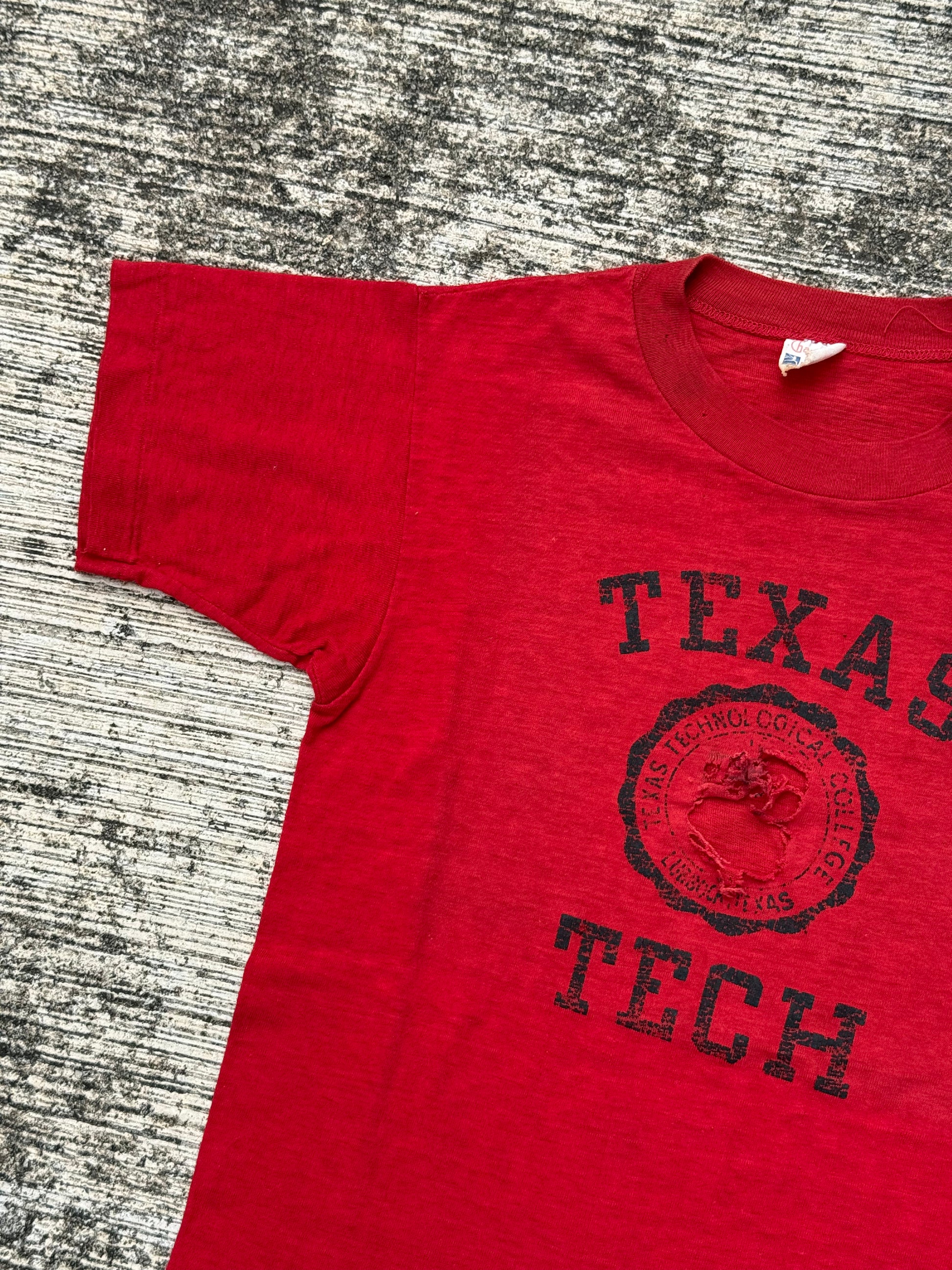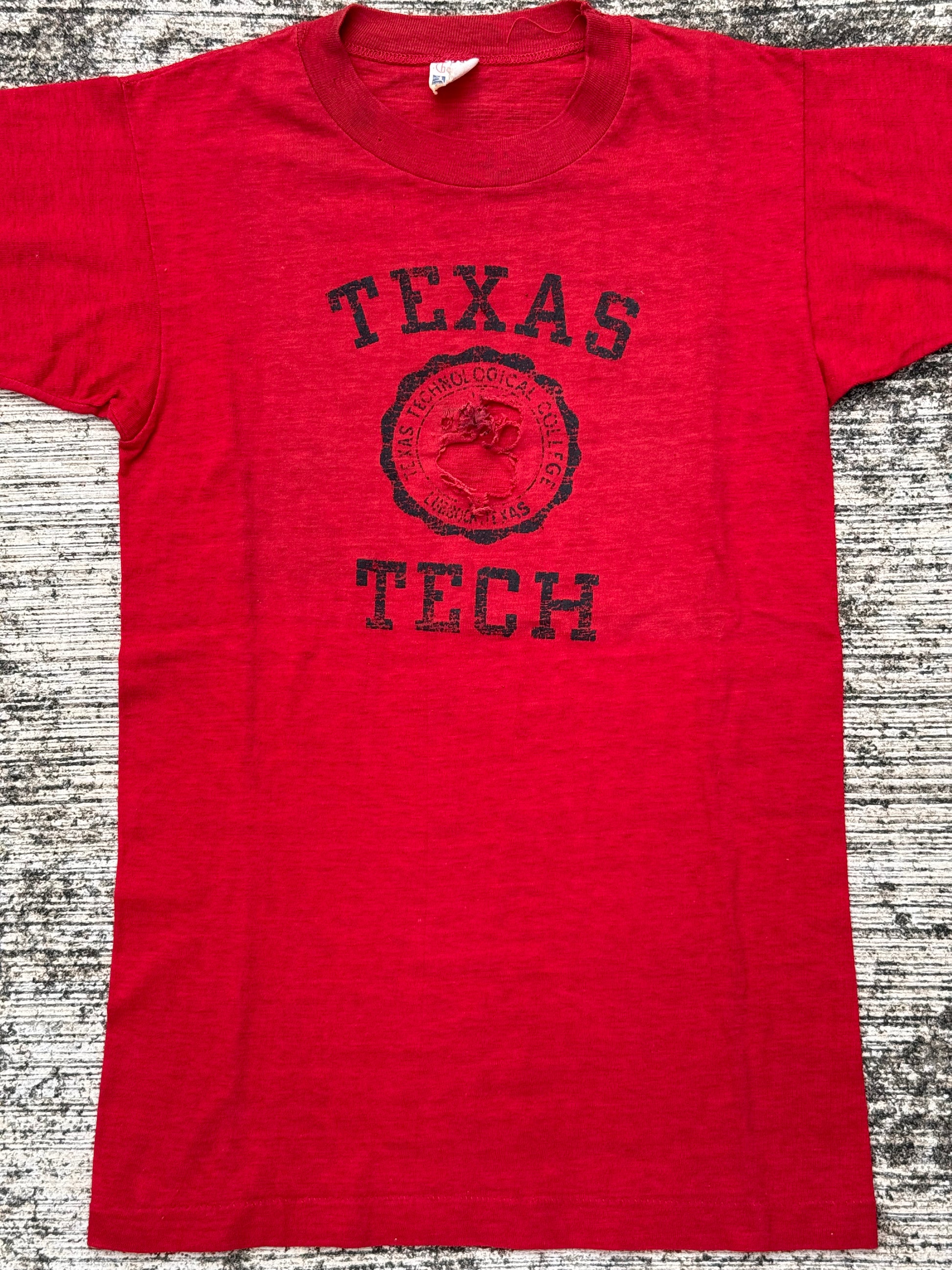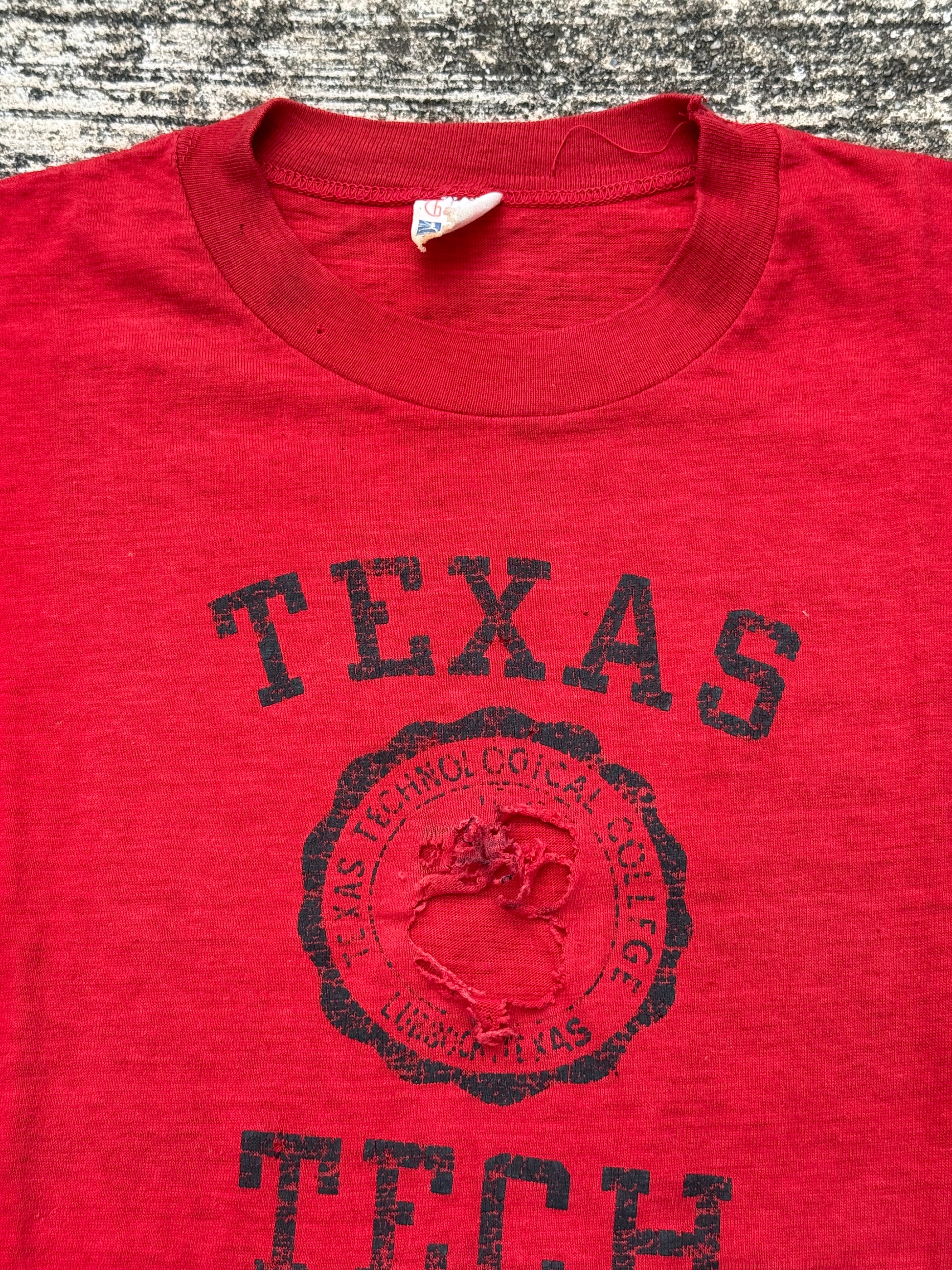 Authentic vintage Texas Tech University T-shirt from the late 1950s–early 1960s, made by Champion under the rare Running Man label.