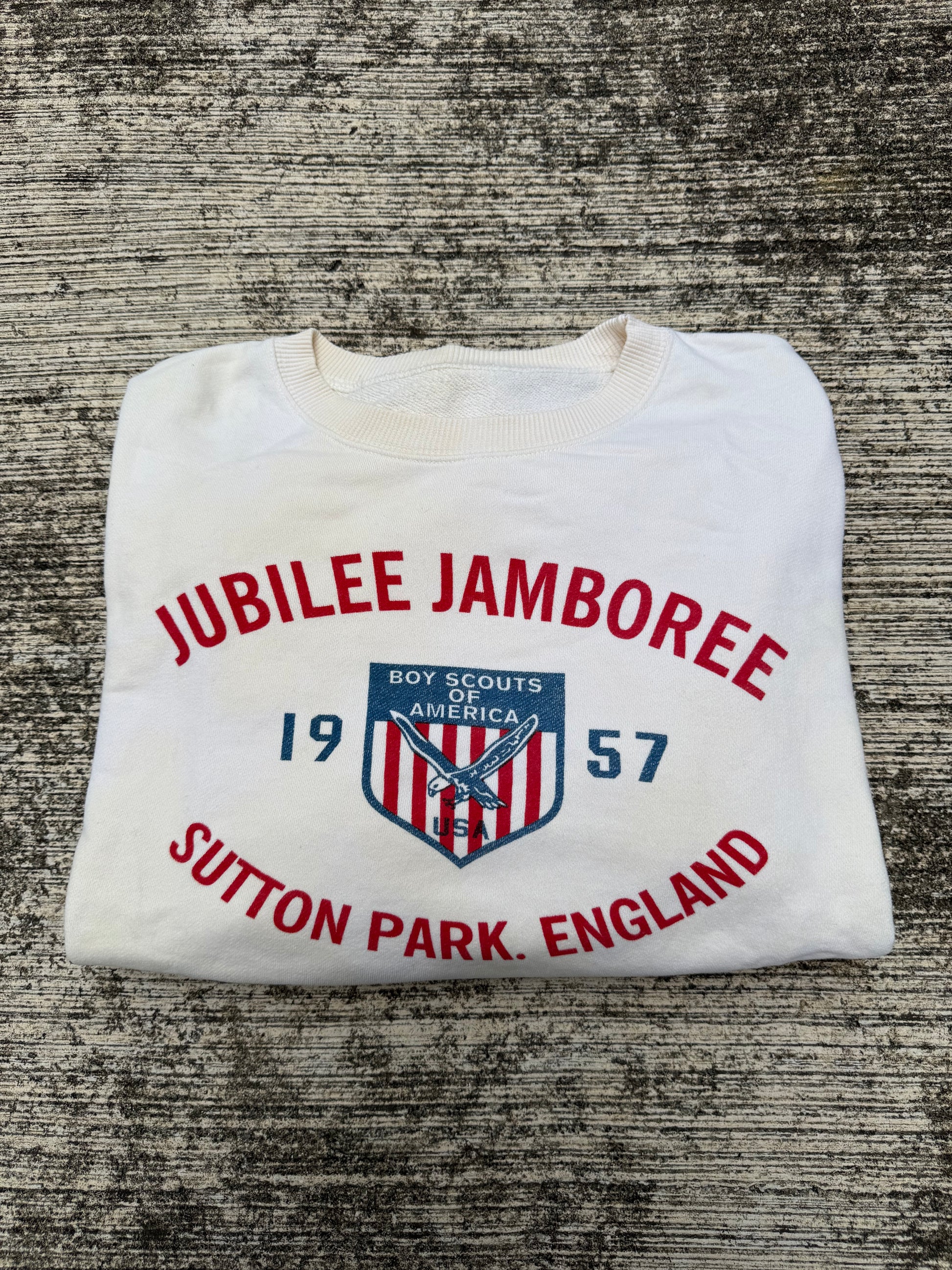 Authentic vintage Boy Scouts of America Jubilee Jamboree sweatshirt from 1957.