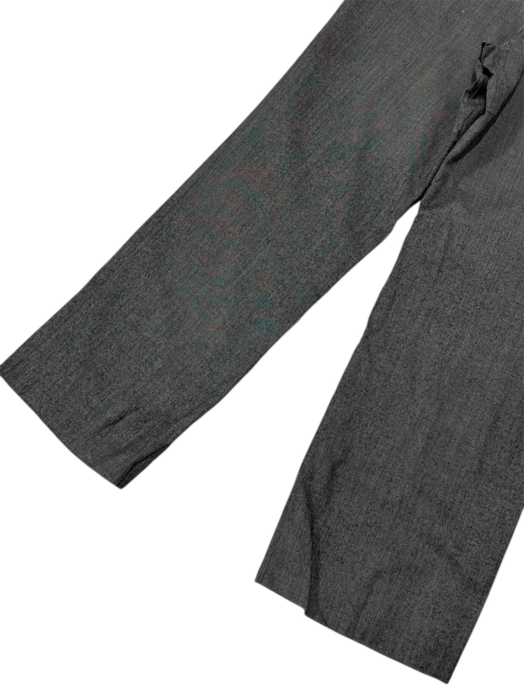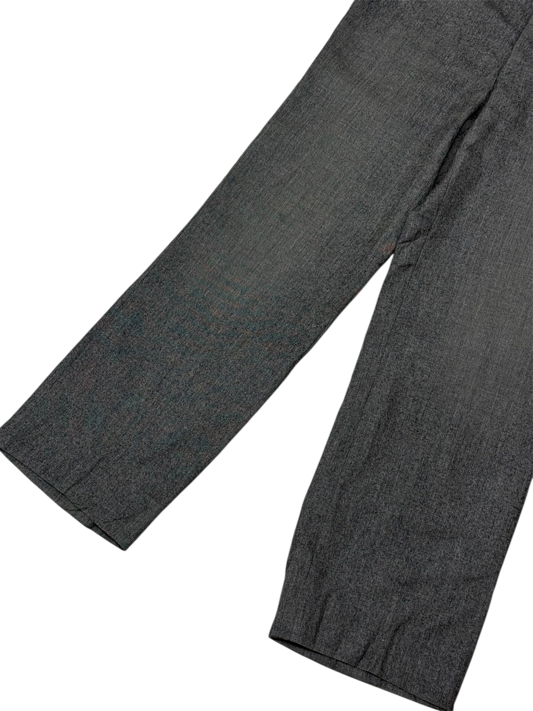 Mid-century European tailored trousers in signature salt & pepper wool-blend fabric, dating from the late 1960s to 1970s. The speckled black-grey weave gives subtle texture and depth, classic work-tailoring aesthetic from the postwar modern era. Structured yet breathable, ideal for smart casual or vintage formal wear.