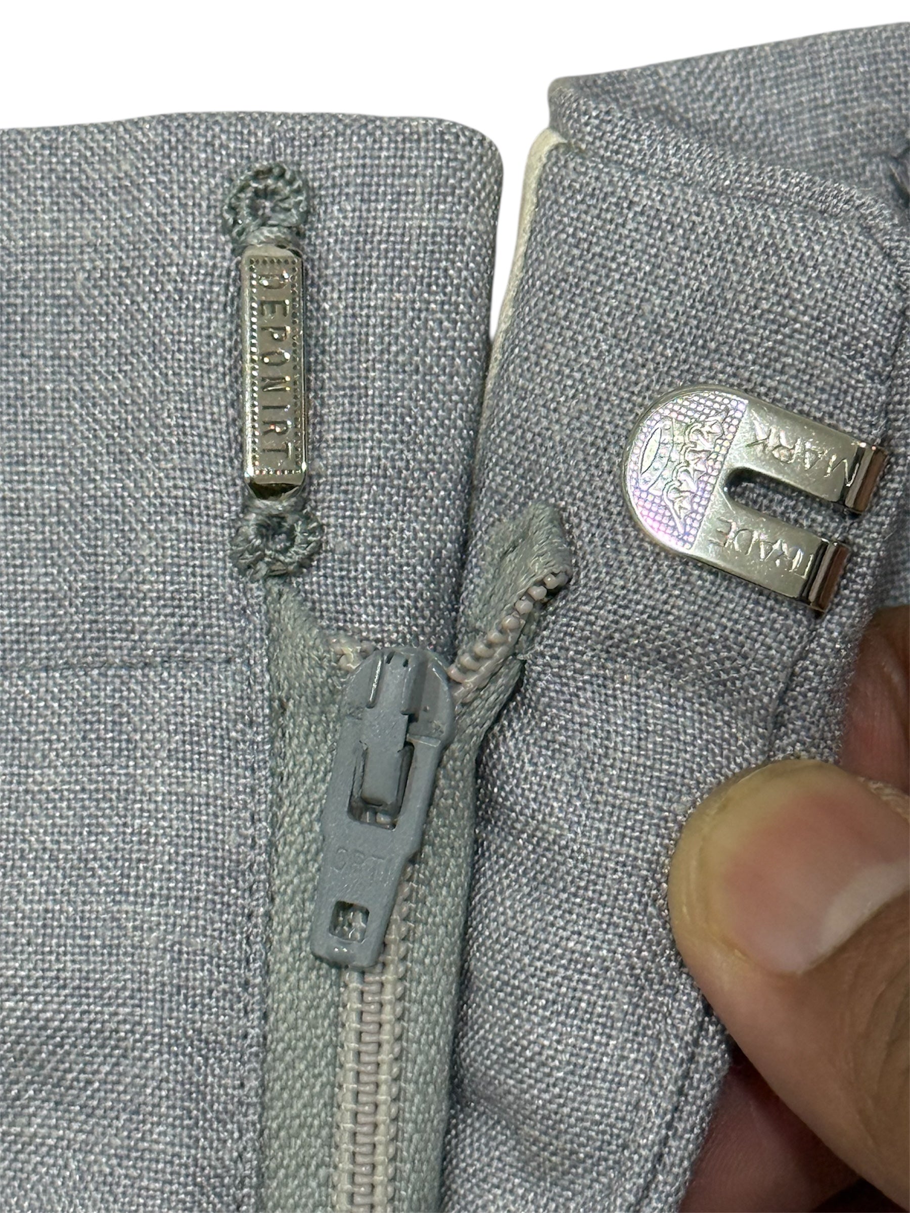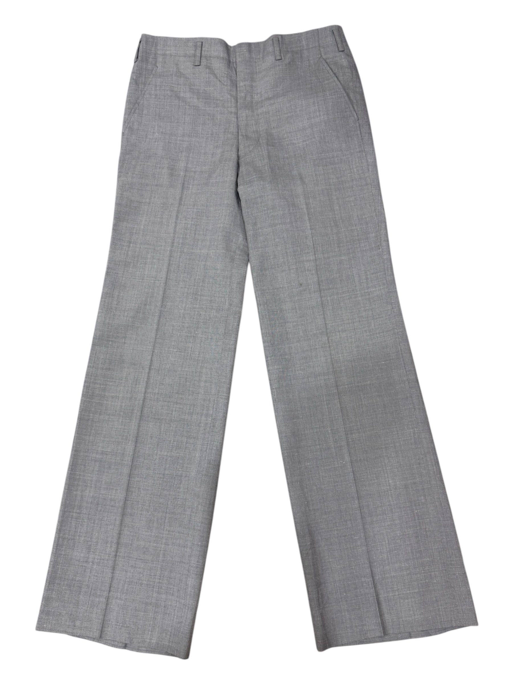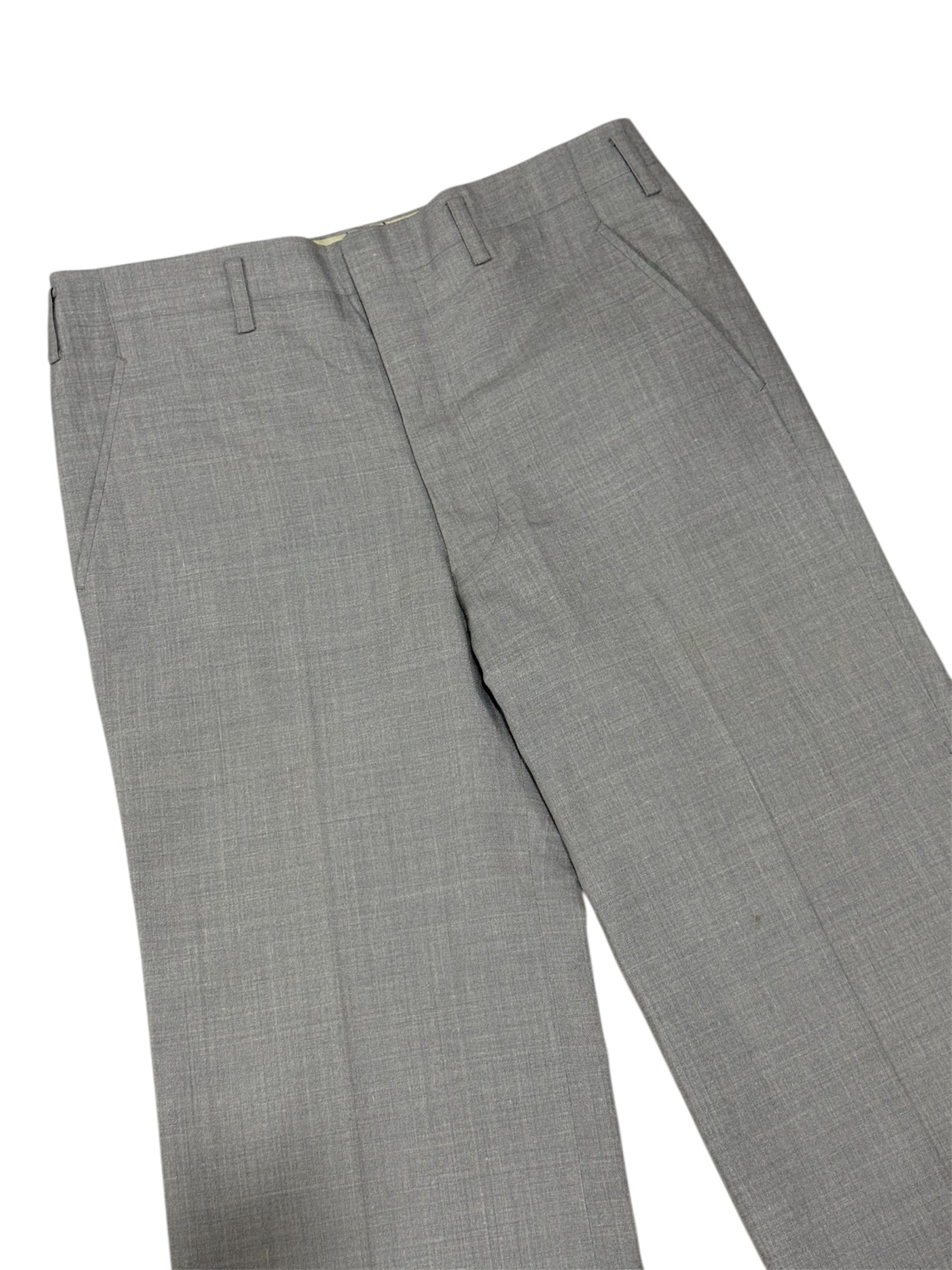 Elegant European tailored trousers from the 1960s–1970s. Constructed from a premium wool–linen blend in a refined ash grey tone, finished with striped inner waistband and neatly welted back pockets. A sophisticated example of mid-century German craftsmanship, airy yet structured, blending comfort and precision tailoring. Excellent vintage condition with mild signs of age, no major flaws.
