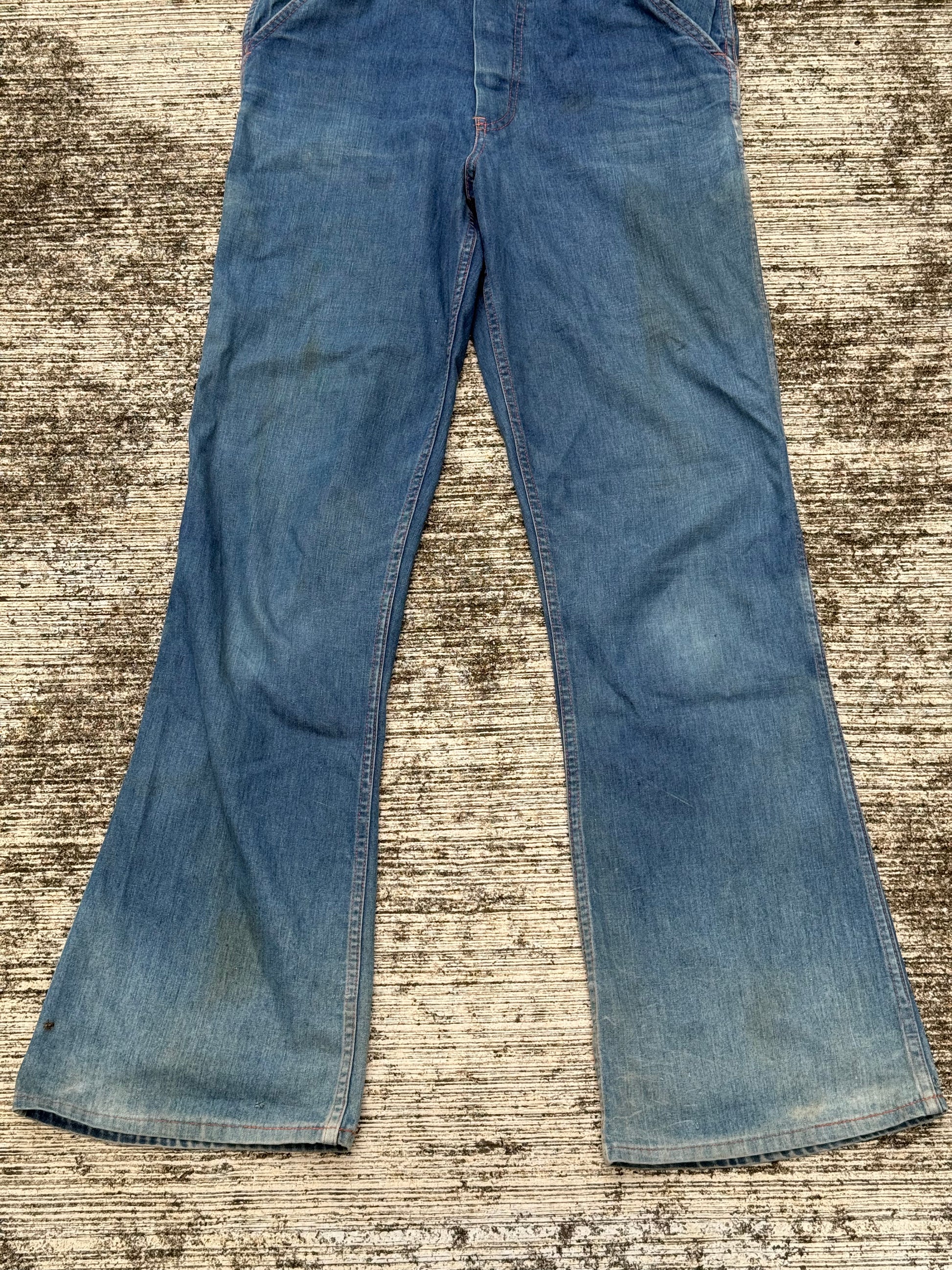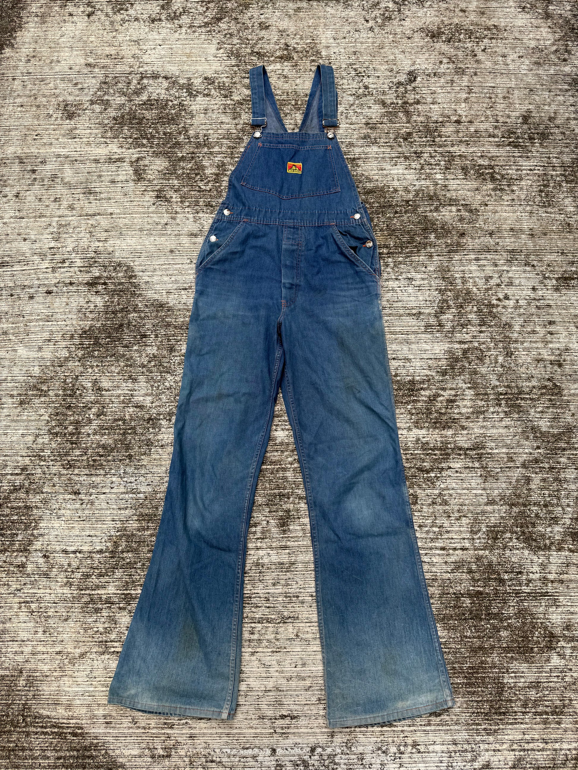 A transitional Ben Davis overall from the late 1960s into the early 1970s, bridging classic mid-century workwear with the emerging flare silhouettes of the era.