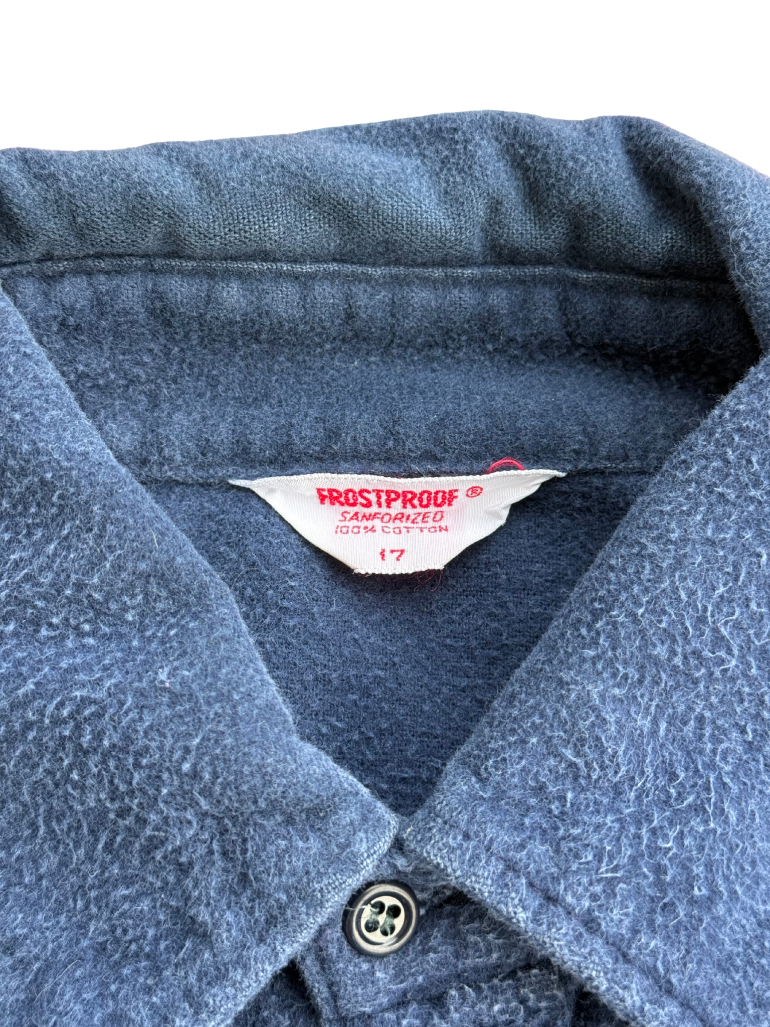 Original Frostproof heavy flannel shirt made in U.S.A., circa mid–late 1960s. Constructed from thick brushed 100% cotton with signature frosted texture for superior warmth and durability. Features double flap chest pockets, wide pointed collar, and reinforced hem, rugged American workwear with timeless cold-weather utility.