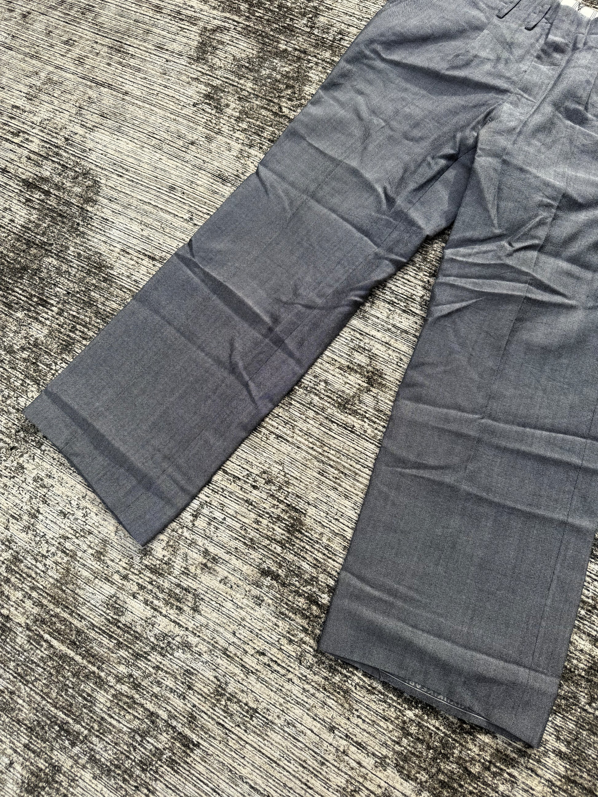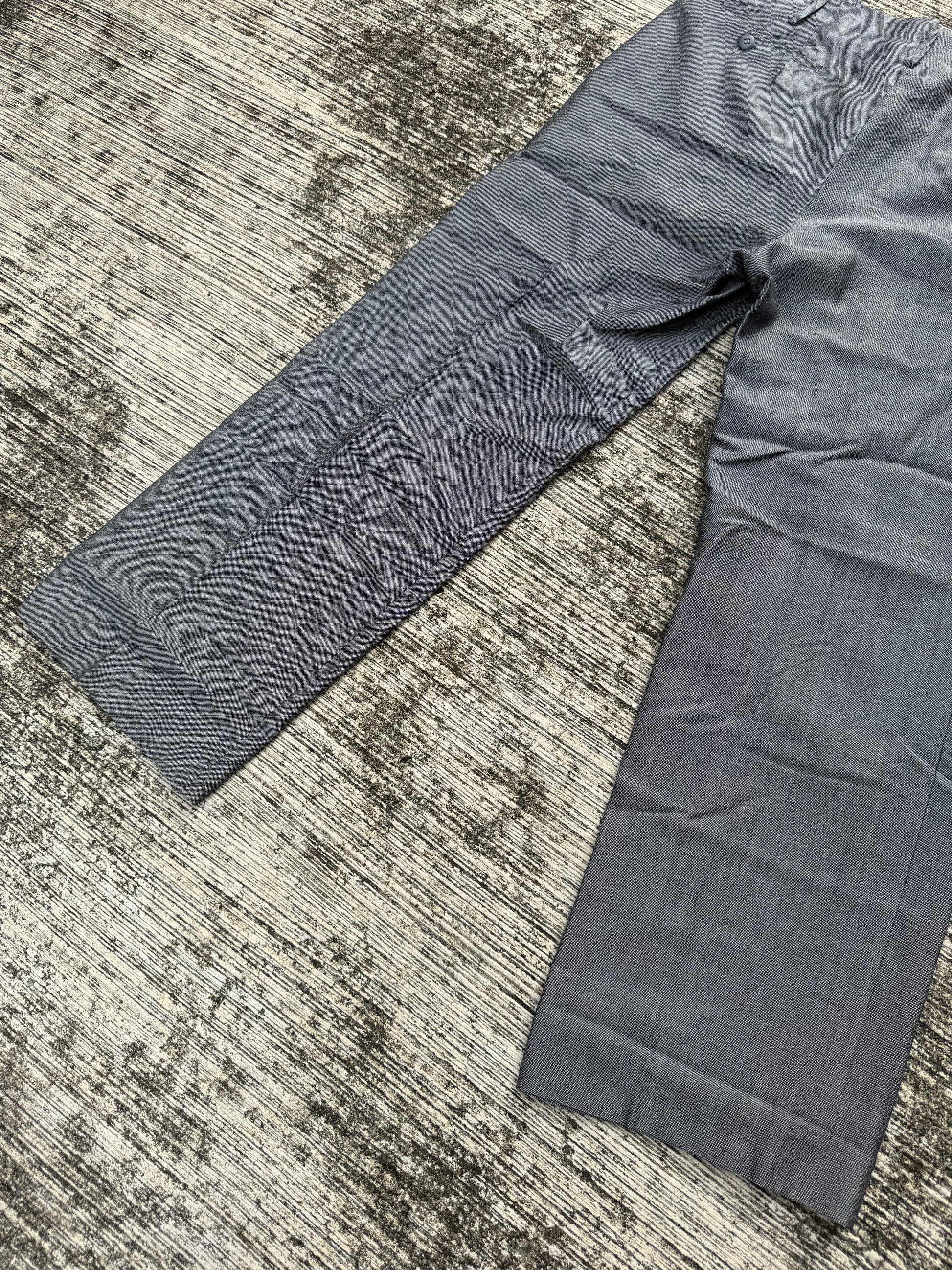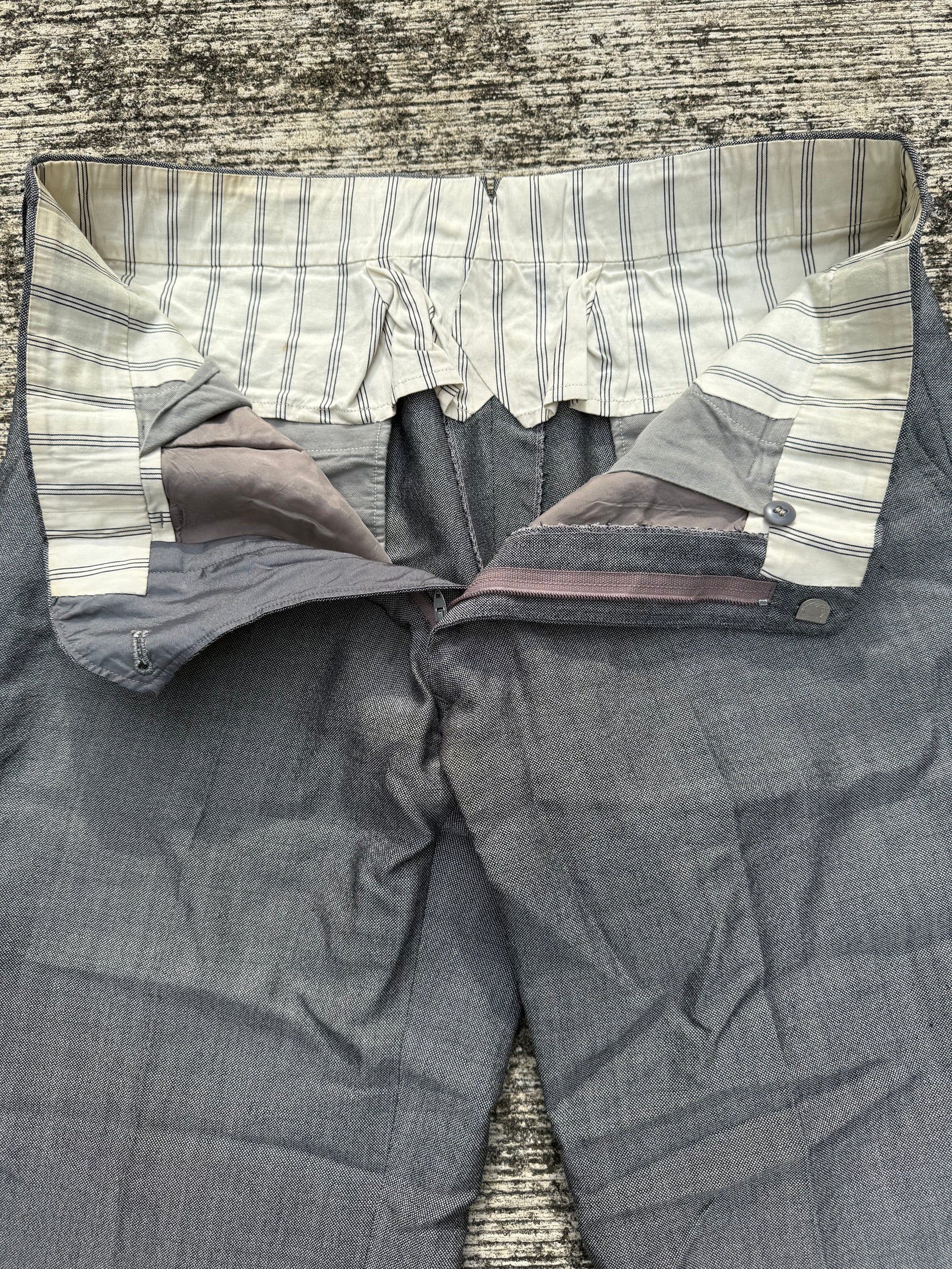 Authentic vintage grey trousers from the 1960s, tailored in a timeless straight leg cut. Features a structured waistband with belt loops, slanted side entry pockets, and welted back pockets for a clean, minimal silhouette.