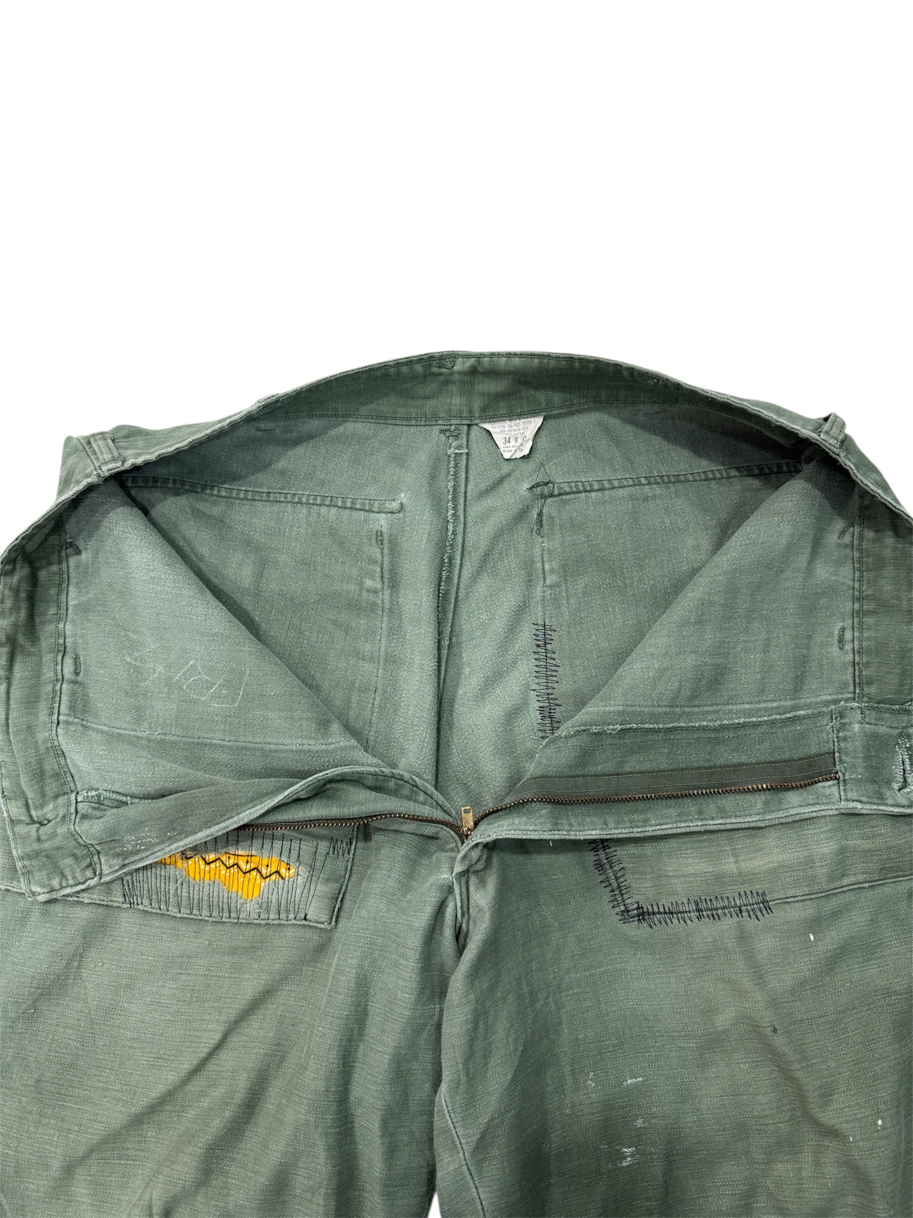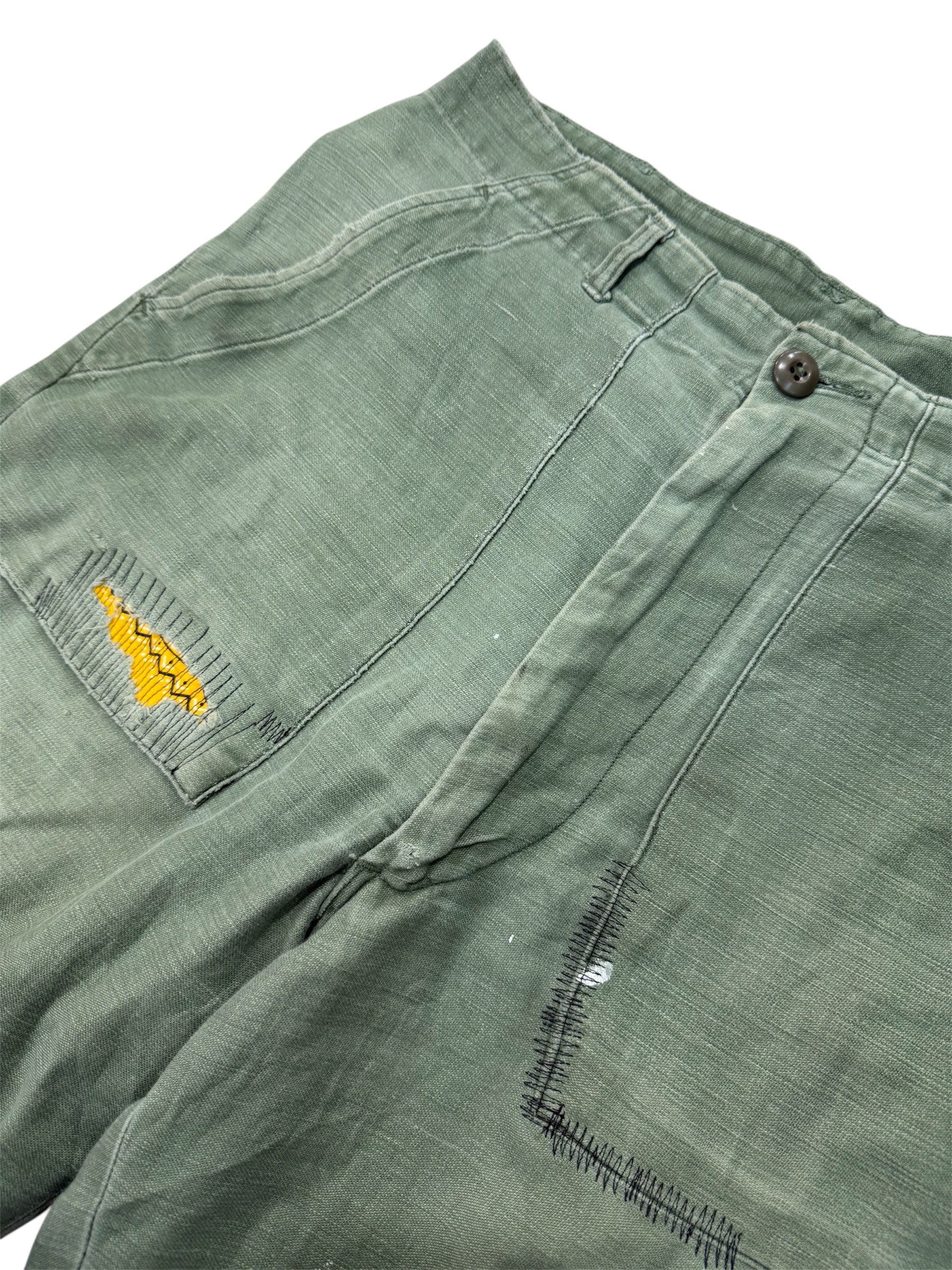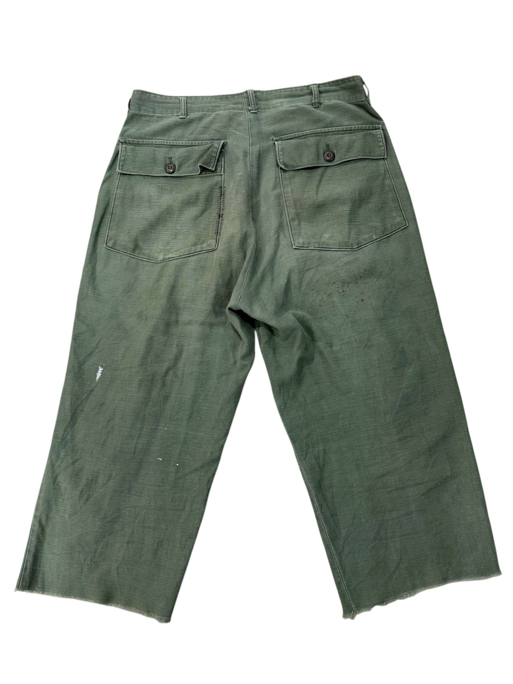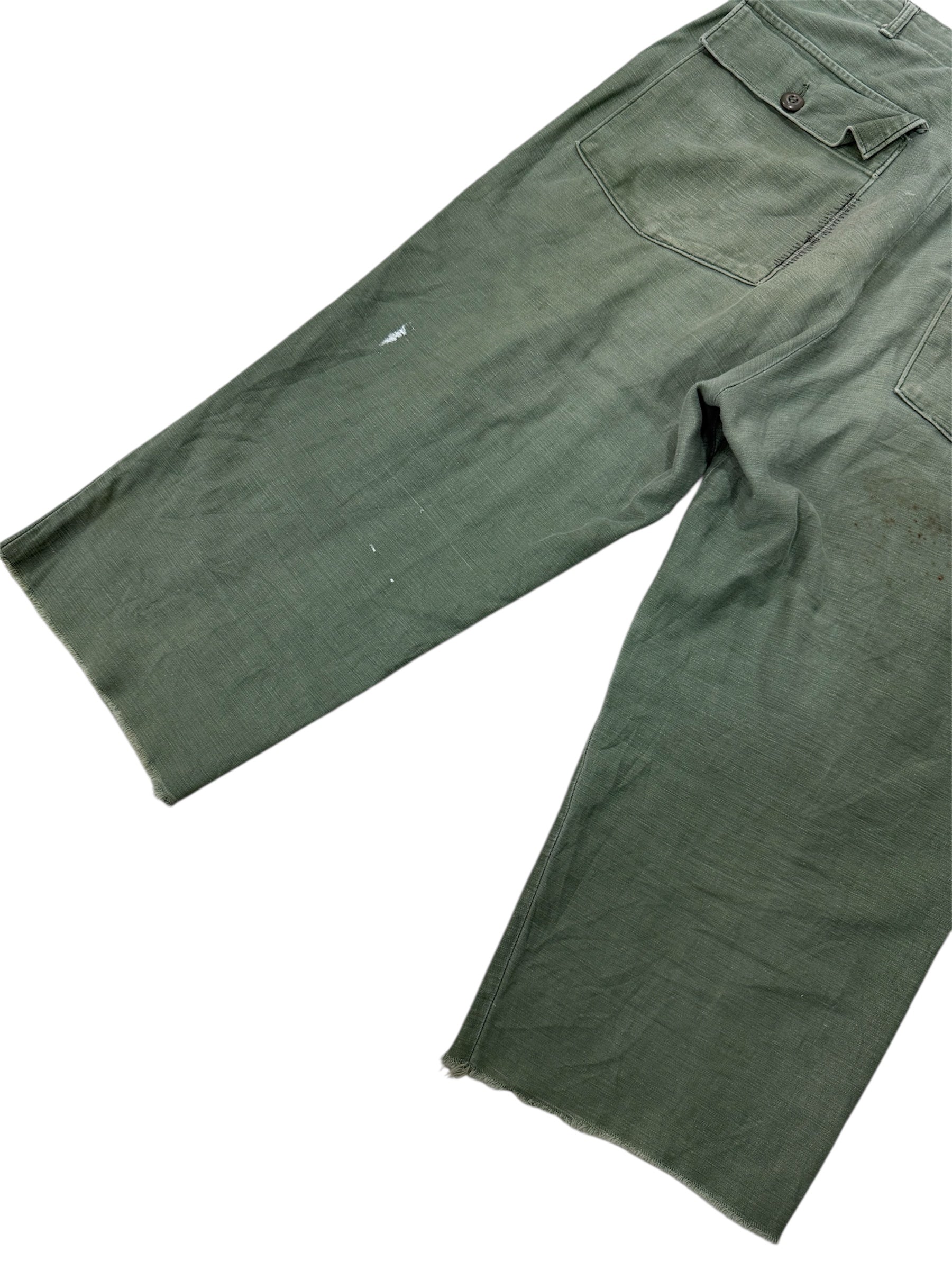 Vintage 1960s US Army OG-107 Sateen Reworked Pants Cropped Military Trousers Vietnam Era