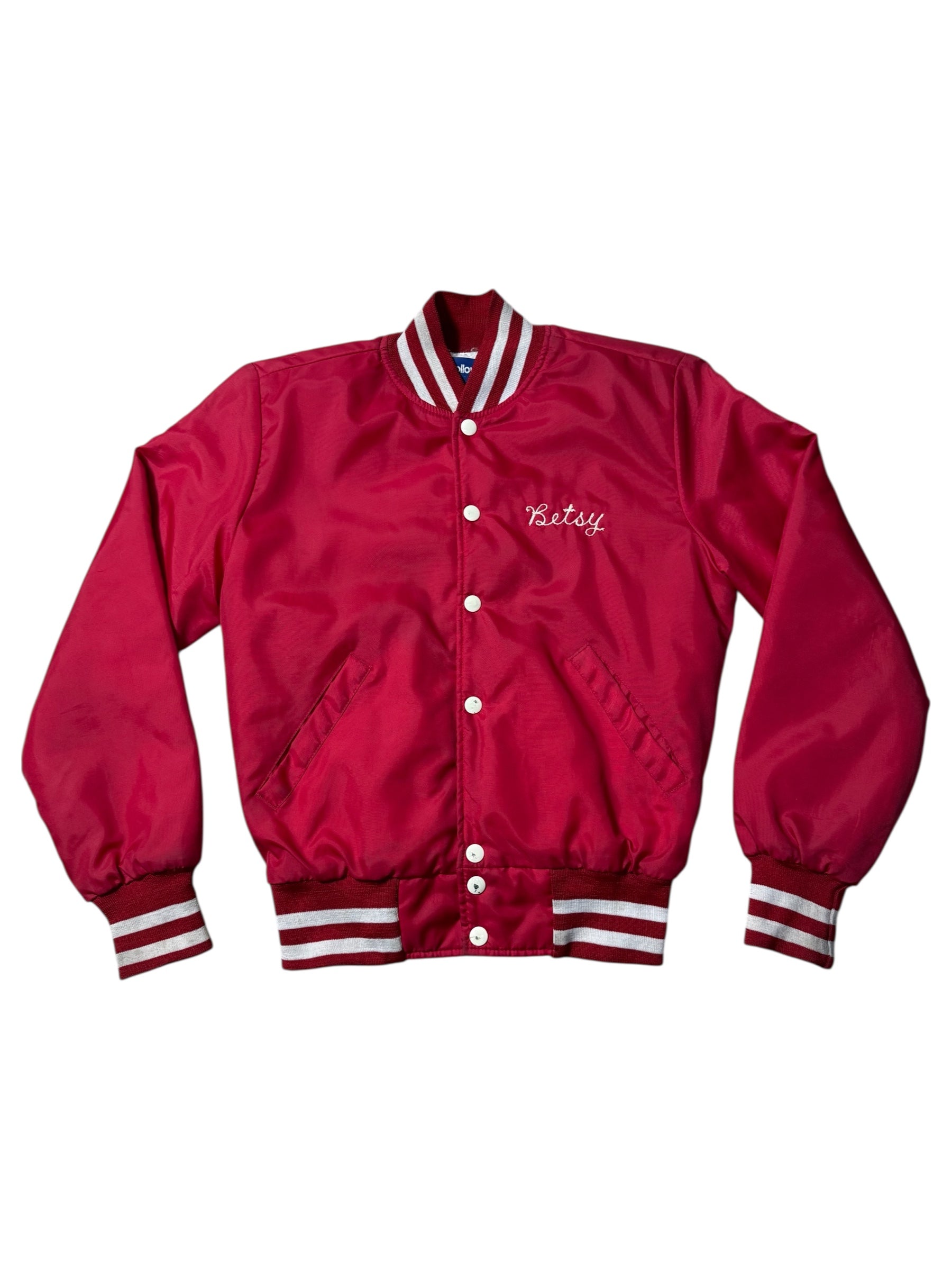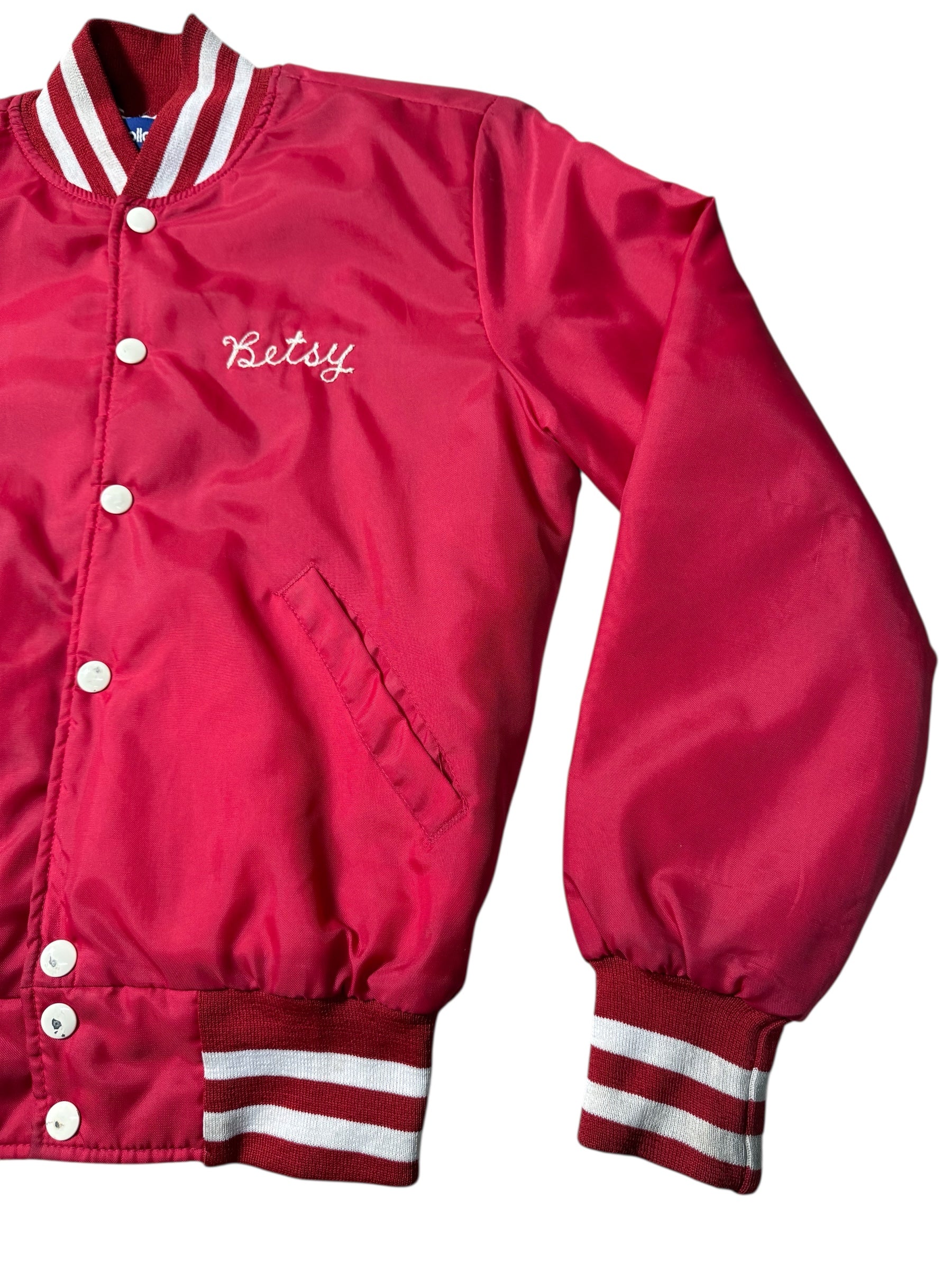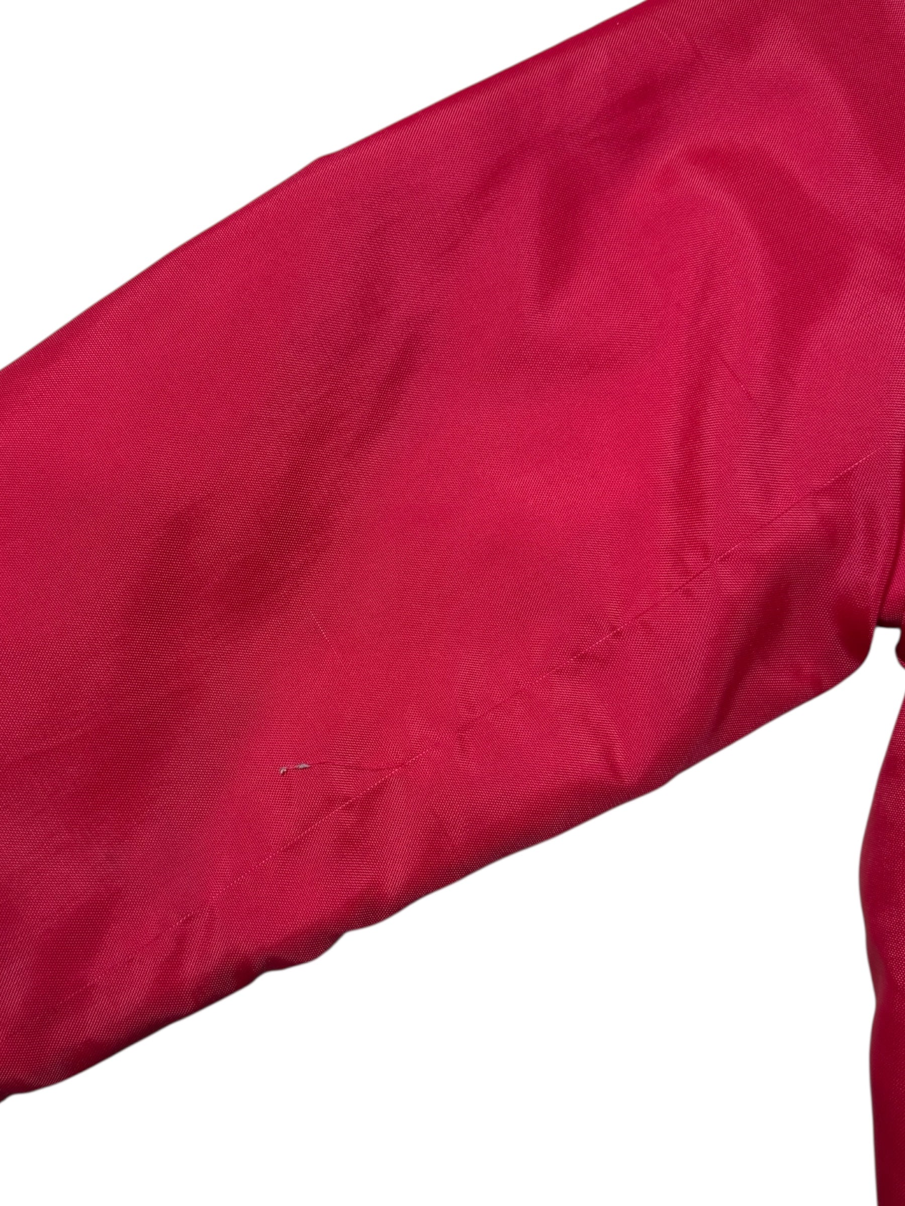 Medium weight nylon shell with insulated lining gives a structured varsity silhouette. Embroidered details remain strong and legible. A solid vintage sportswear piece suitable for casual wear collectors or archive styling.