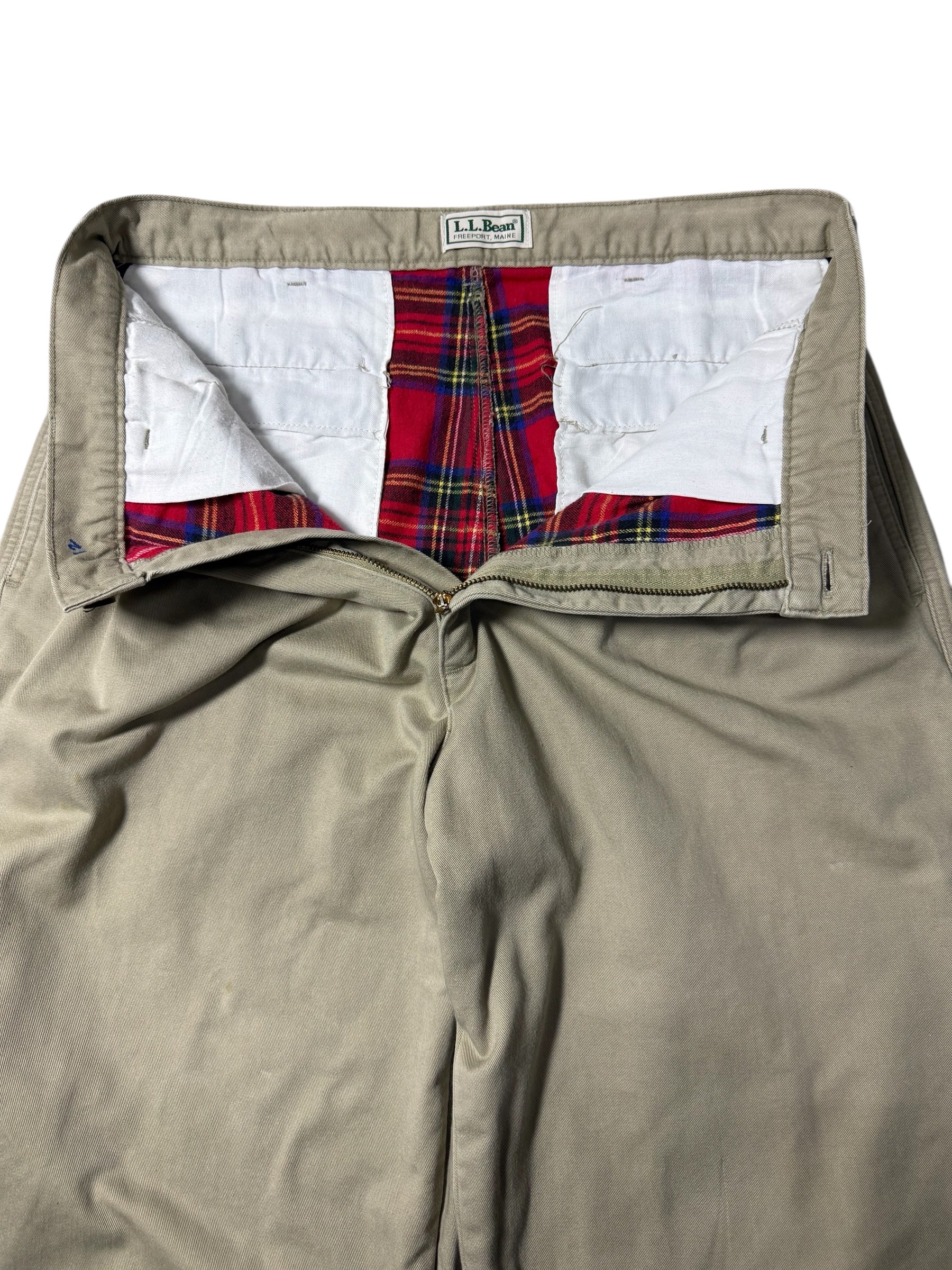 L.L.Bean trousers made from durable cotton twill with a straight-leg cut and high rise, featuring a warm red tartan flannel lining.