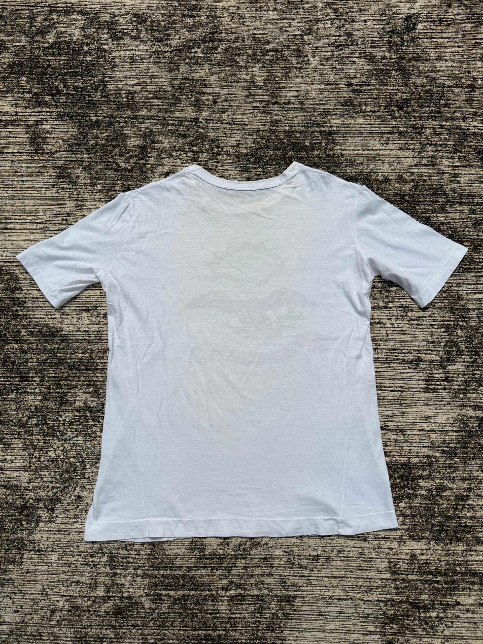 Original 1970s–80s North Dakota souvenir tee featuring the bold state flag eagle crest graphic with sunburst, shield, and banner details. Classic Americana piece with soft cotton body and single stitch construction, capturing the vintage souvenir tee culture of mid-century America. Shows some faint spots and wear, adding authentic patina and character.