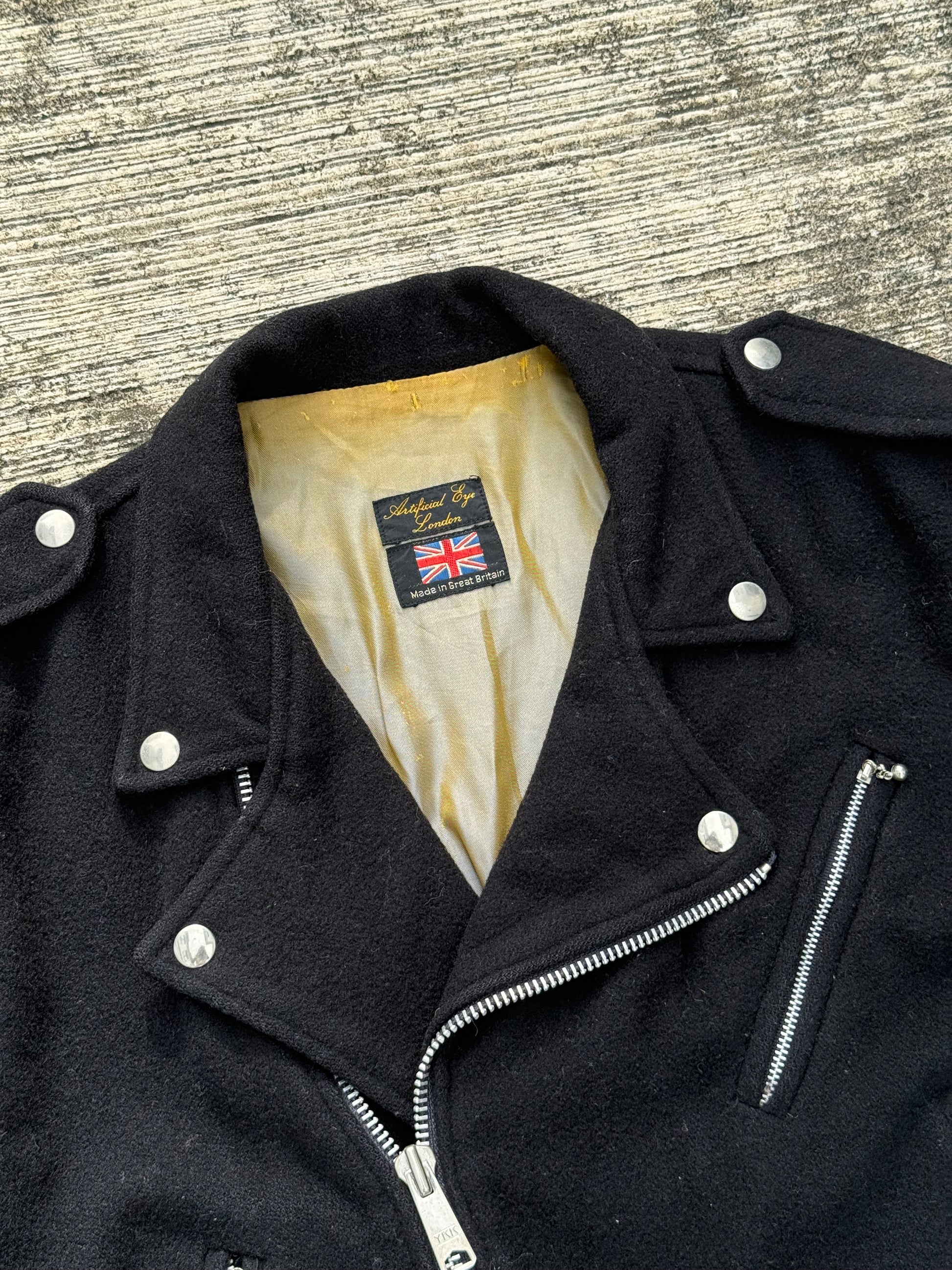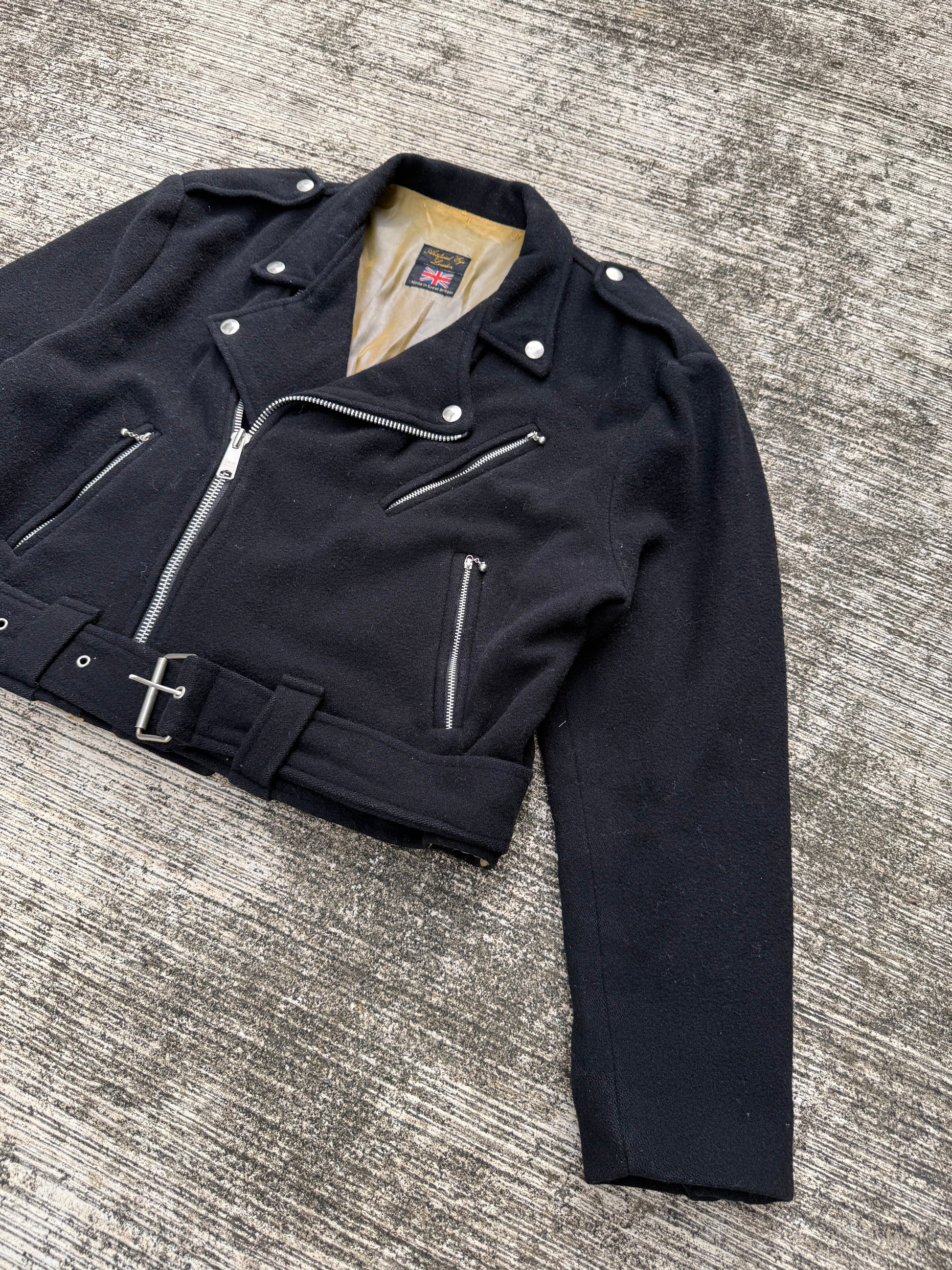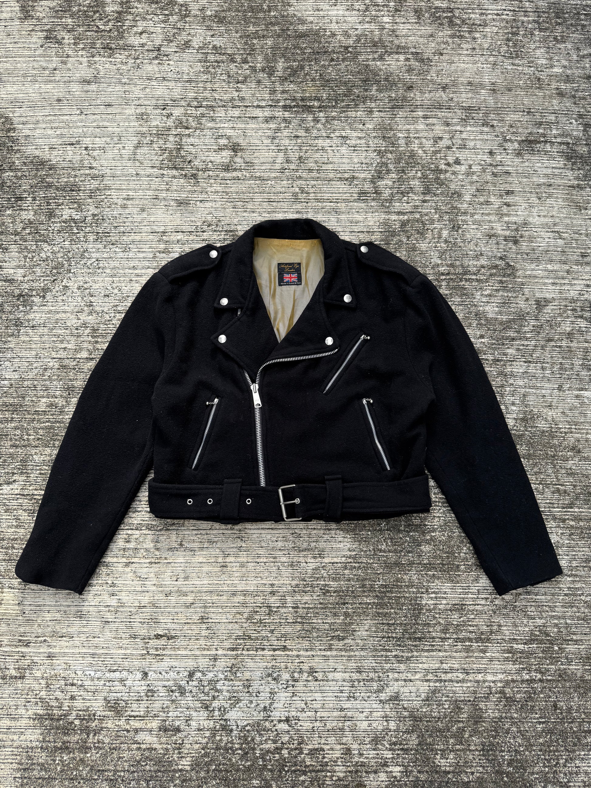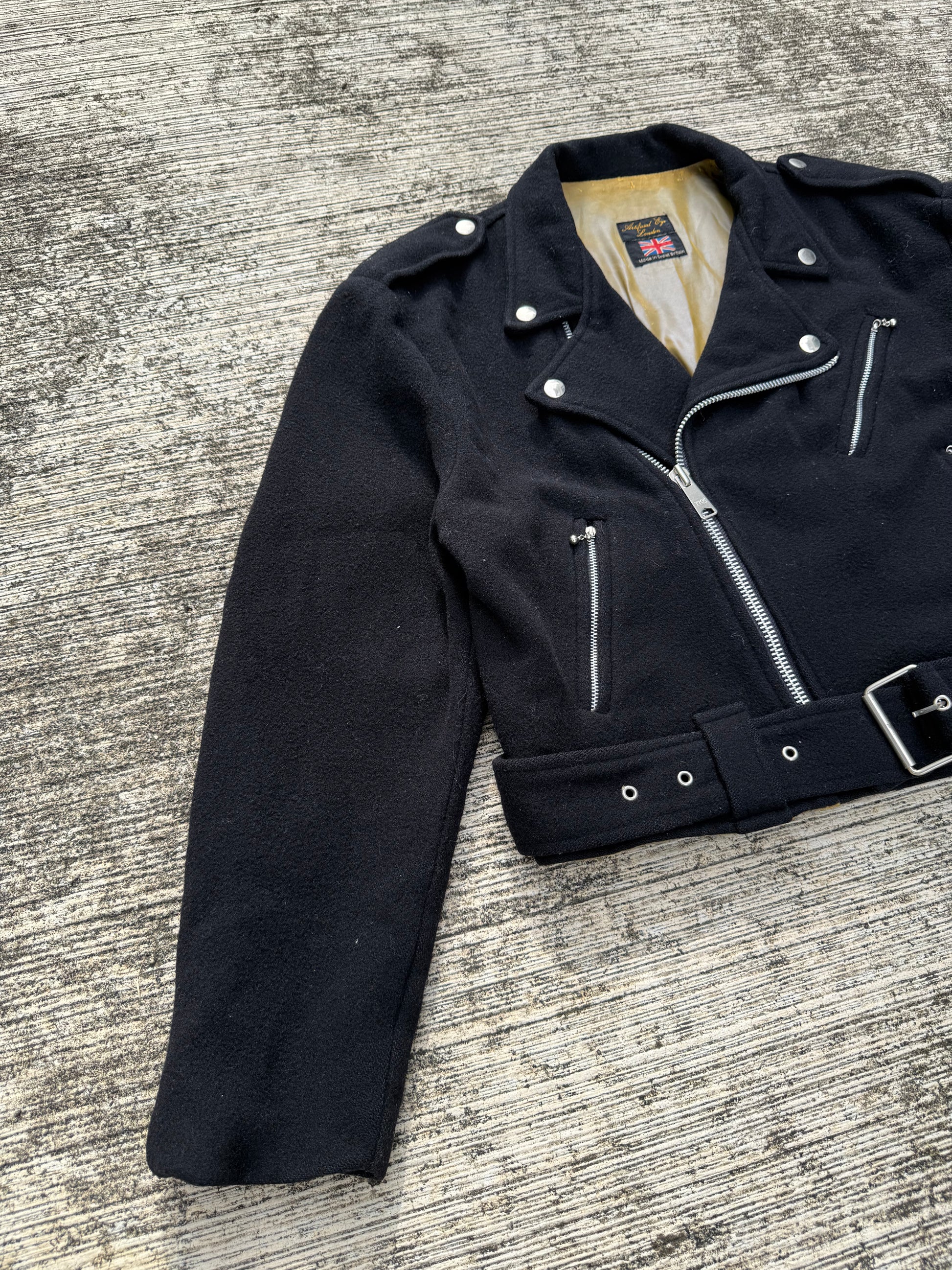 Vintage 1970s Artificial Eye London Wool Biker Jacket Cropped Motorcycle Style