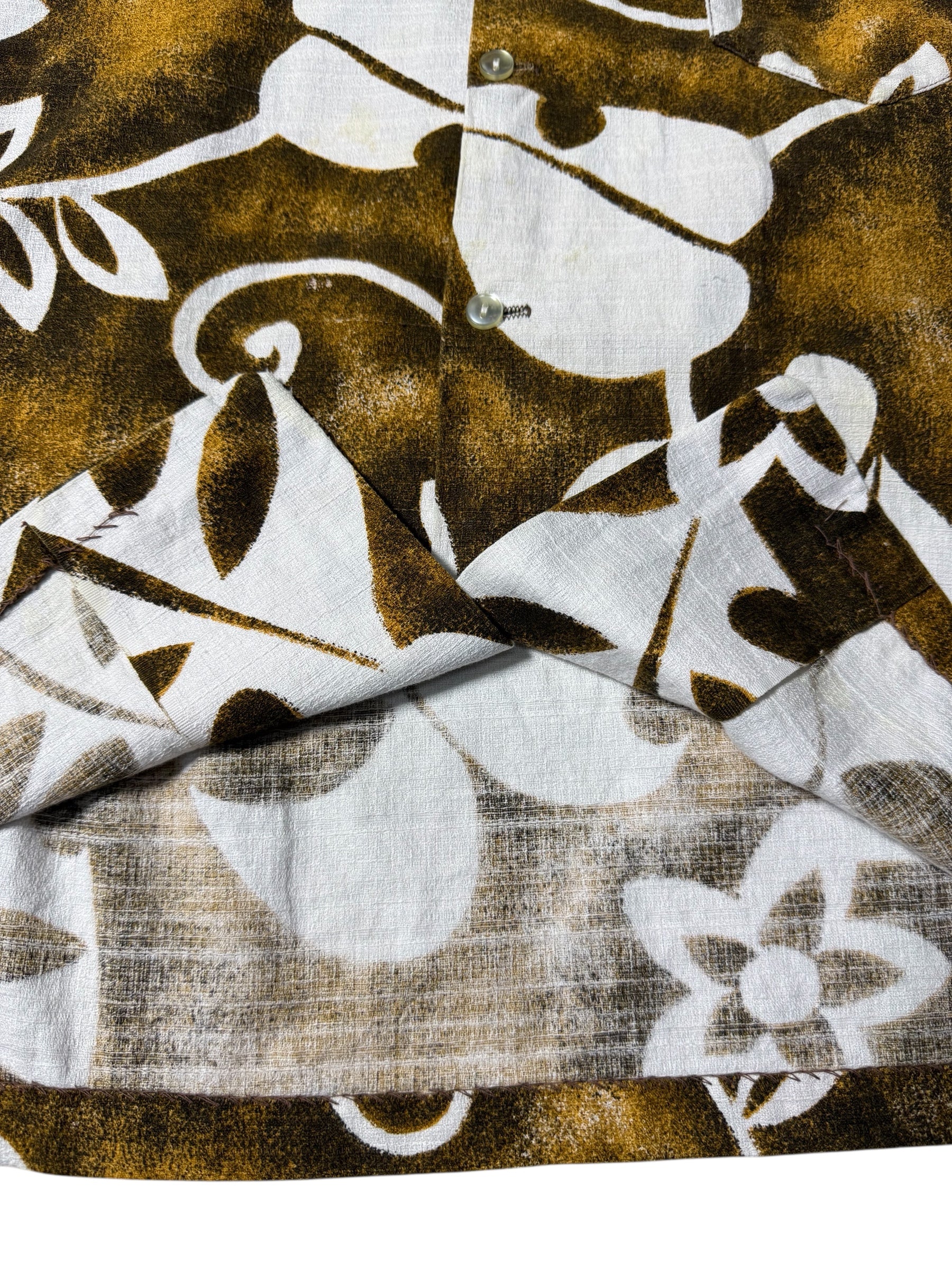 Vintage 1970s Mr. Kailua Hawaiian Aloha Shirt Brown/White Floral Made in Hawaii