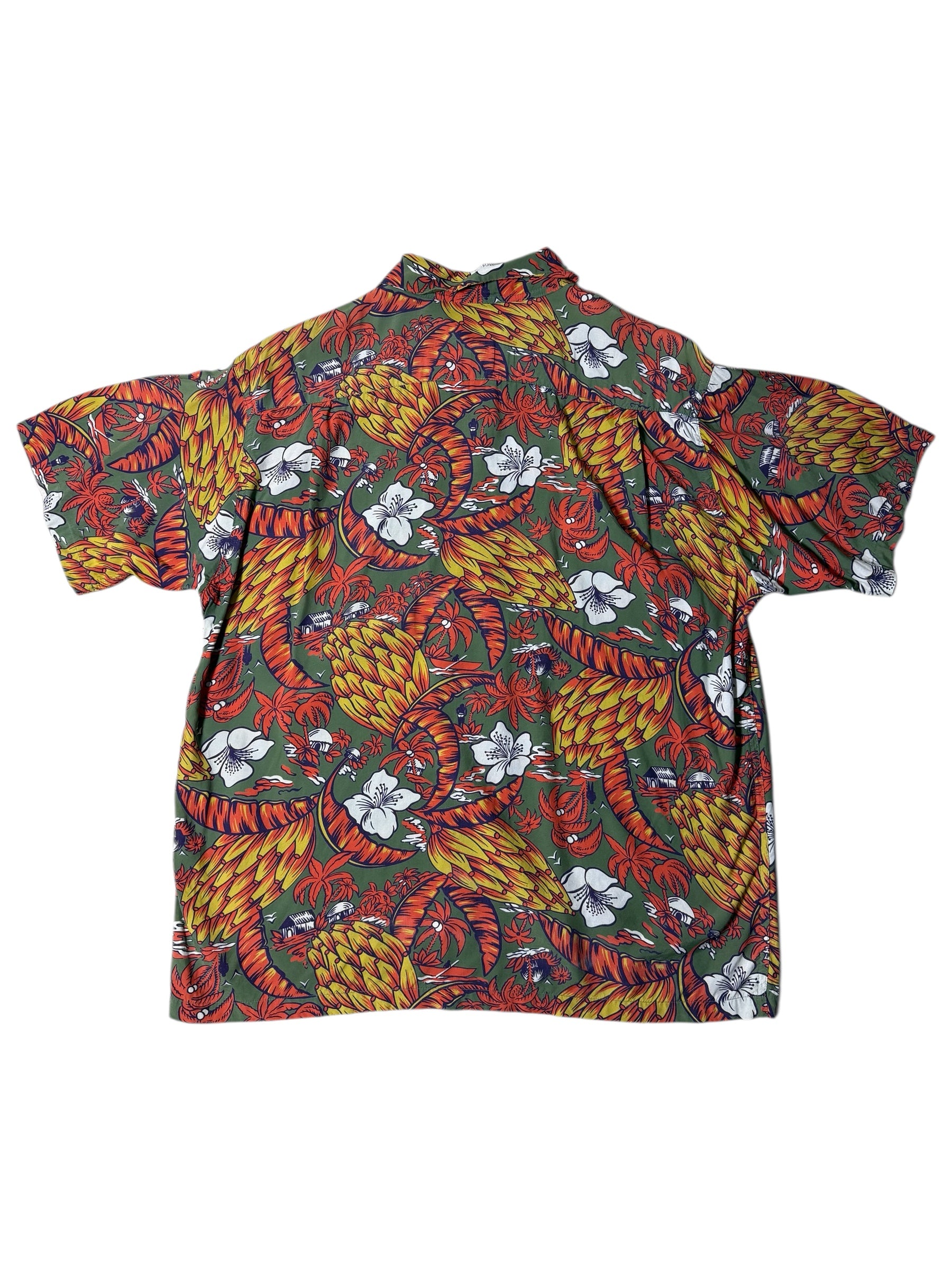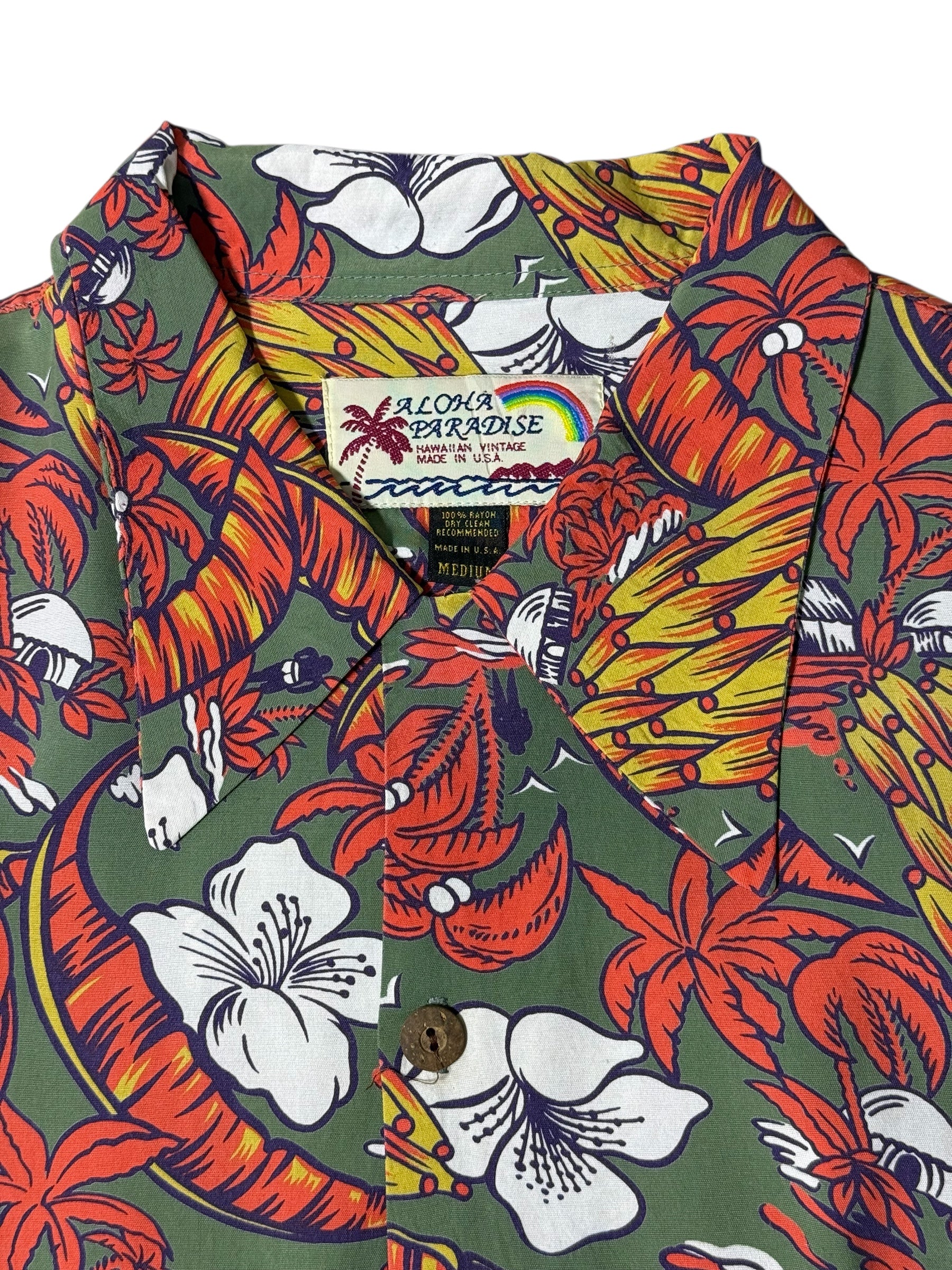Vintage 1980s–90s Aloha Paradise Hawaiian Rayon Aloha Shirt Tropical Print Made in USA