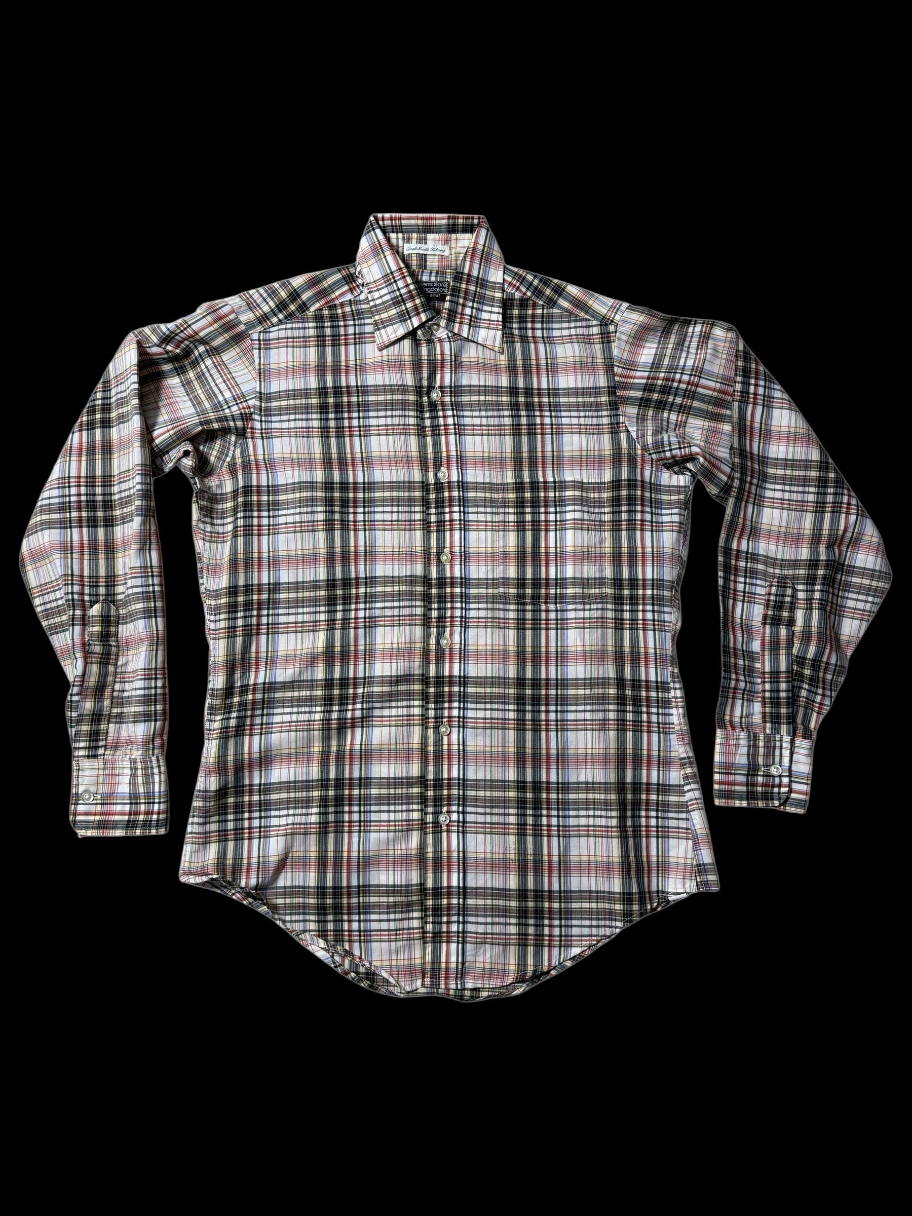 Authentic vintage American department store plaid shirt from Bloomingdale’s menswear line. Made from lightweight cotton fabric with clean single needle tailoring throughout. Features button front closure, single chest pocket, classic point collar, and a timeless plaid pattern. A versatile and wearable piece suitable for everyday wear, layering, or Ivy / trad and archive-inspired styling.
