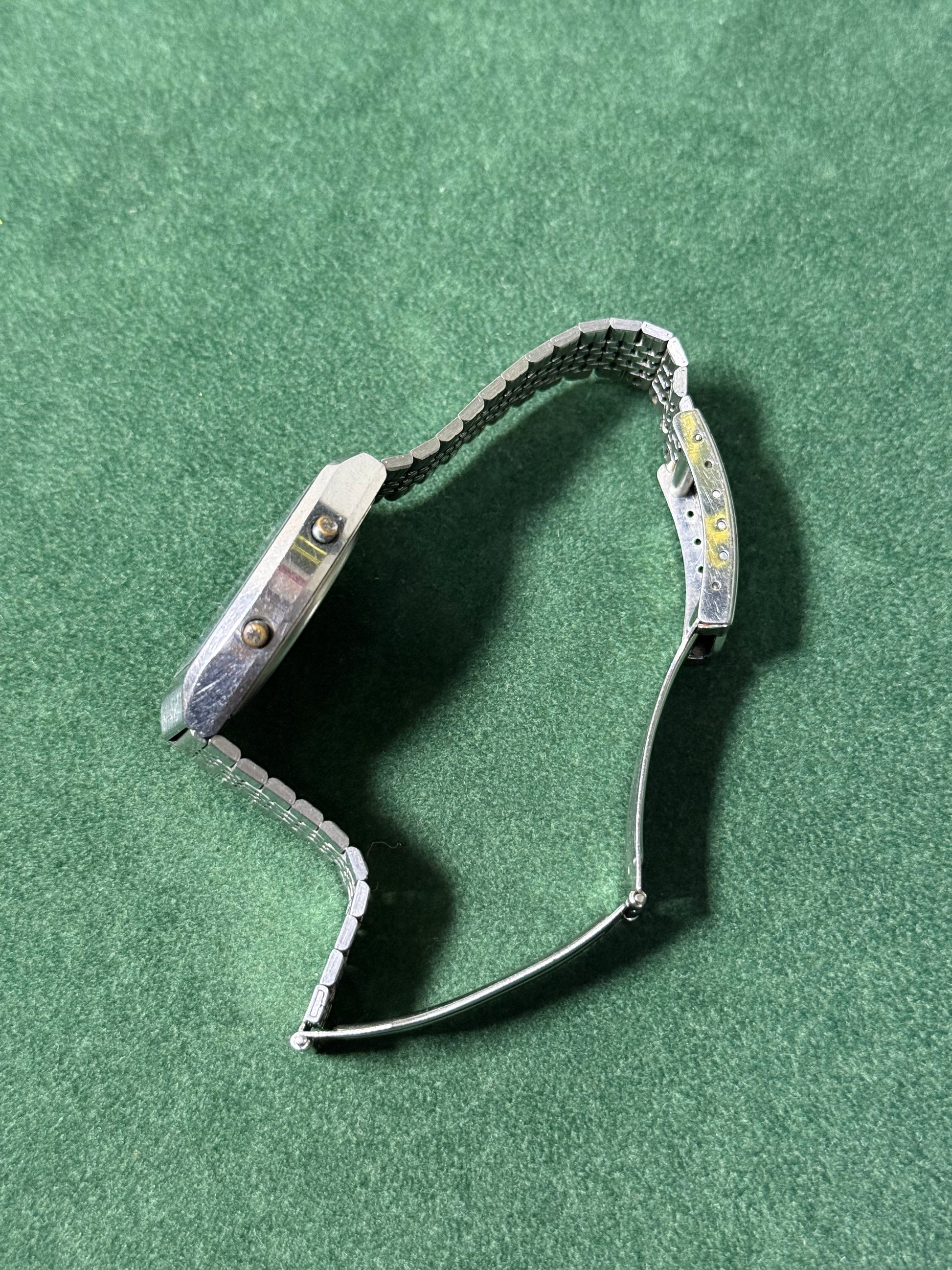 Vintage ALBA digital watch from the 1980s, model Y770-5080. Classic square-case design with full stainless steel bracelet. Display clear, alarm function working (no beep sound), and the backlight still turns on.