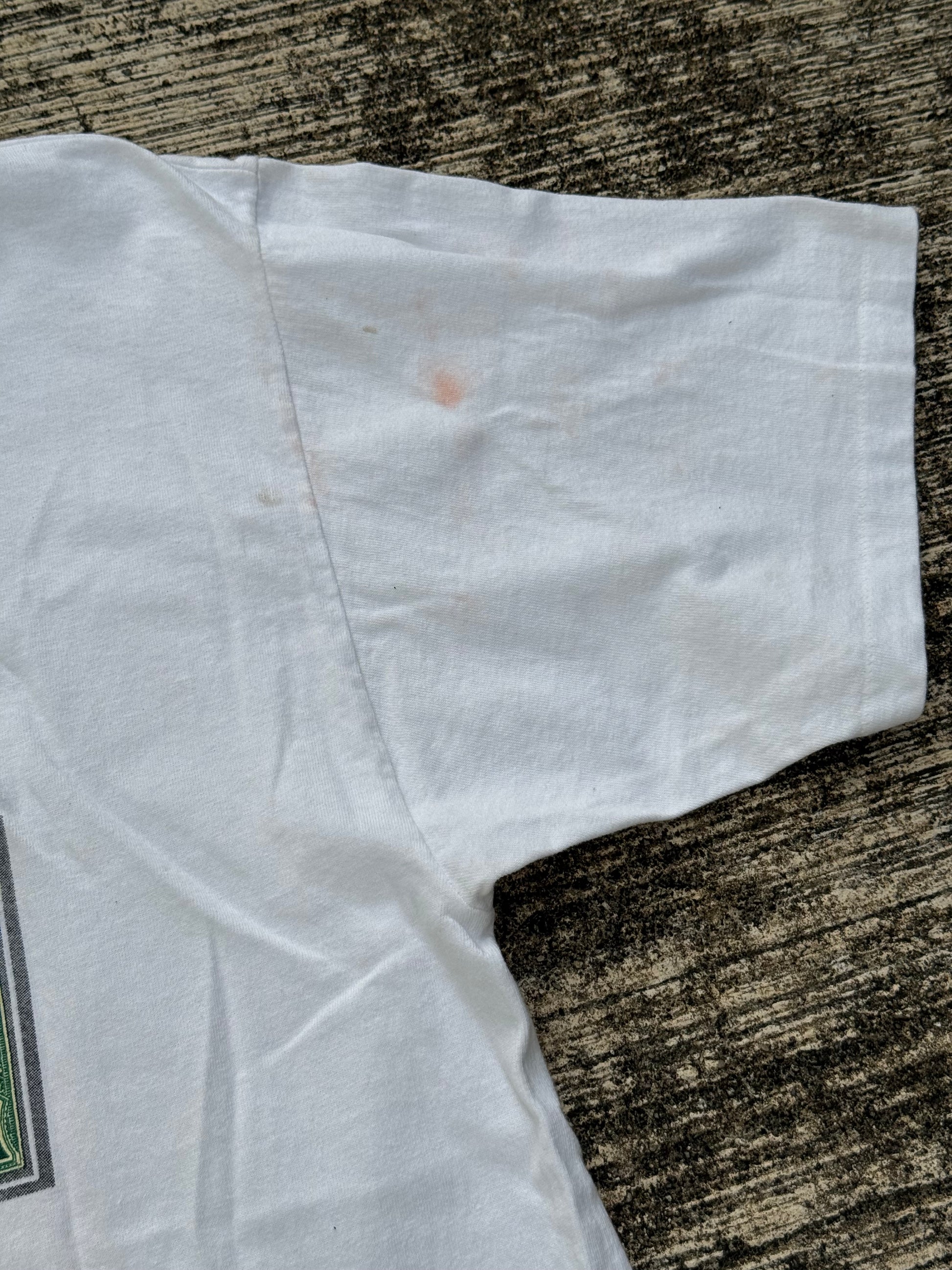 This piece captures the cheeky, money-hungry streetwear humor of the 90s, making it perfect for collectors of vintage graphic tees or anyone looking for a loud statement shirt.