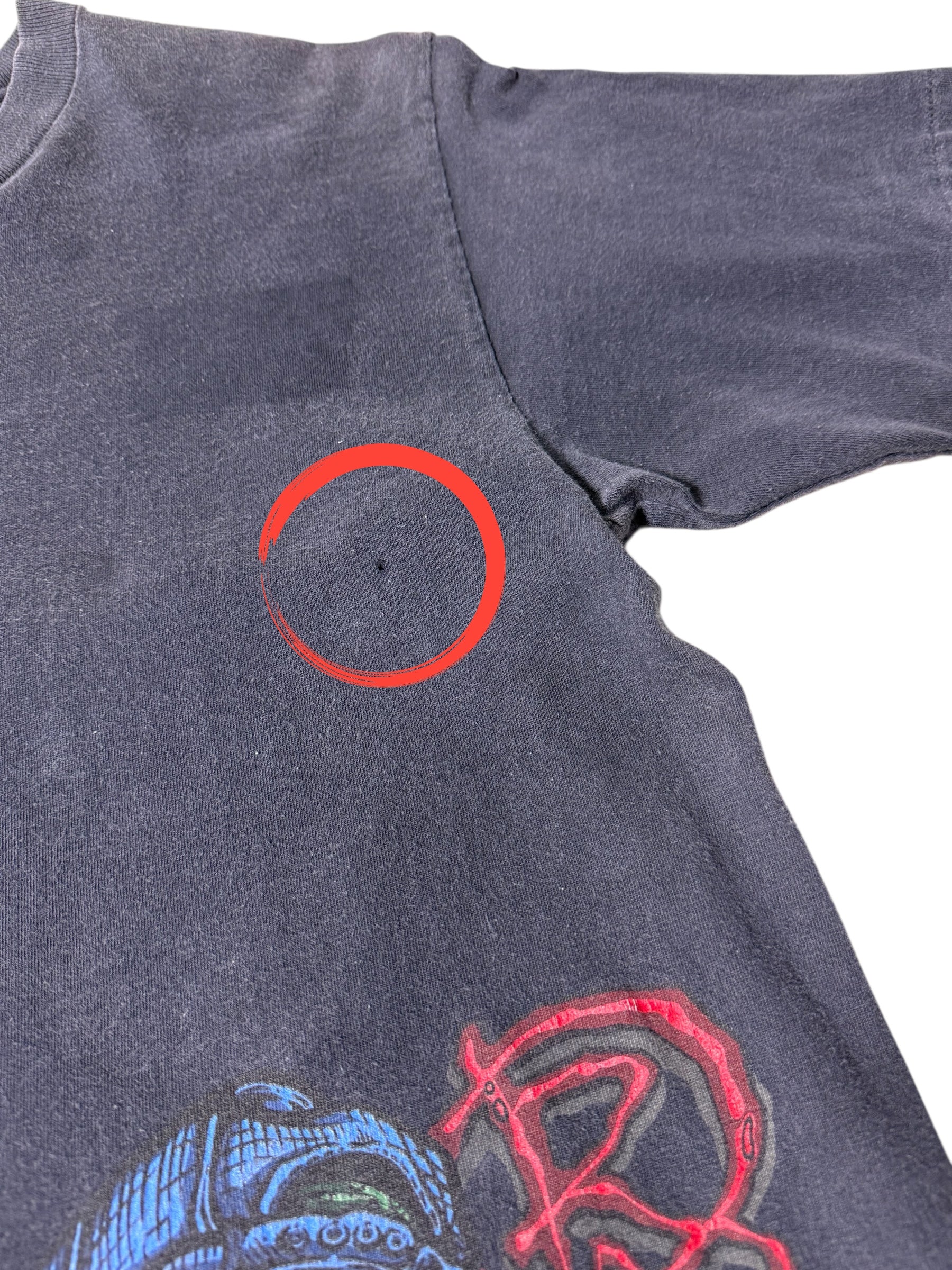 Classic 90s underground skate/punk style with heavy fade and worn-in softness.