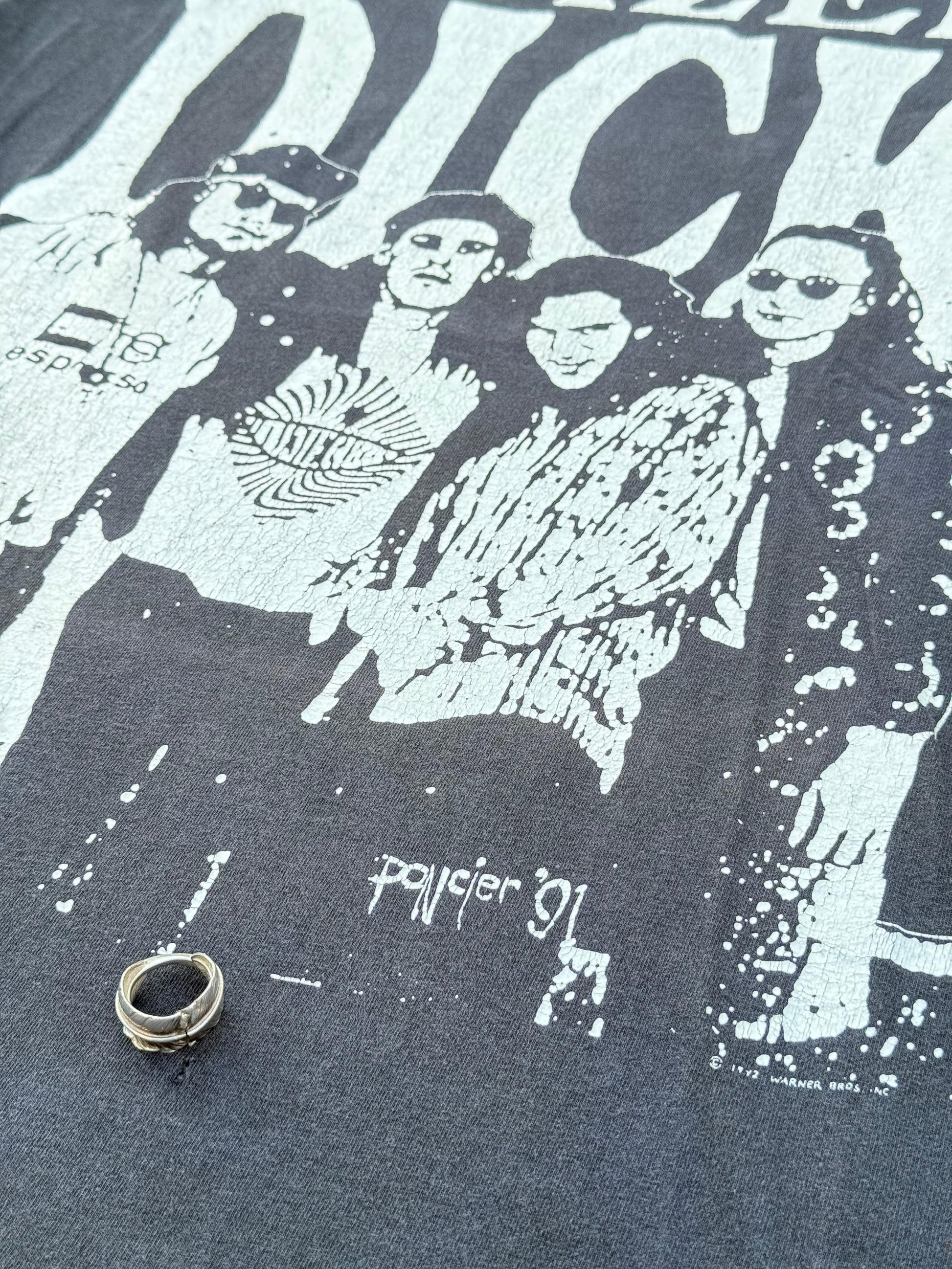 Printed under license to Warner Bros 1991, this shirt is a true early-90s grunge artifact with connections to Seattle’s legendary scene. Soft black cotton body with cracked vintage print, adding authentic character.