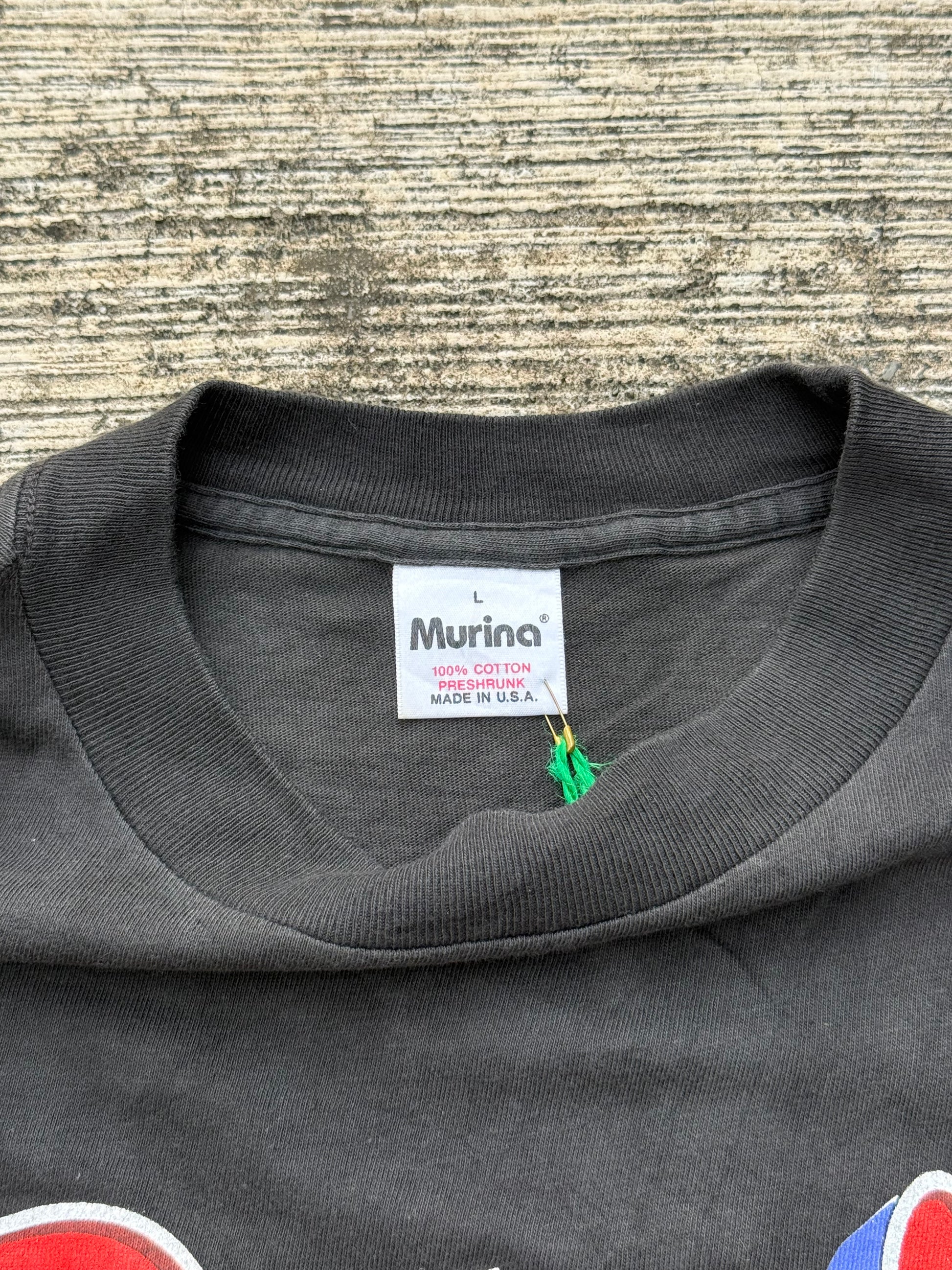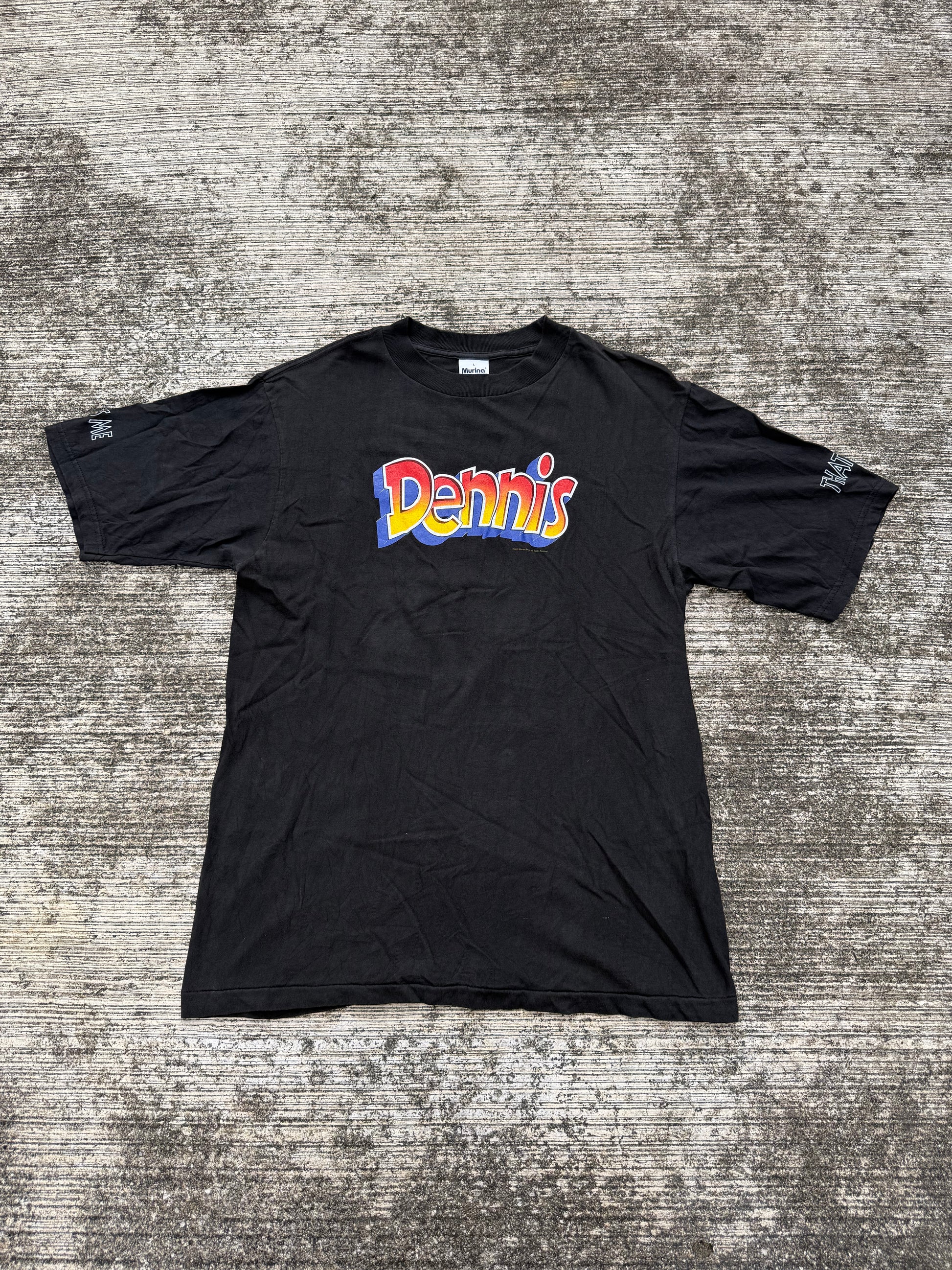 Original 1993 Dennis the Menace promo t-shirt licensed by Warner Bros, printed on Murina USA tag. Features bold multicolor “Dennis” logo across the chest, with “THAT’S ME” printed on both sleeves. Clean and simple design tied to the 1993 Dennis the Menace movie release. Highly collectible early 90s promo tee.