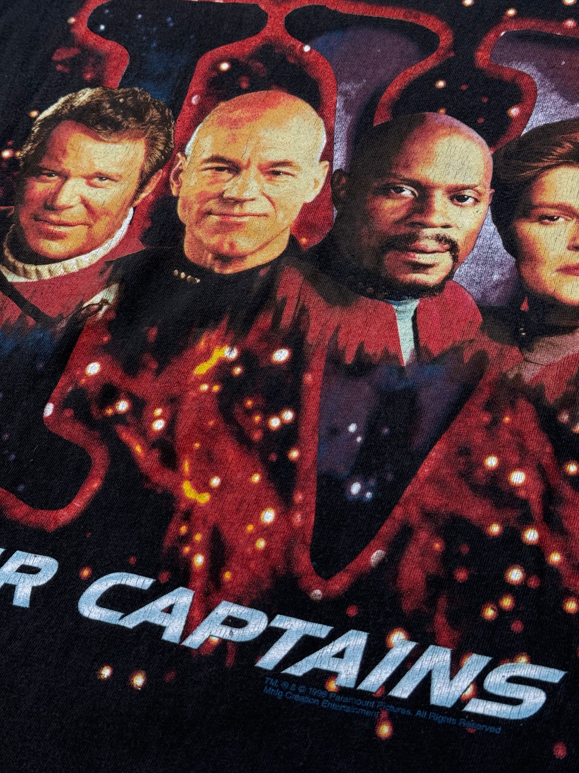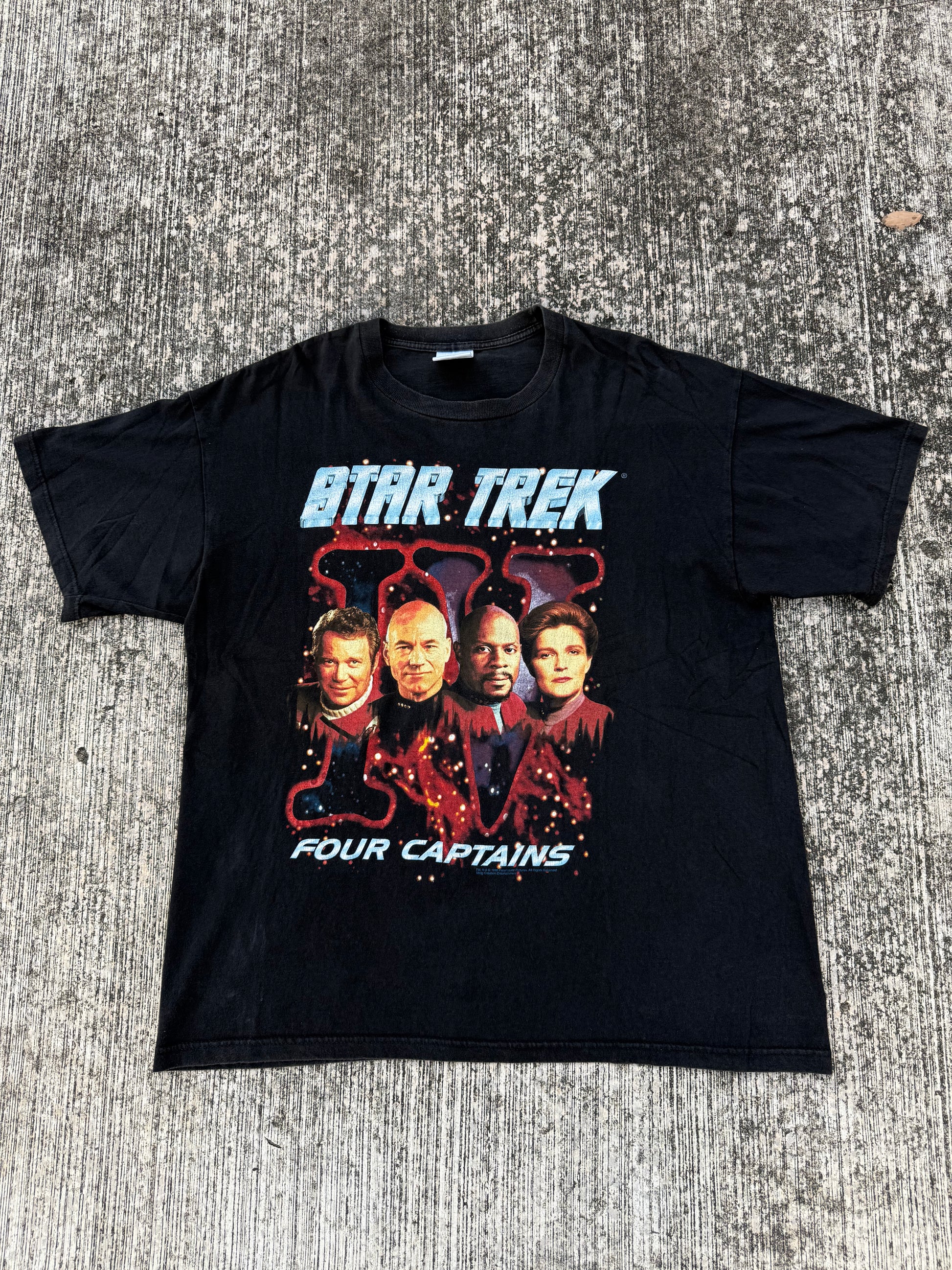 Vintage 1996 Star Trek Four Captains T-Shirt – Paramount Pictures Classic Sci-Fi Tee