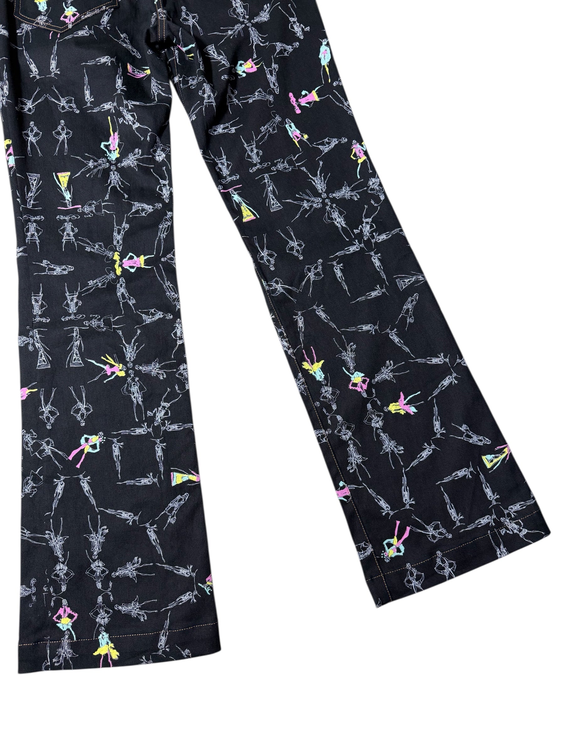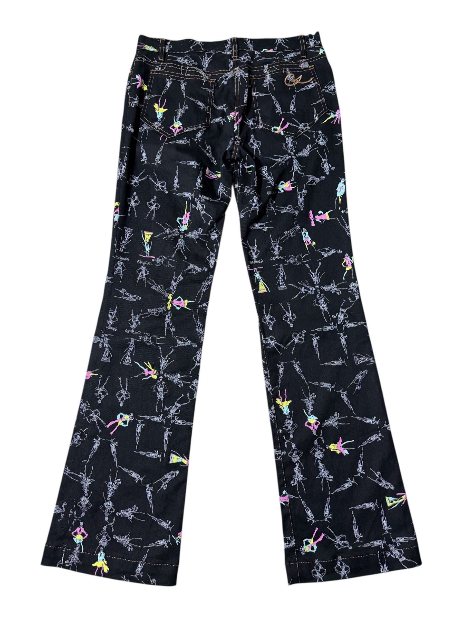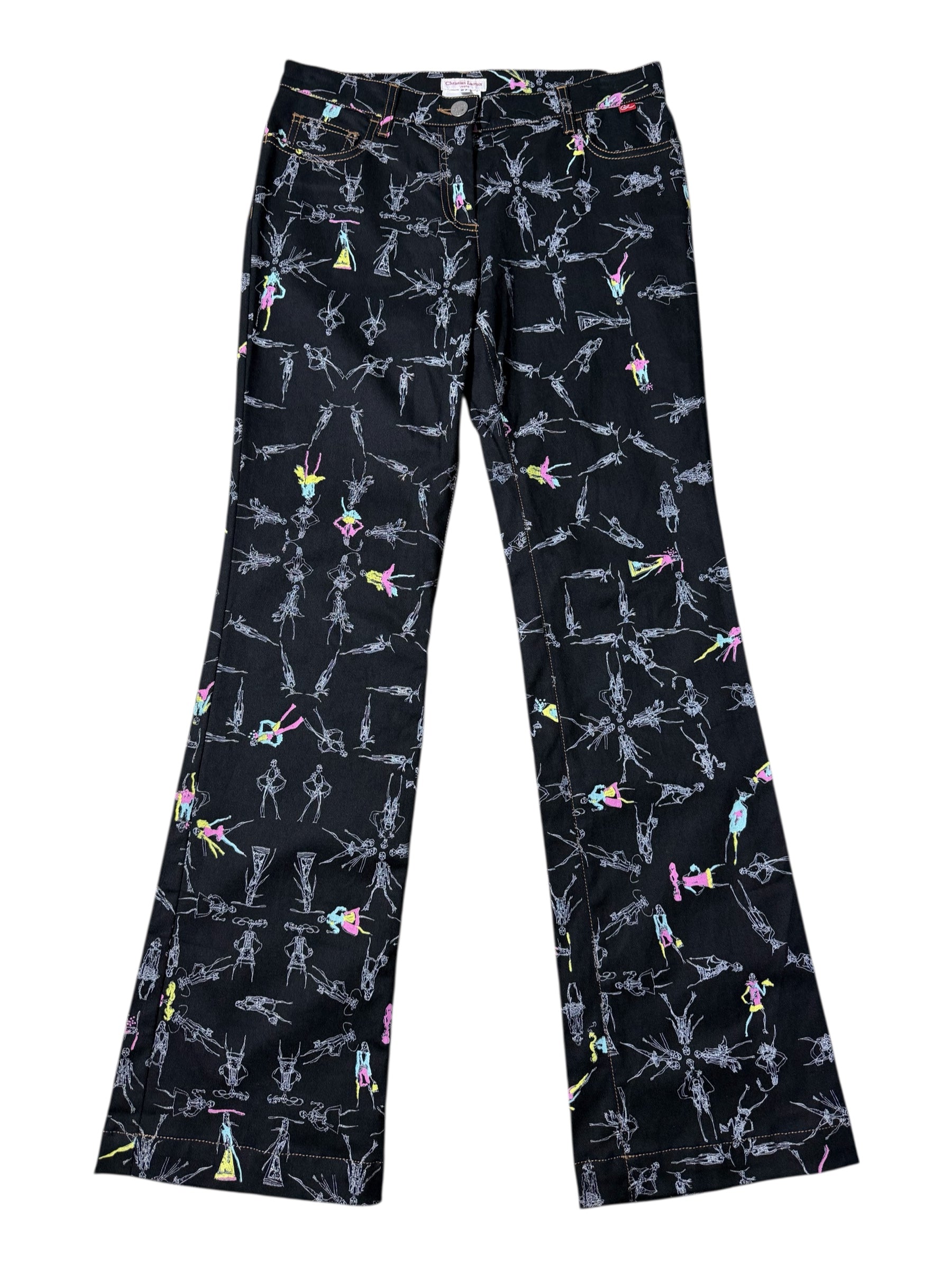 Vintage 2000s Christian Lacroix Fashion Sketch Print Flare Pants Made in Italy