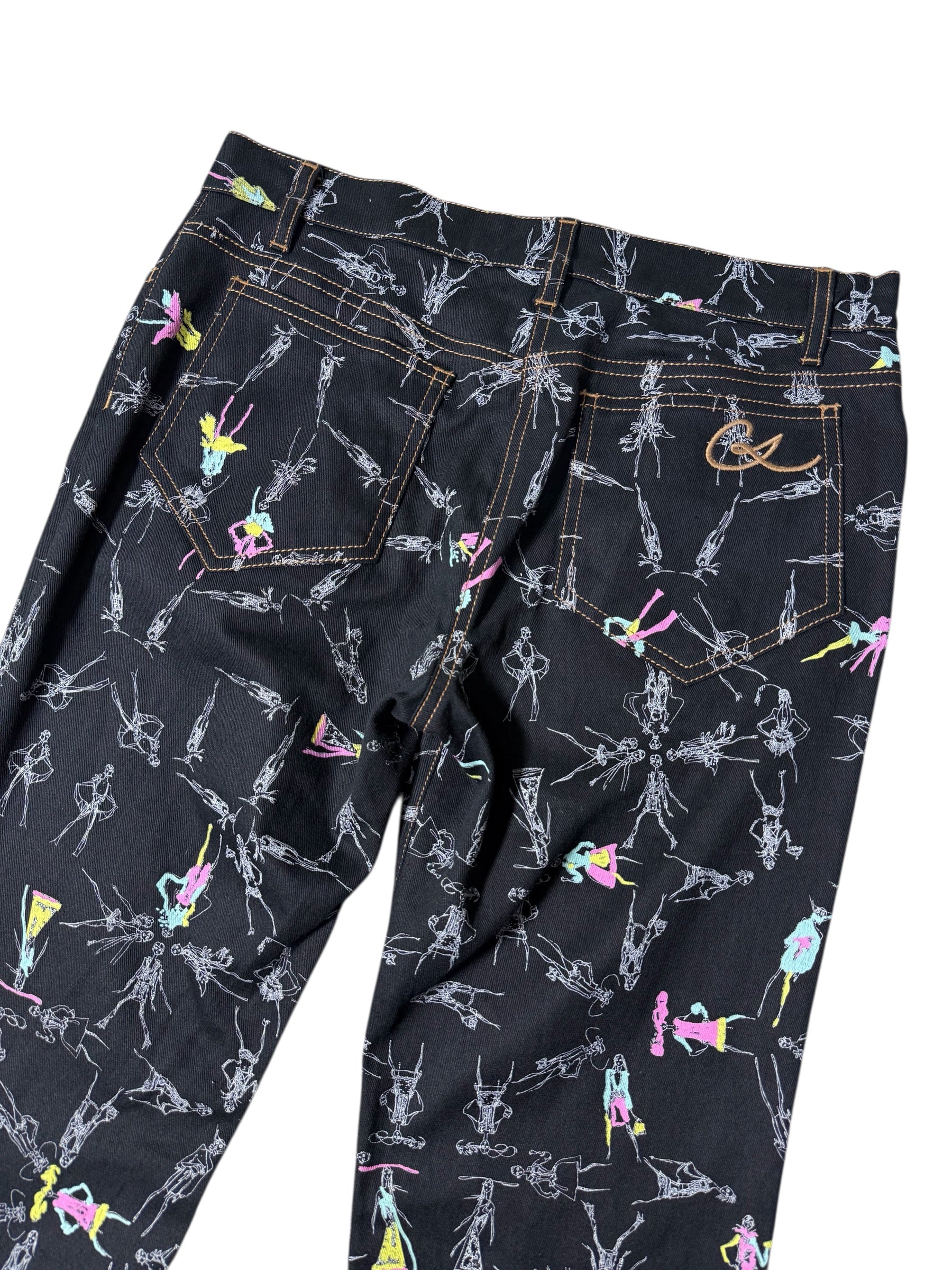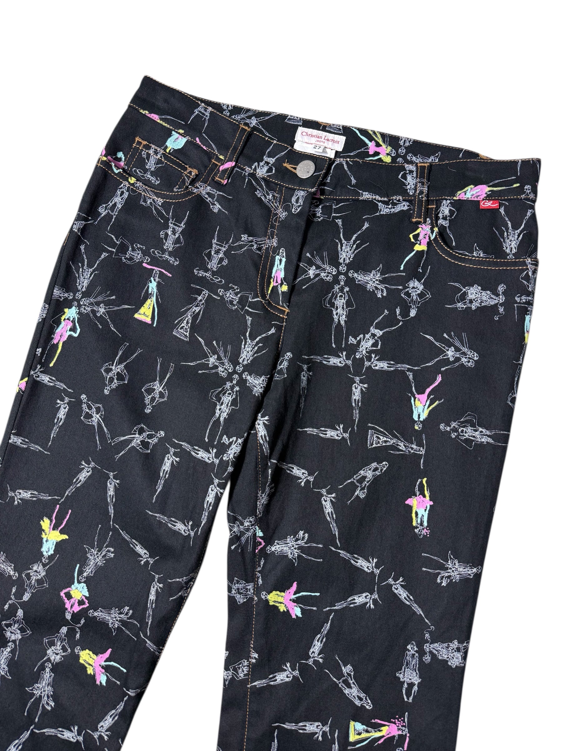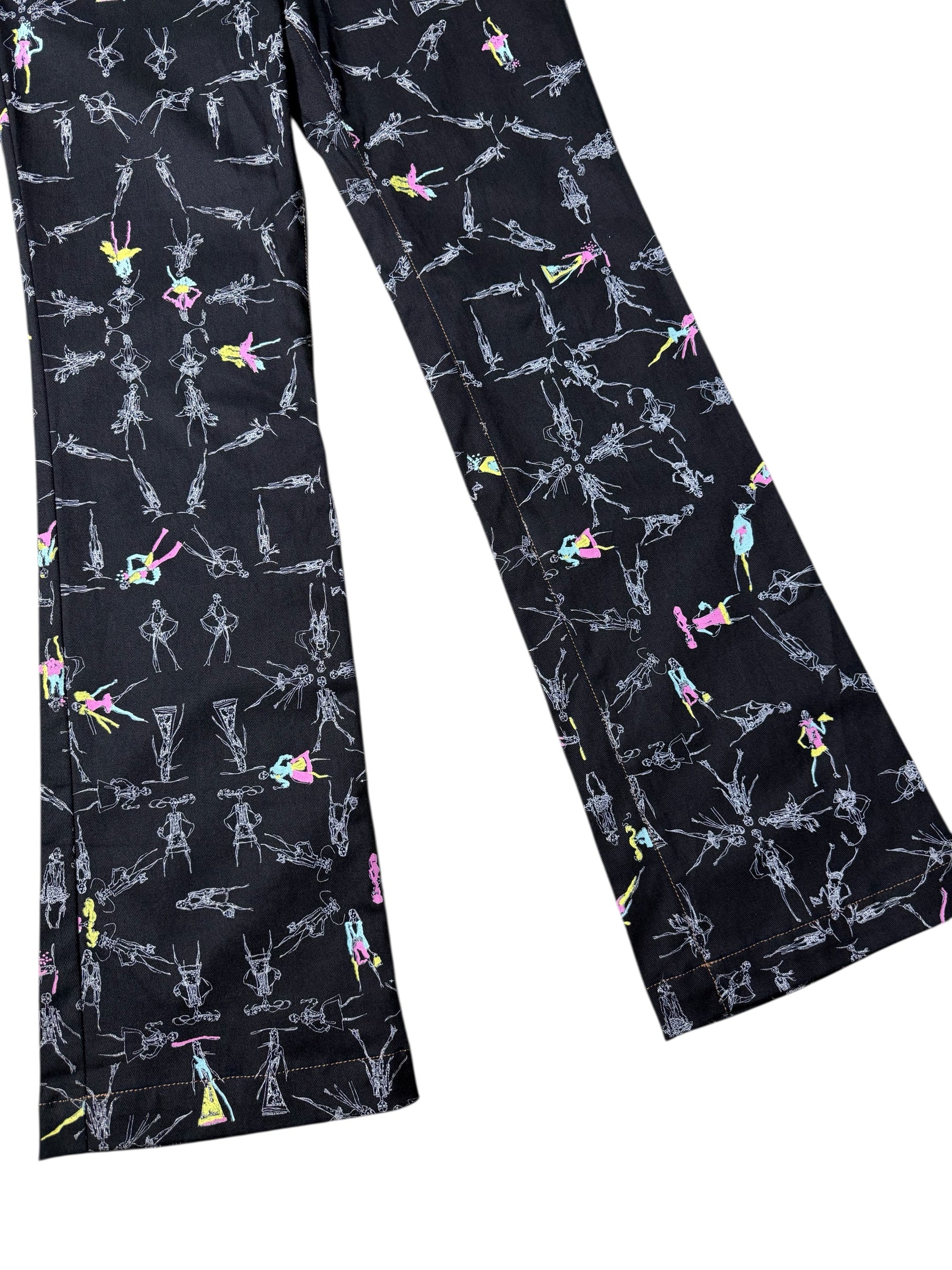 Vintage 2000s Christian Lacroix Fashion Sketch Print Flare Pants Made in Italy