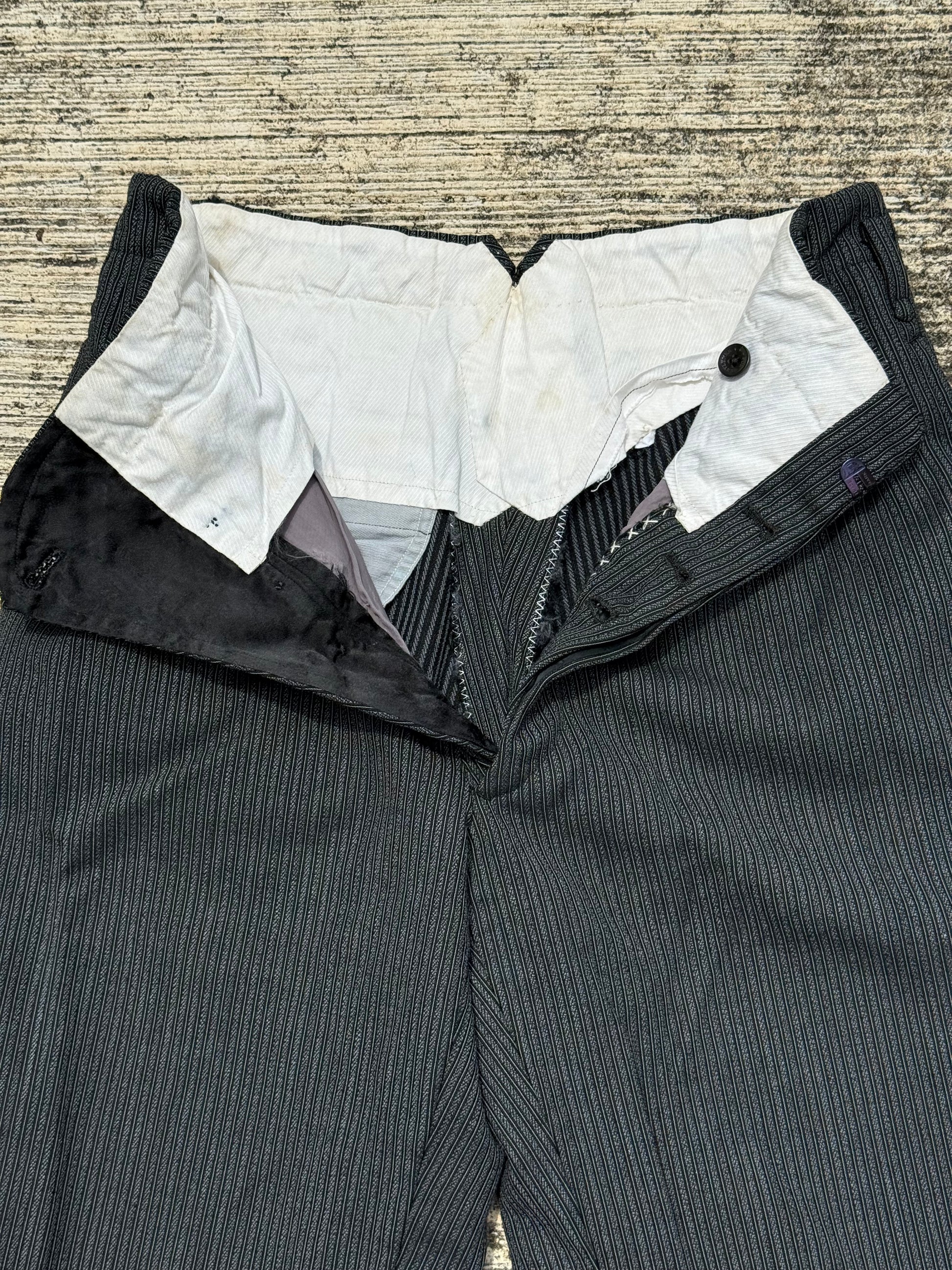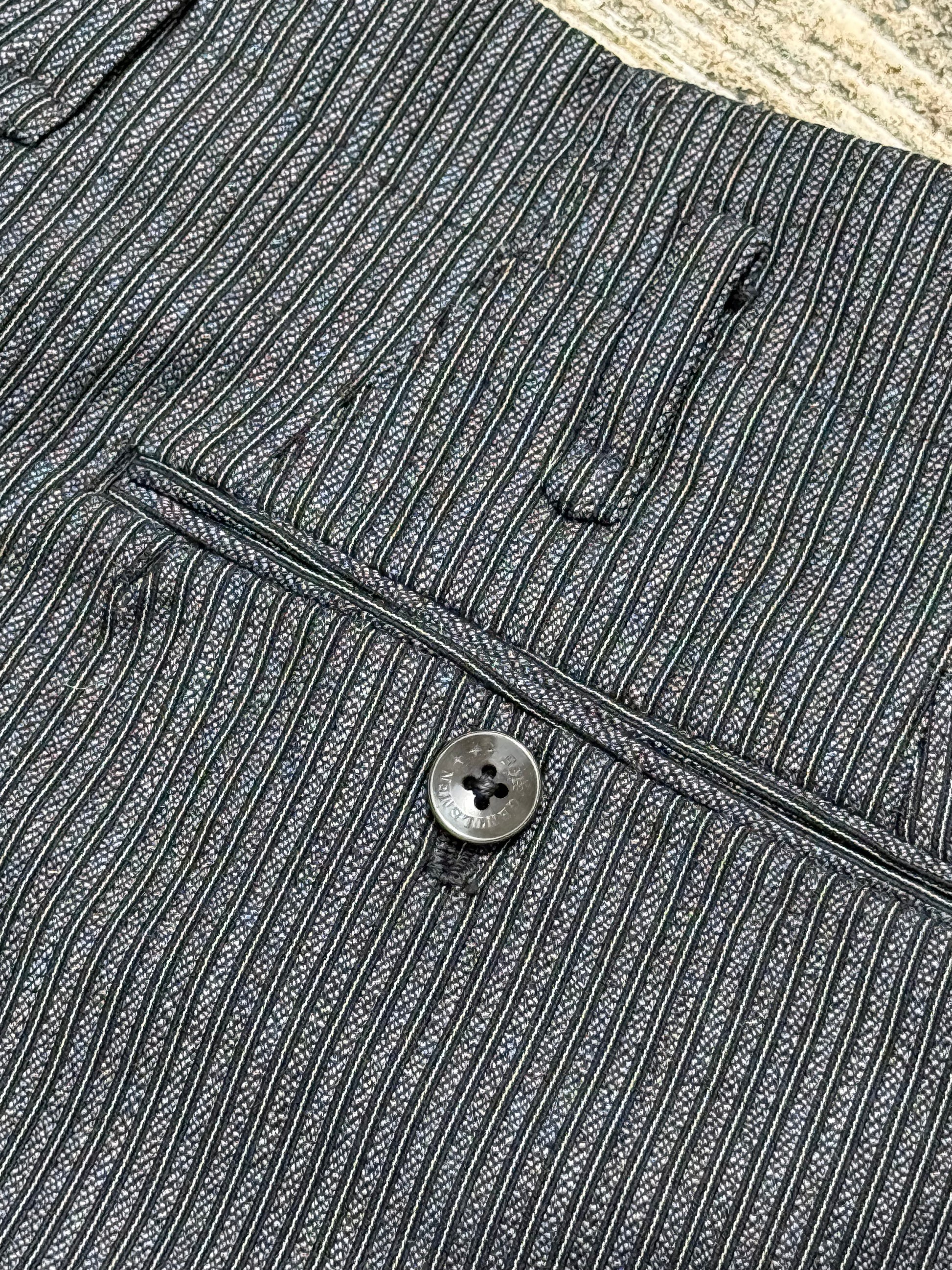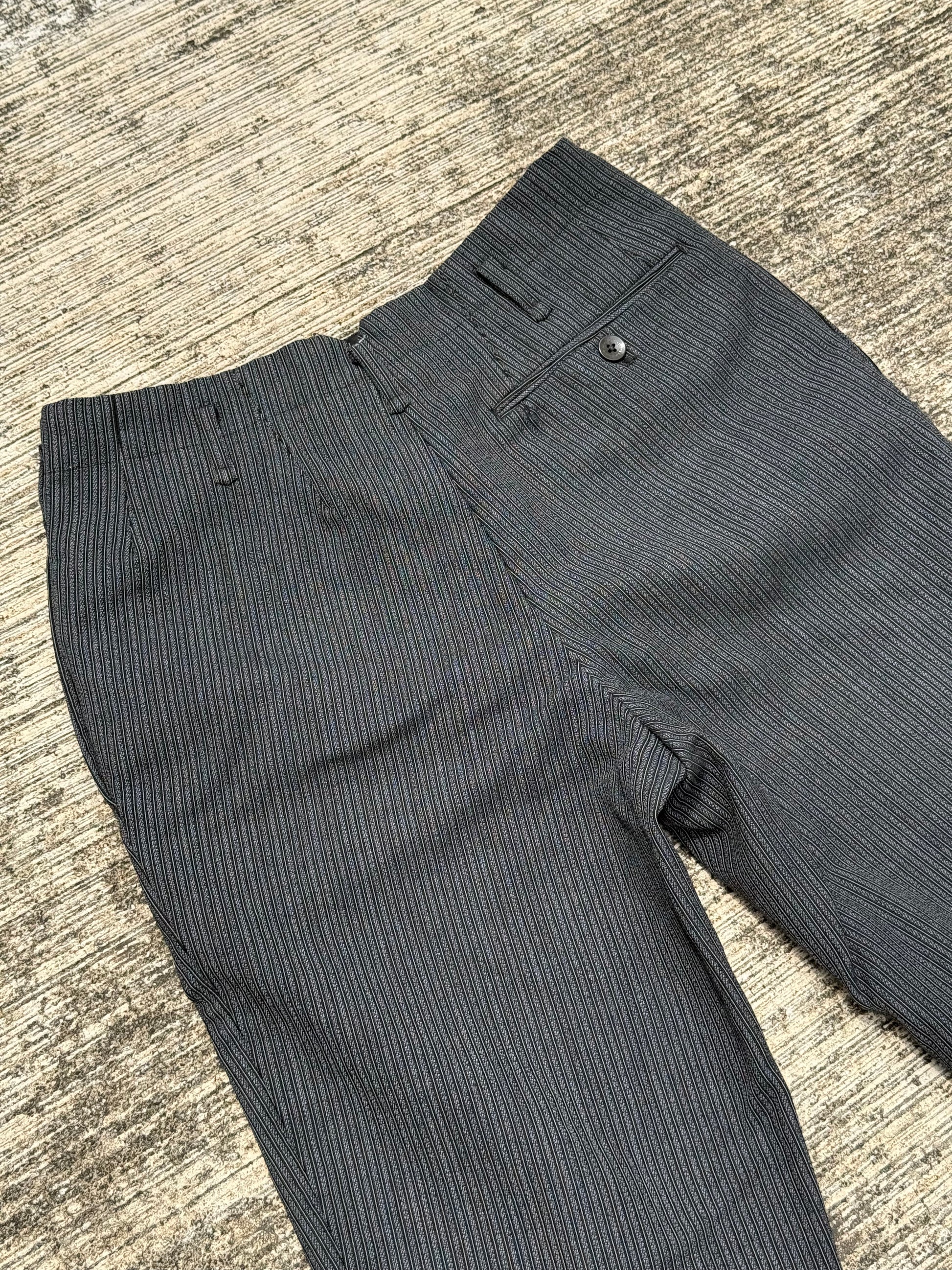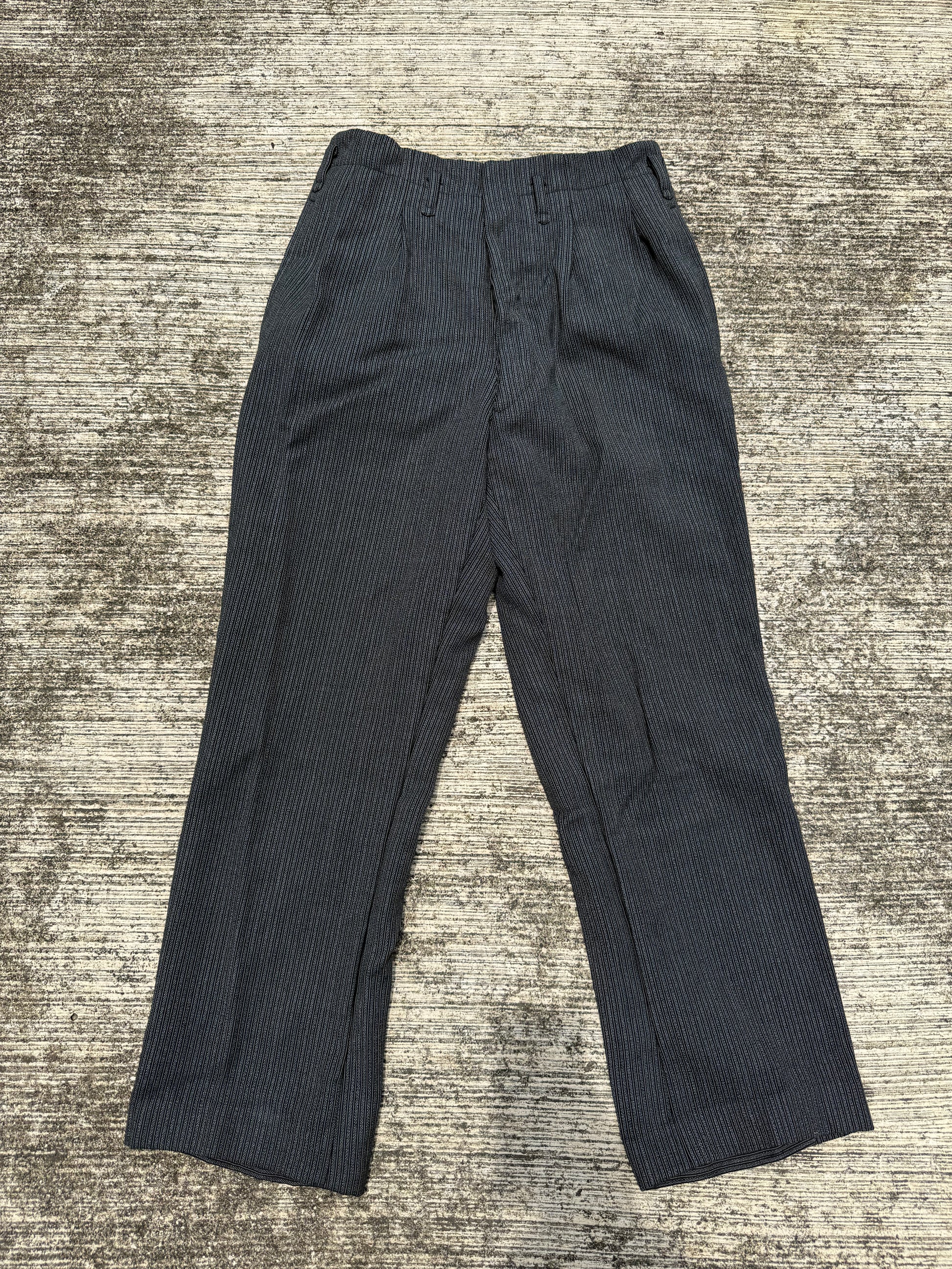 These vintage Gentlemen 3-Star trousers (1960s–70s) are crafted in a pinstripe wool blend fabric, showcasing the refined details of quality menswear: