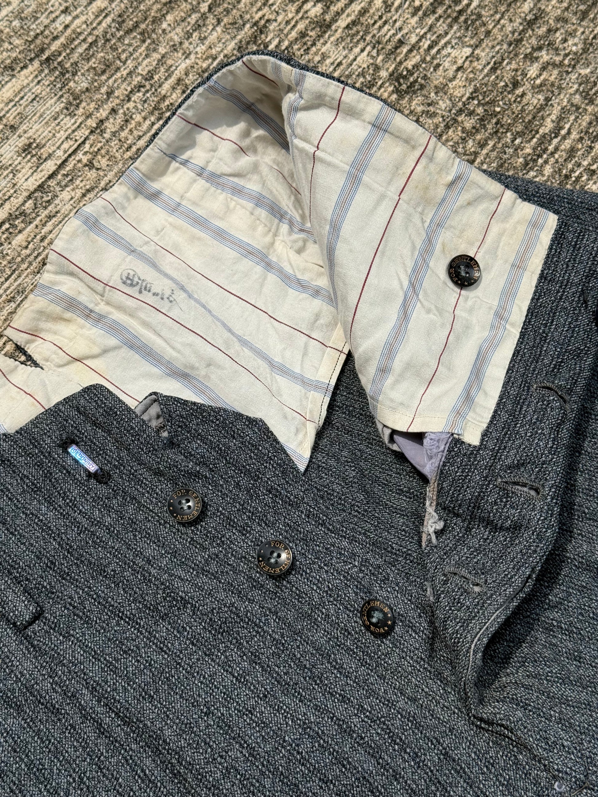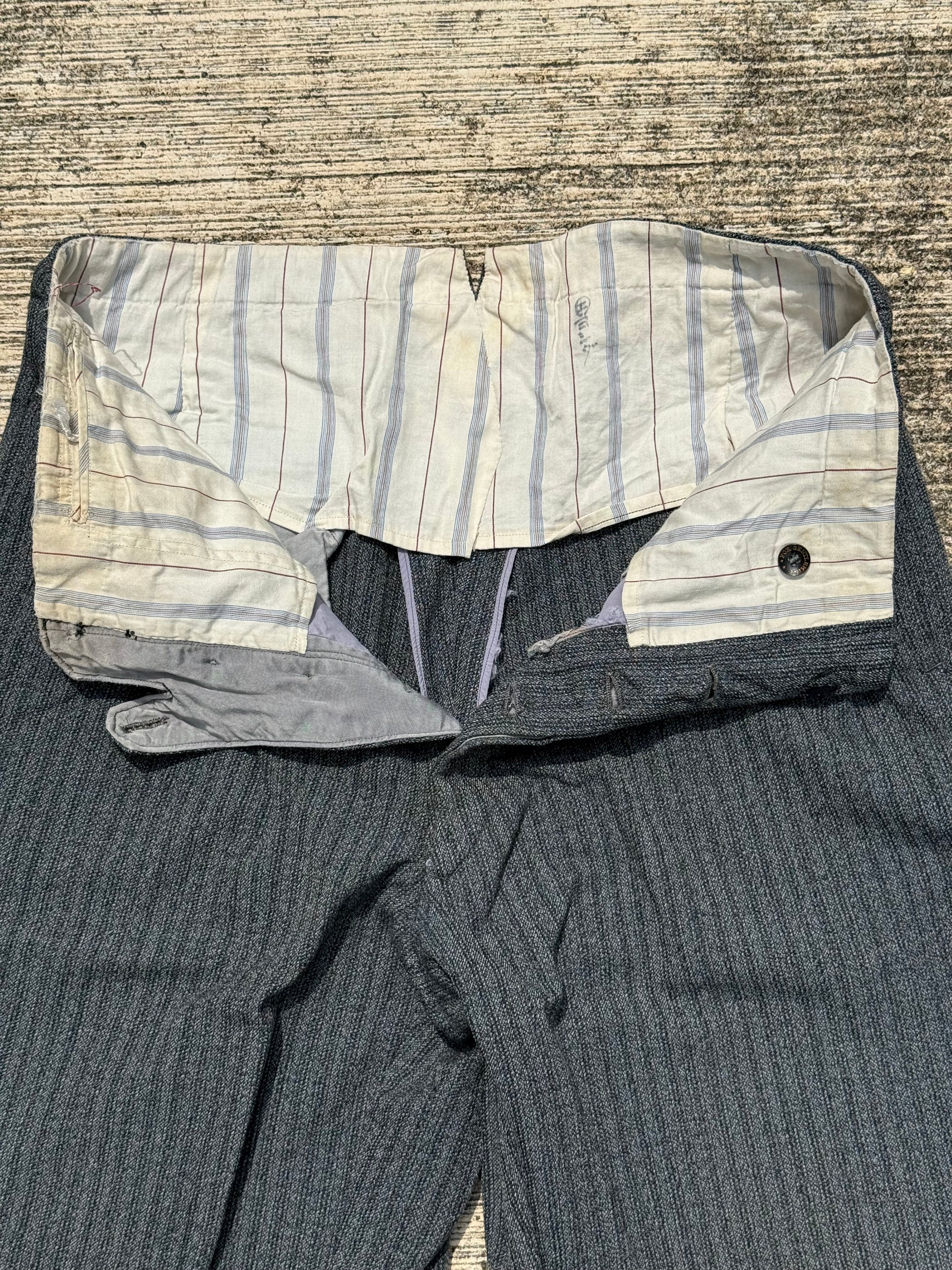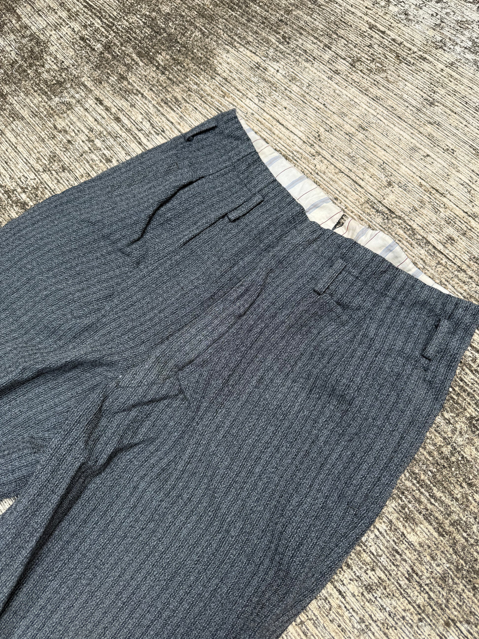 These vintage Gentlemen 3-Star trousers (1960s–70s) are crafted from a salt & pepper wool blend with subtle speckled texture. Featuring all the hallmarks of quality mid-century construction: