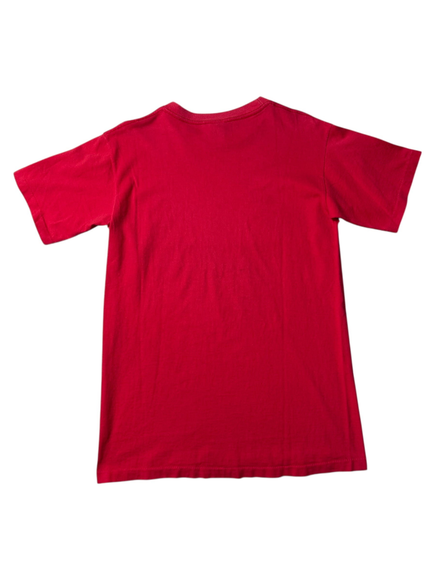 Original 1990s Salem Sportswear Chicago Bulls tee featuring Michael Jordan in a multi-photo collage graphic. Classic bright Bulls red, bold print, and that unmistakable 90s sports aesthetic.