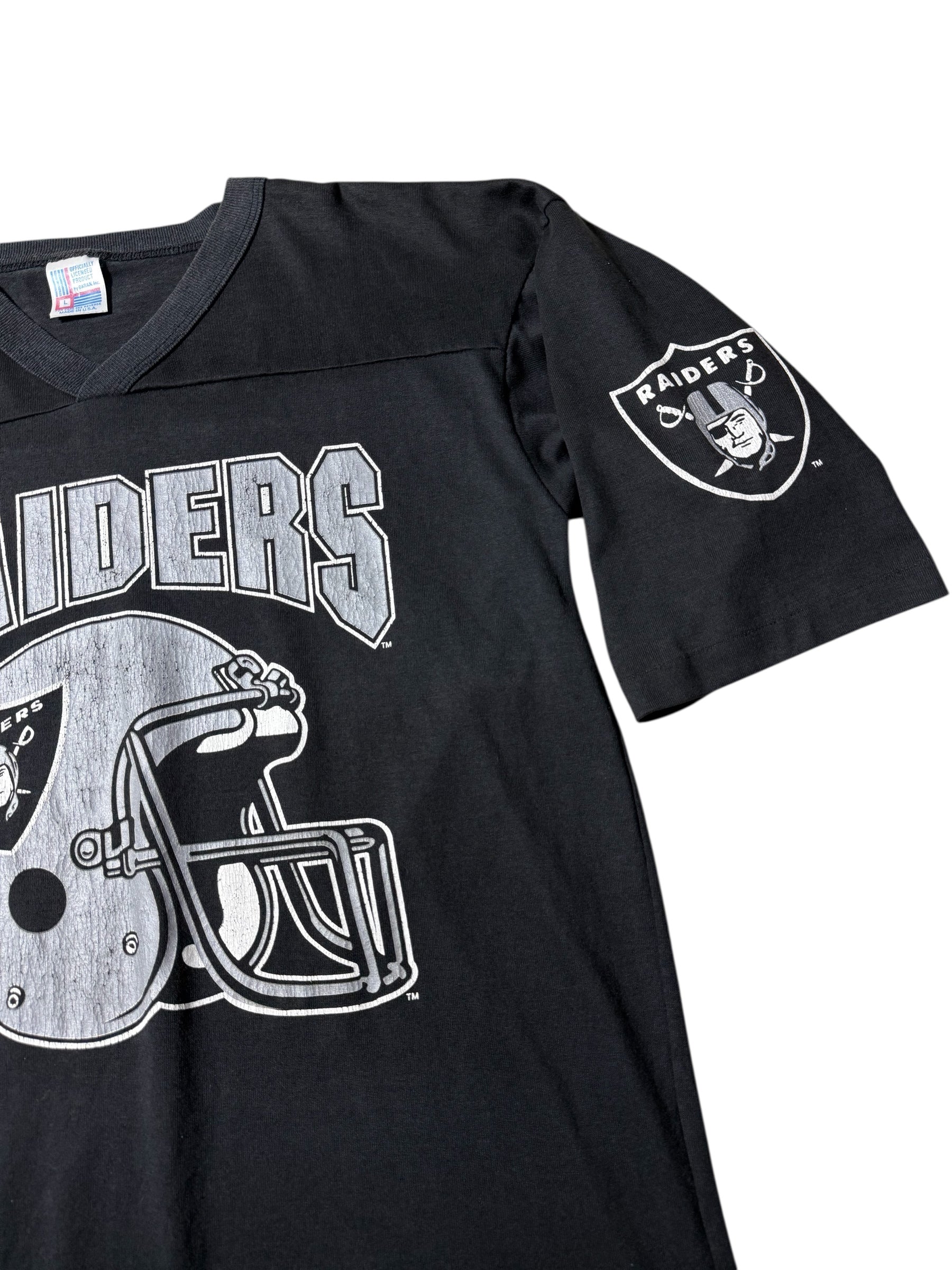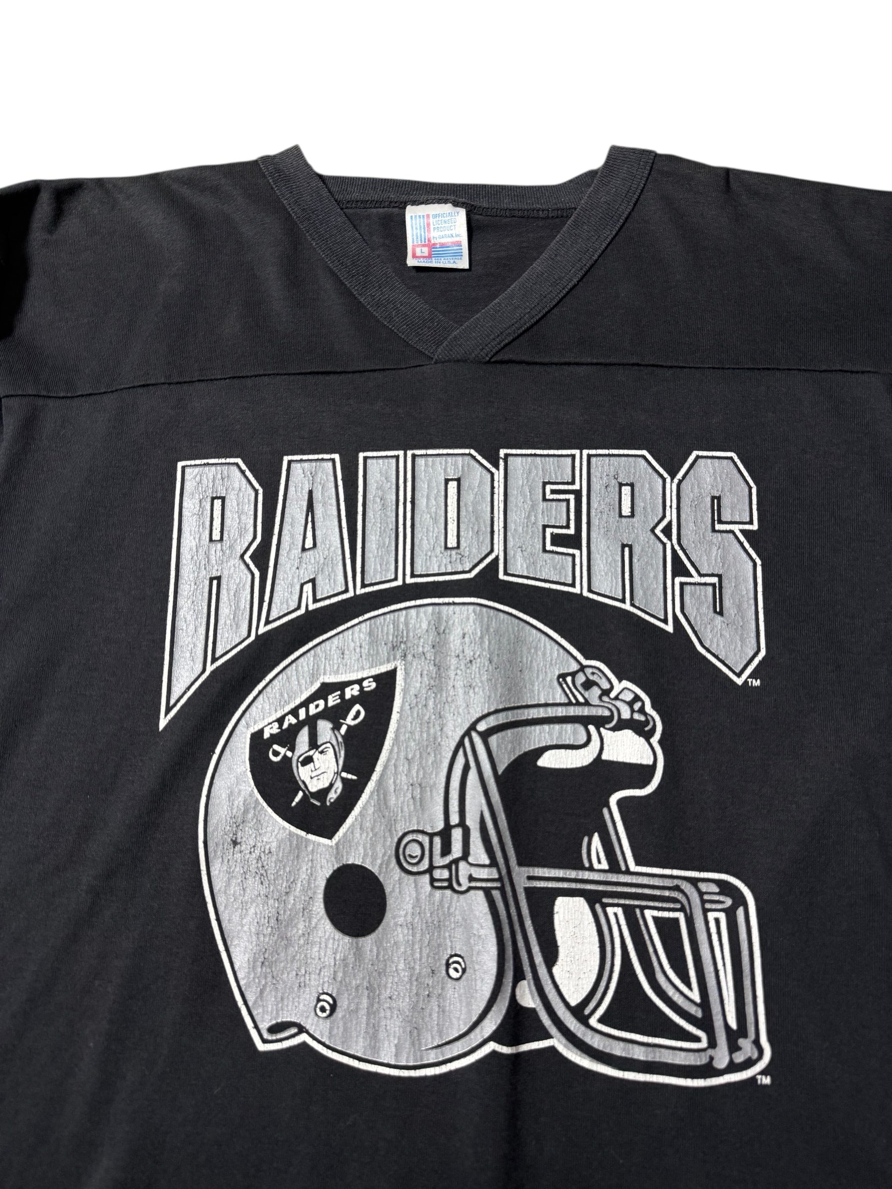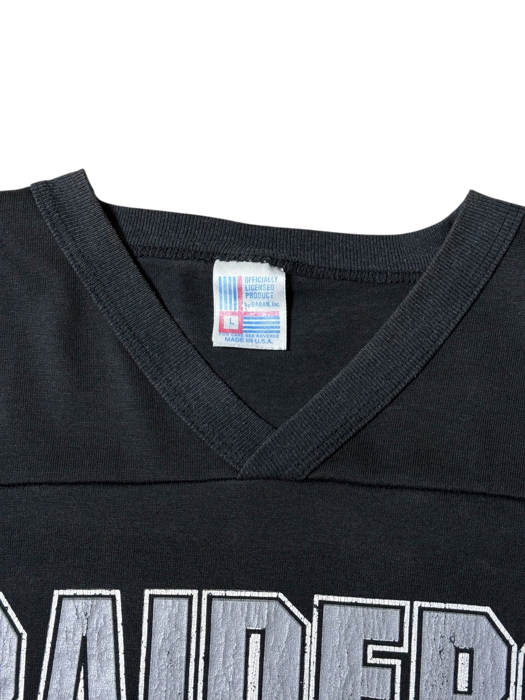 Vintage 90s Oakland Raiders V-Neck Football Tee Garan Inc Made in USA