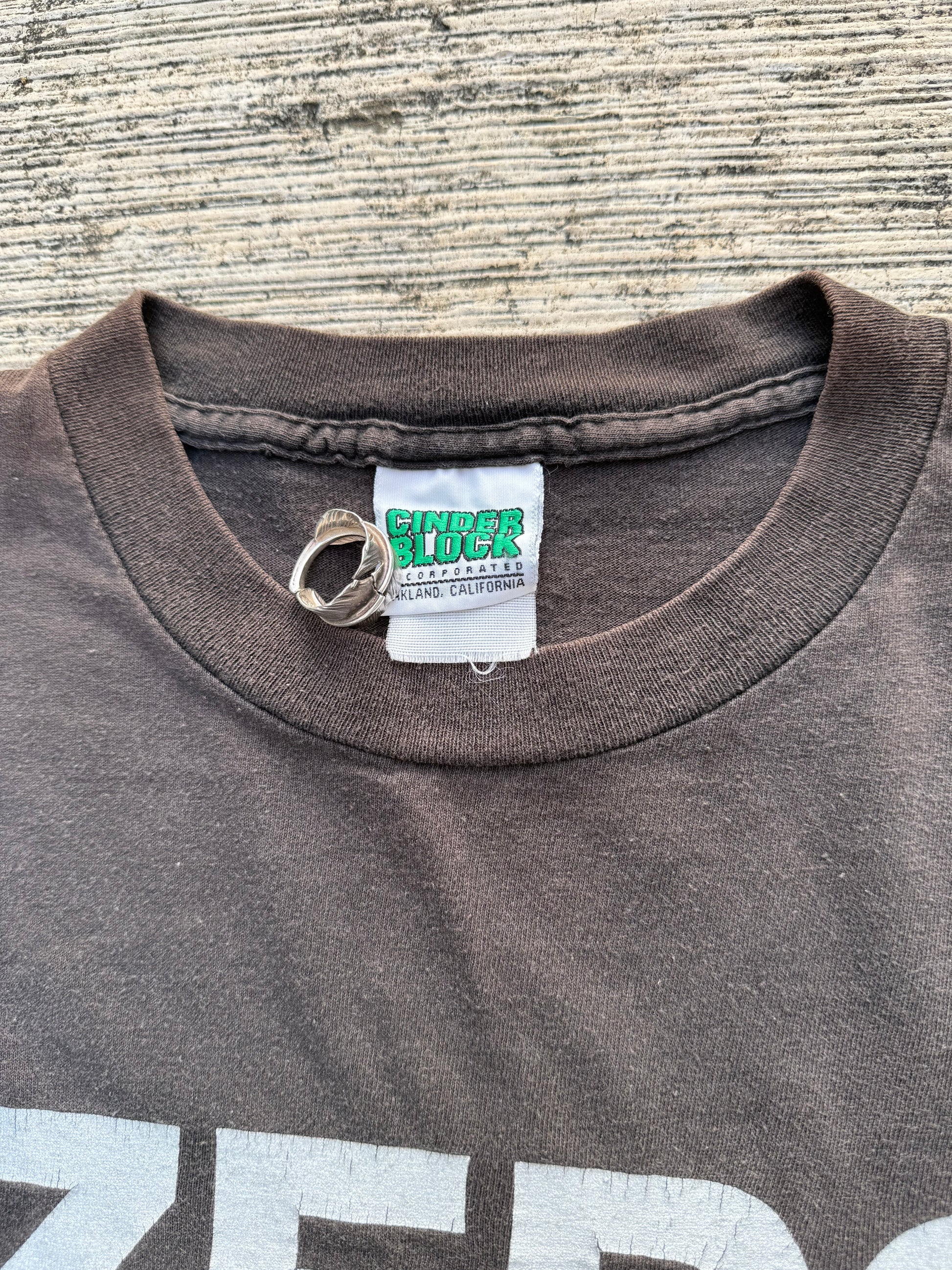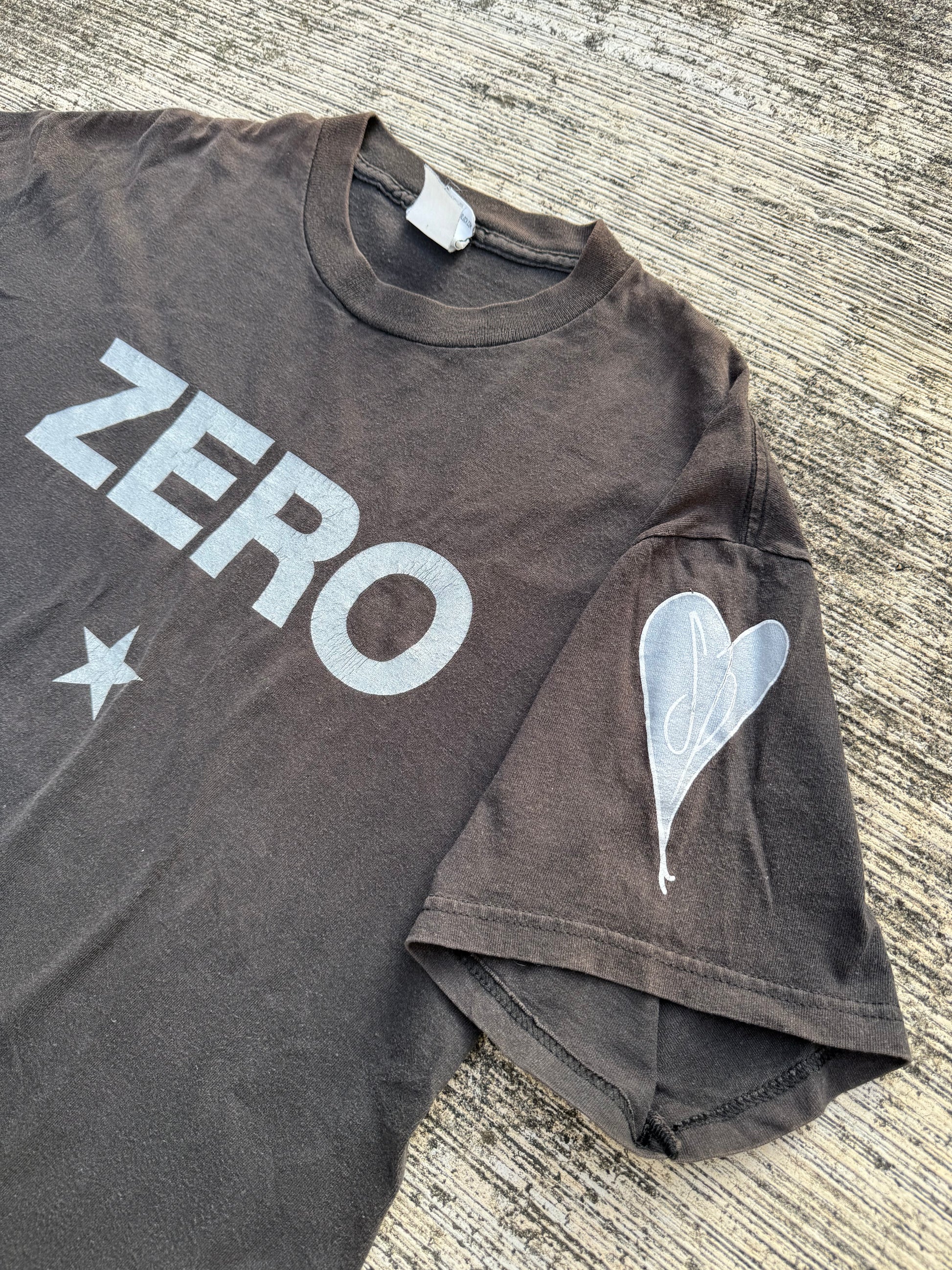 Original vintage Smashing Pumpkins “ZERO” tee, one of the most iconic grunge era shirts. Classic black body with bold silver “ZERO ★” print on the chest and signature heart logo on the sleeve. Official Cinder Block tag still intact.