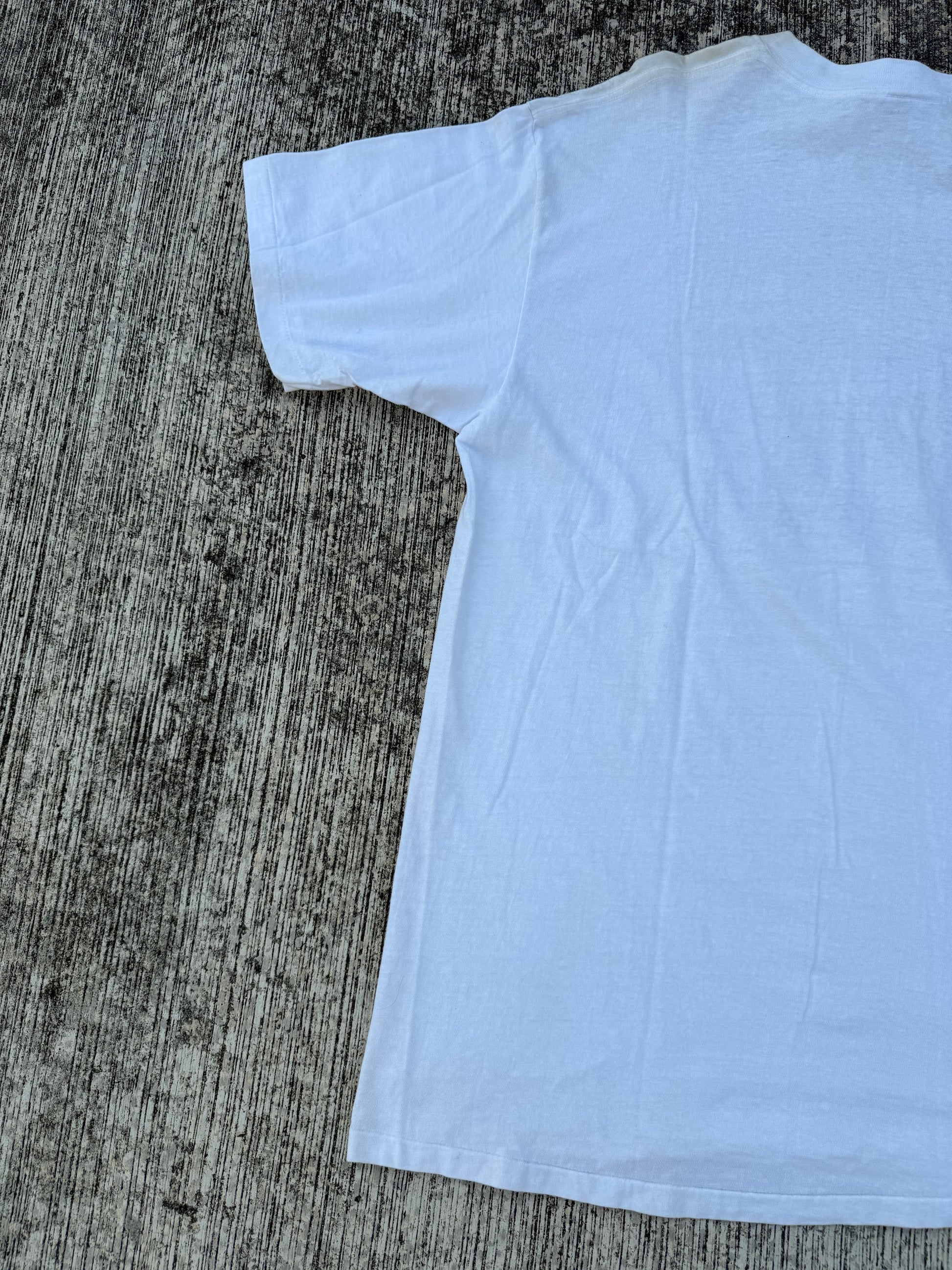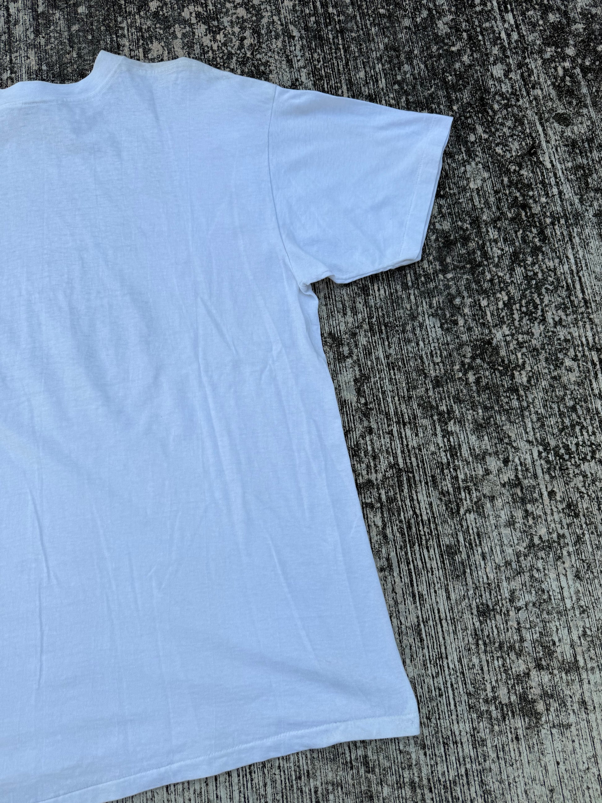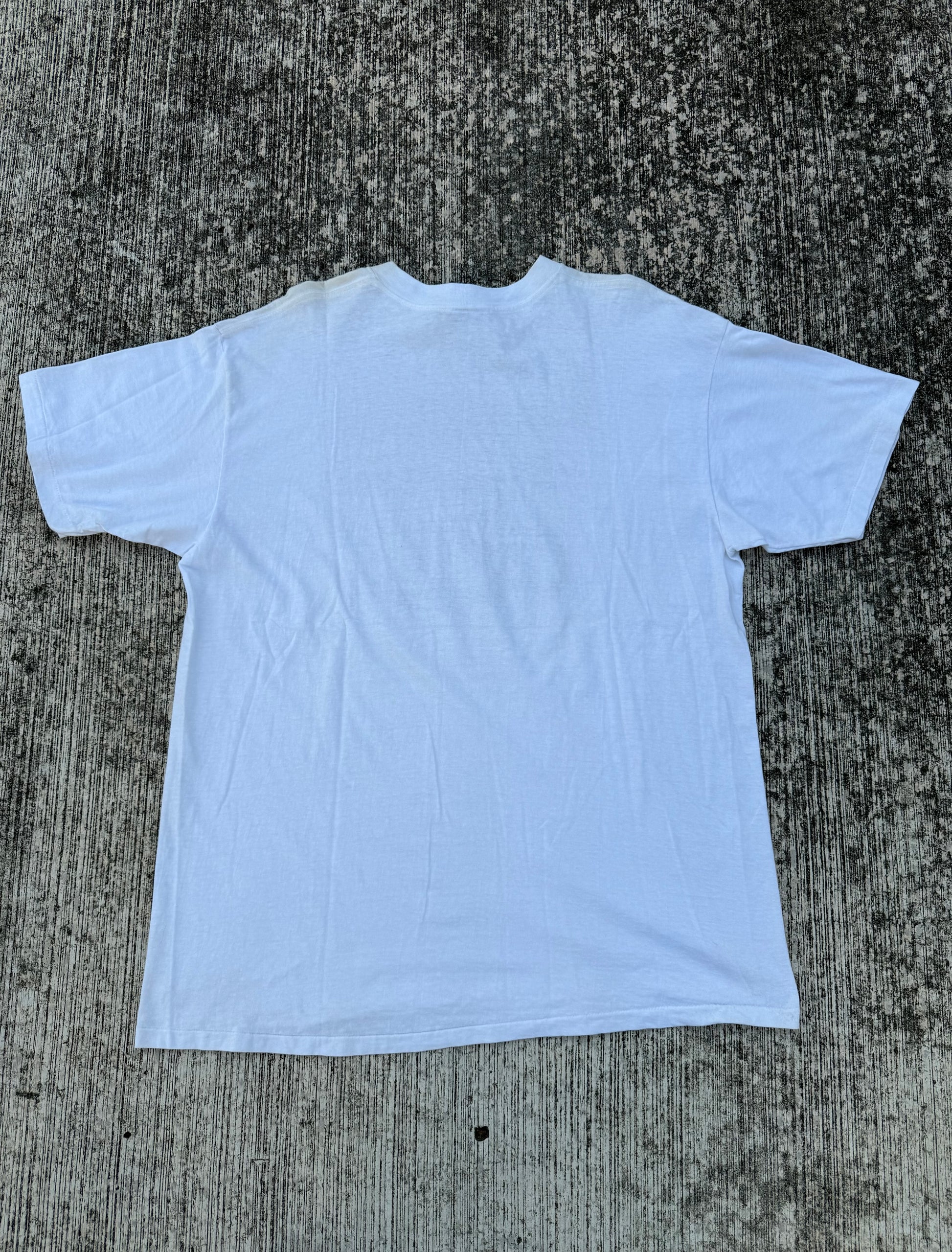 Printed on Oneita Power-T blank (100% cotton, pre-shrunk), a staple of authentic 90s band tees. Crisp white body with striking black and red artwork. A true piece of rock memorabilia, perfect for collectors and fans of underground punk/rock culture.