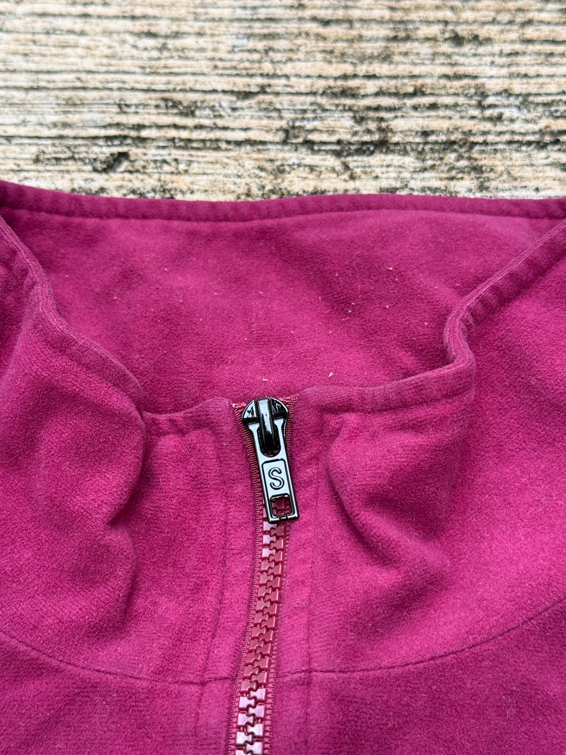Made in Hong Kong, 100% polyester, with full zip and side pockets. Note: original zipper head has been replaced after it broke — now fitted with a durable “S”-marked zip head.