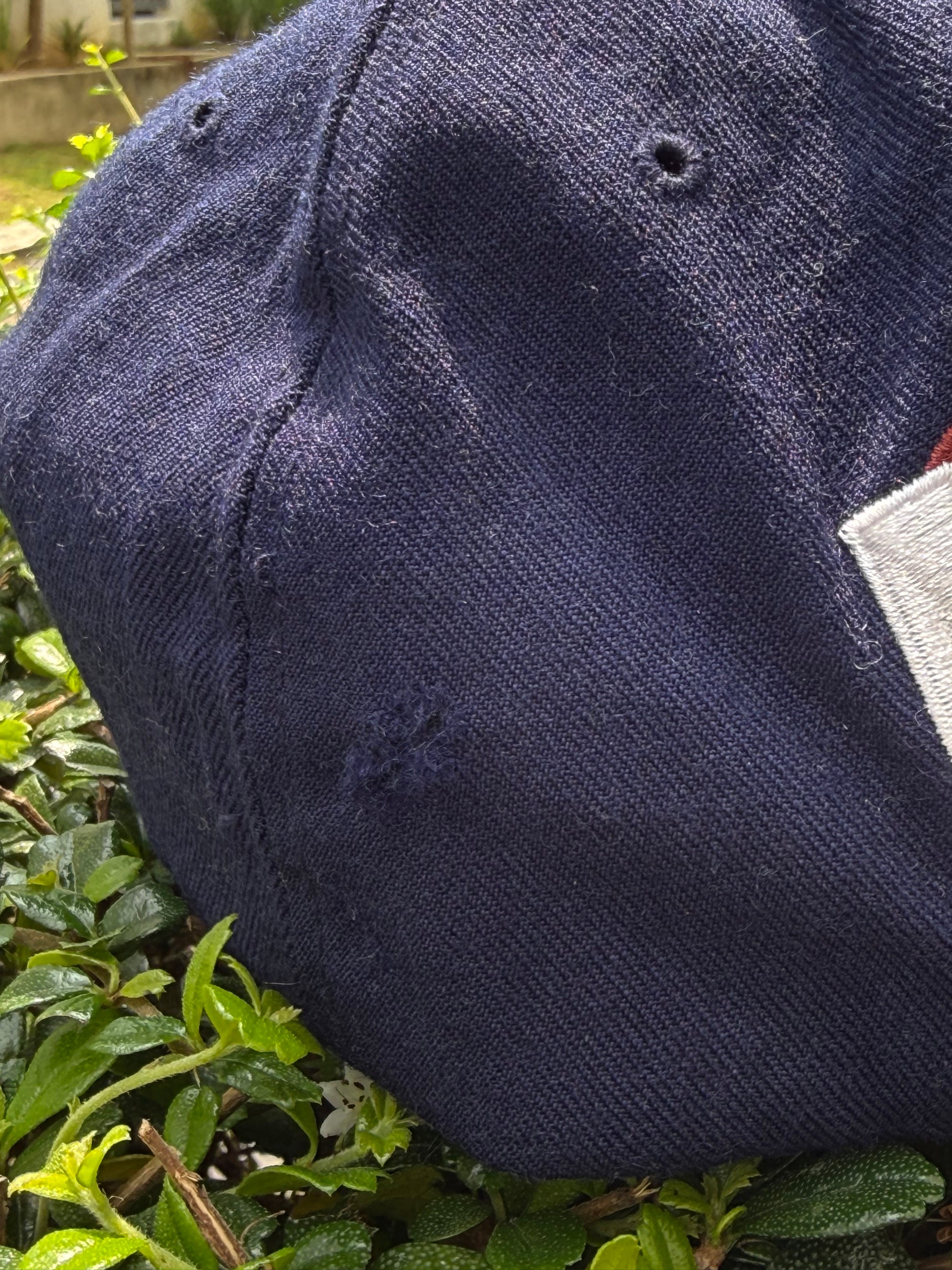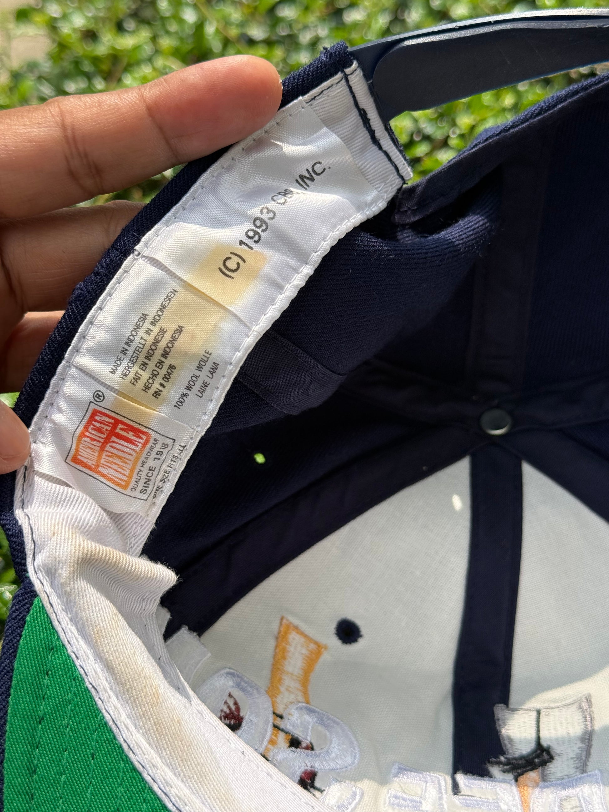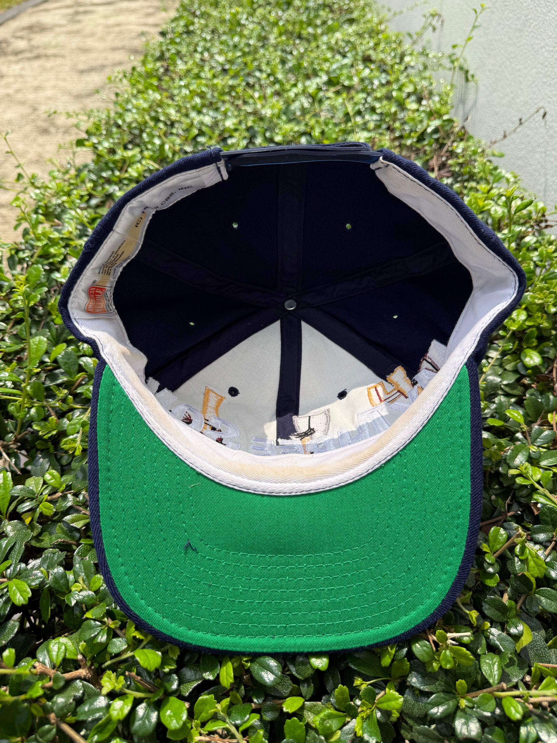 Authentic 1990s American Needle snapback featuring the classic TV sitcom My Three Sons. Released in 1993 under official CBS licensing, this cap showcases bold full embroidery graphics across the front with iconic shoe motifs. Navy cotton twill body, green undervisor, and original snapback closure. A true piece of vintage TV memorabilia and collectible headwear.