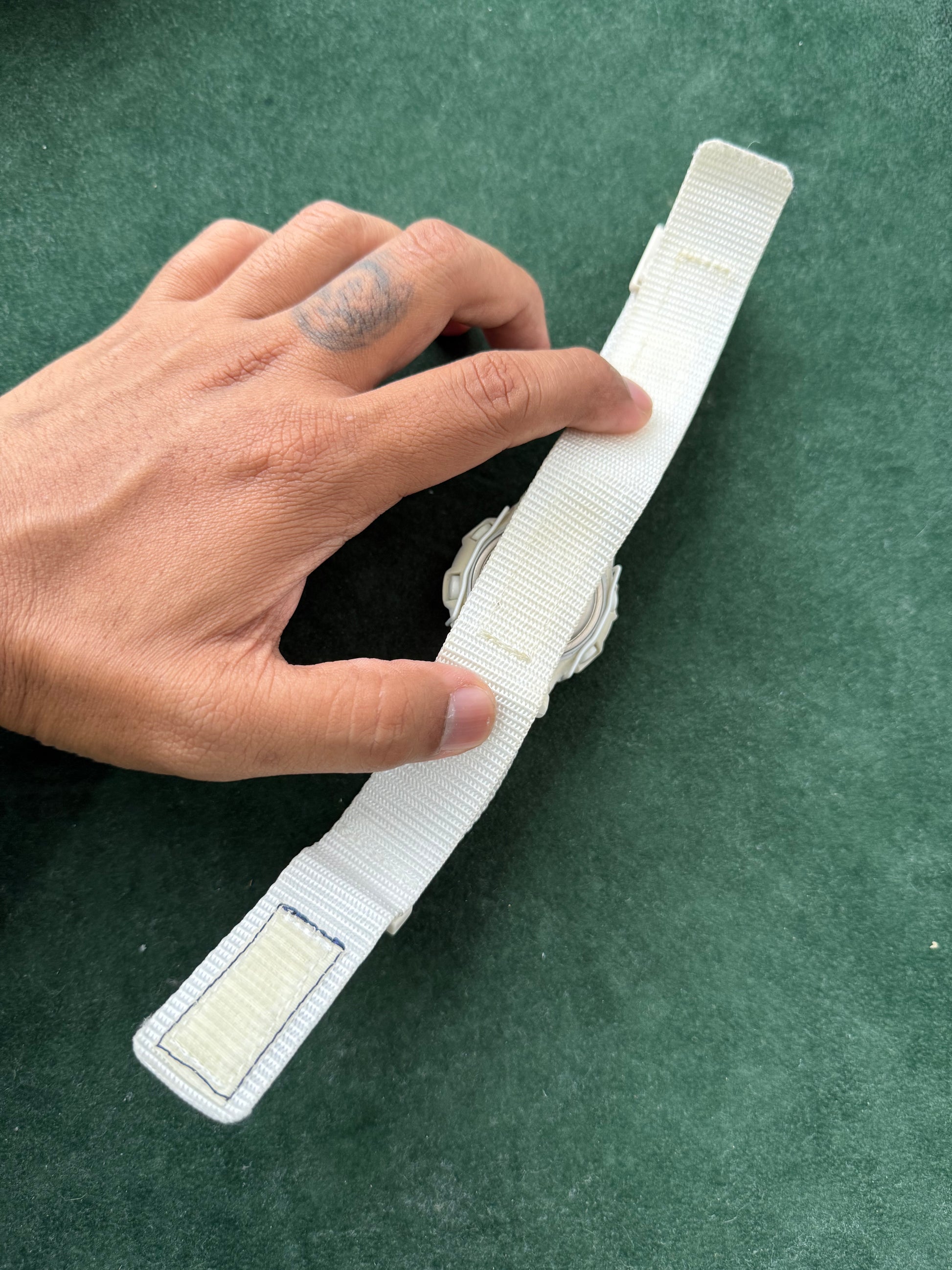 • Strap: Original white fabric strap with embroidered patches and velcro fastening