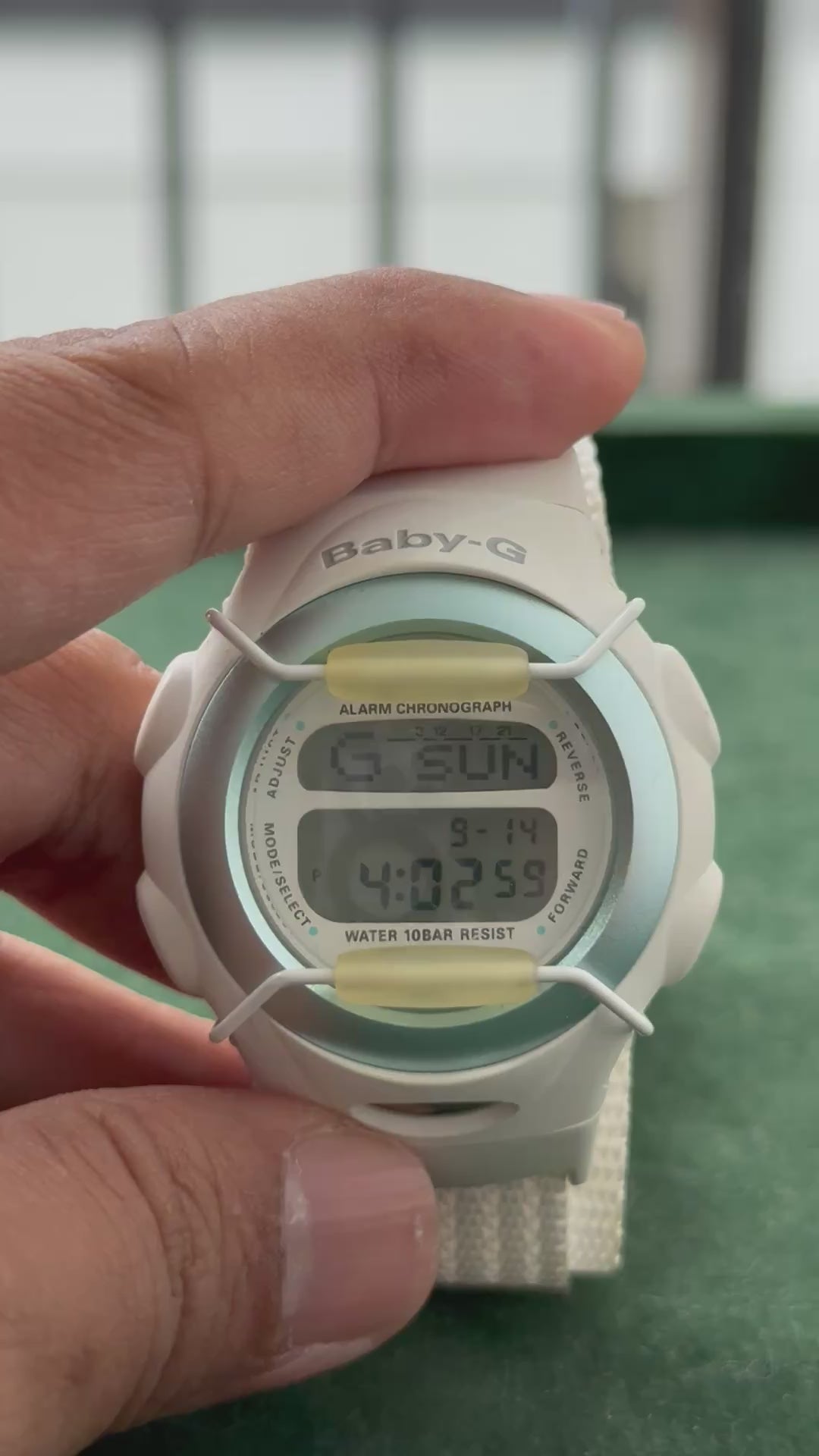 Vintage Casio Baby-G BG-097 “Light My Fire” White Digital Watch 1990s