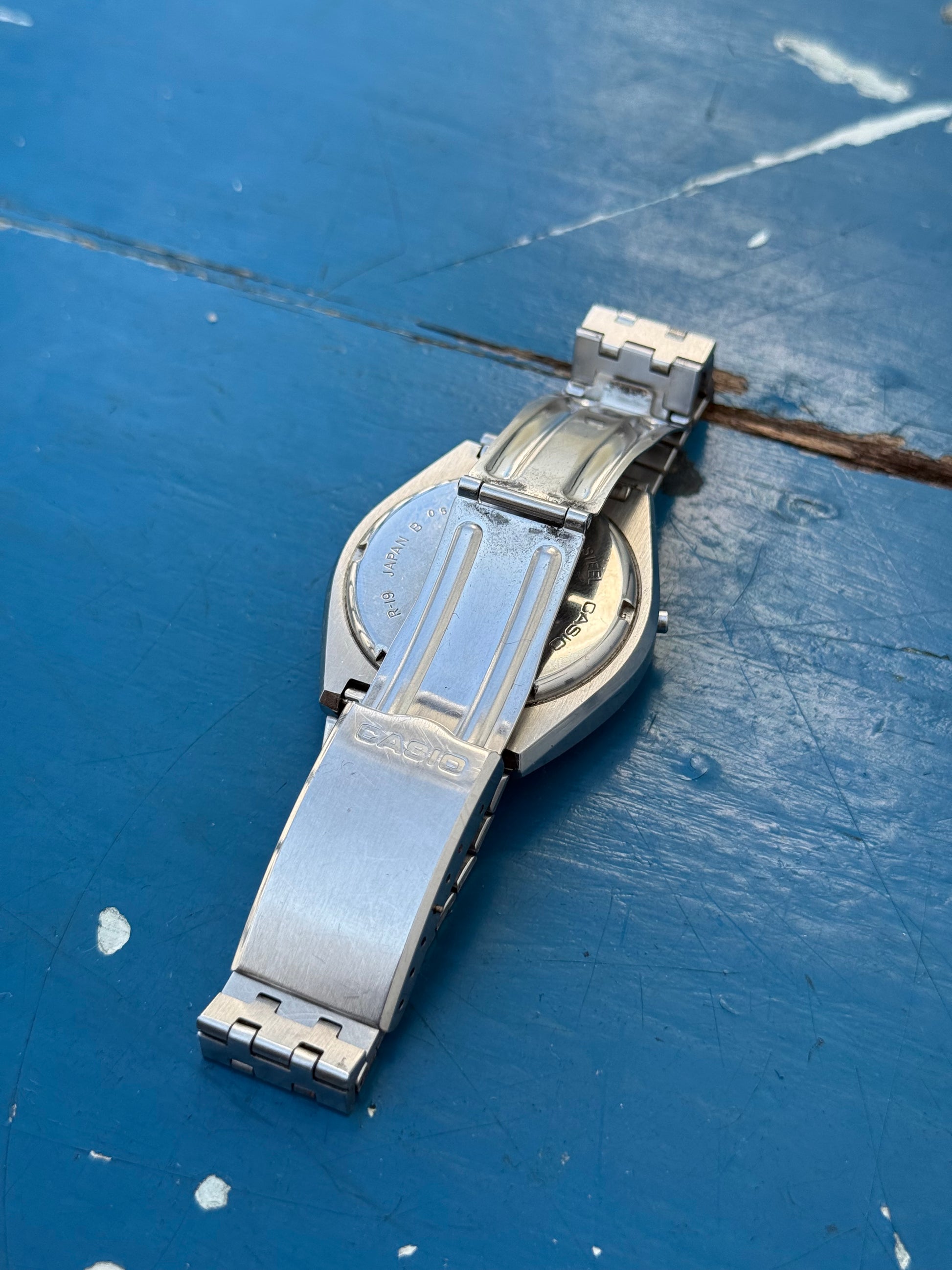 This model represents Casio’s early innovation in digital watches, making it highly collectible among vintage Casio fans and early quartz-era enthusiasts.