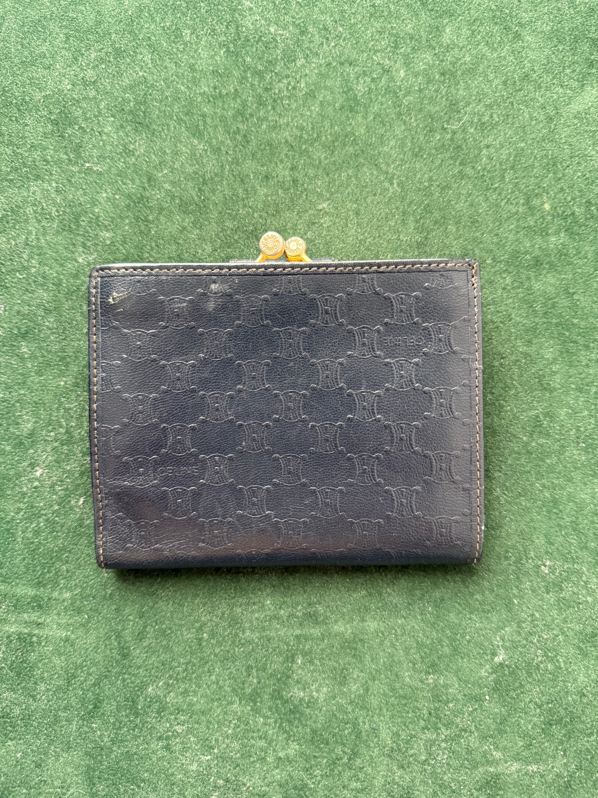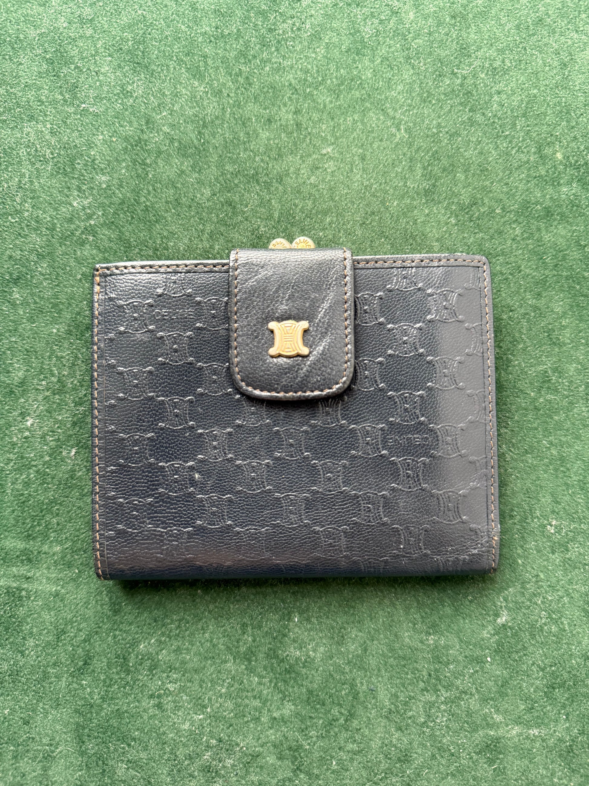 Authentic vintage Céline Paris leather wallet featuring the iconic Macadam Triomphe monogram pattern.