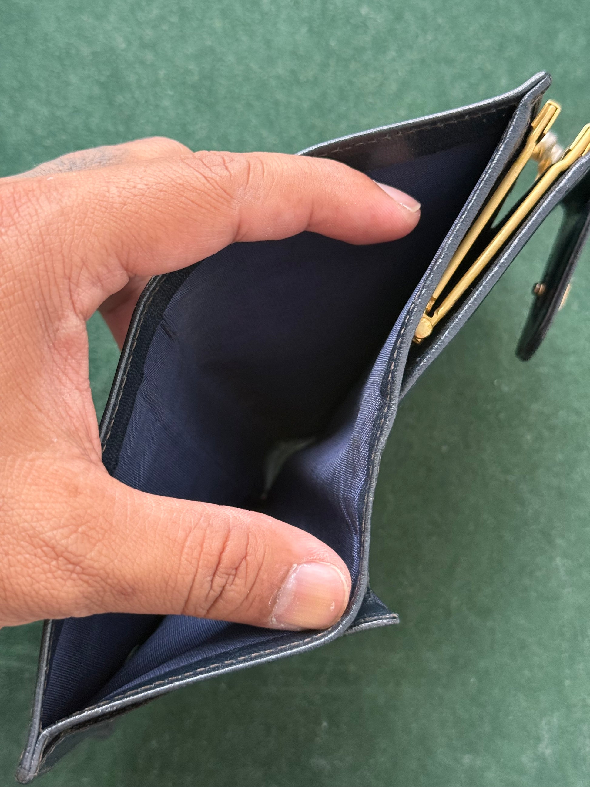 - Condition: Vintage wear with scuffs and patina (refer photos). Still fully functional and retains charm as a rare designer vintage wallet.