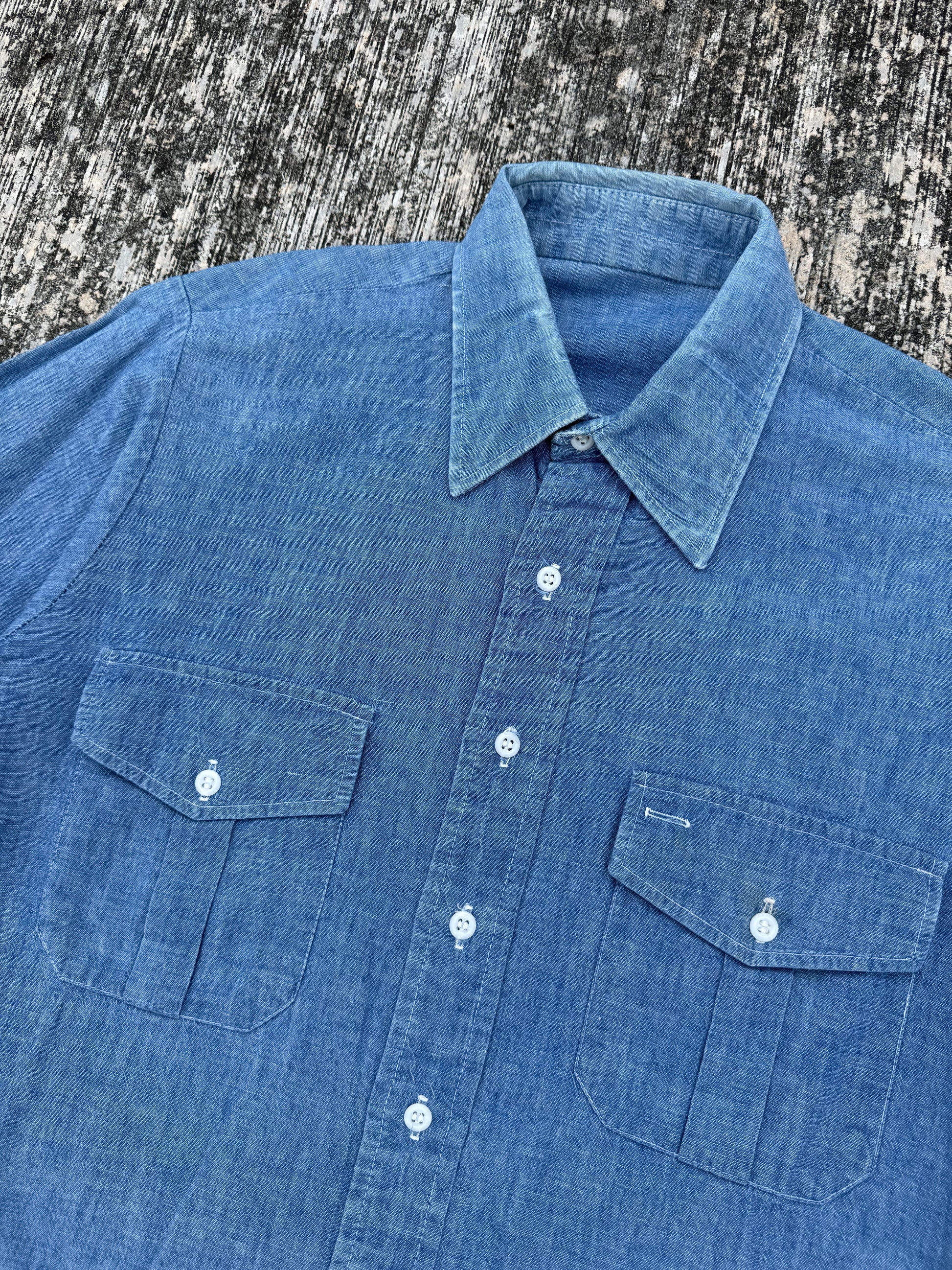 Vintage Chambray Long Sleeve Work Shirt (1970s–1980s USA Made)
